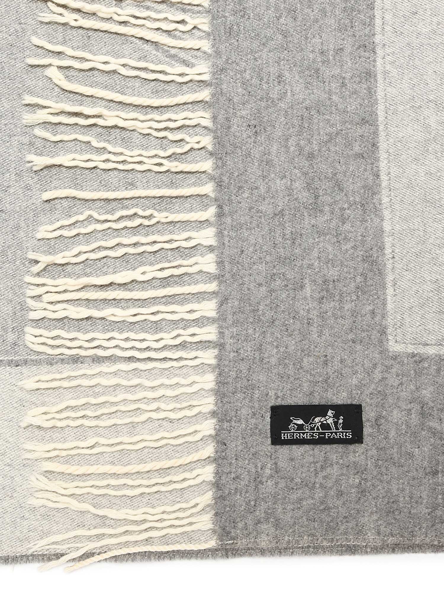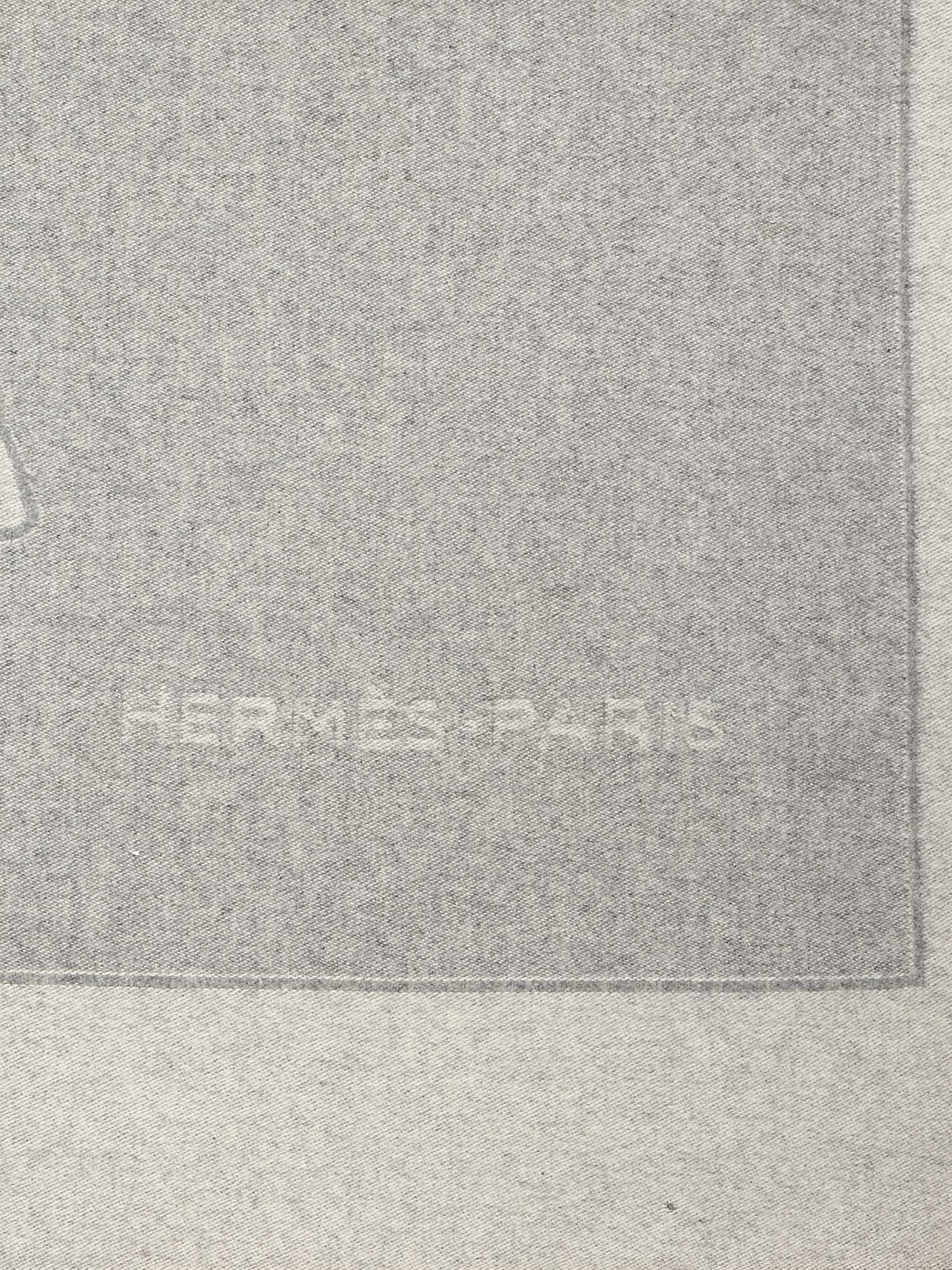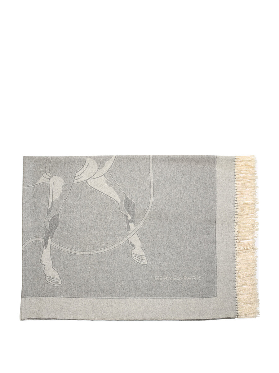Jeté luxueux en cachemire avec motif équestre en gris. Bords à franges.