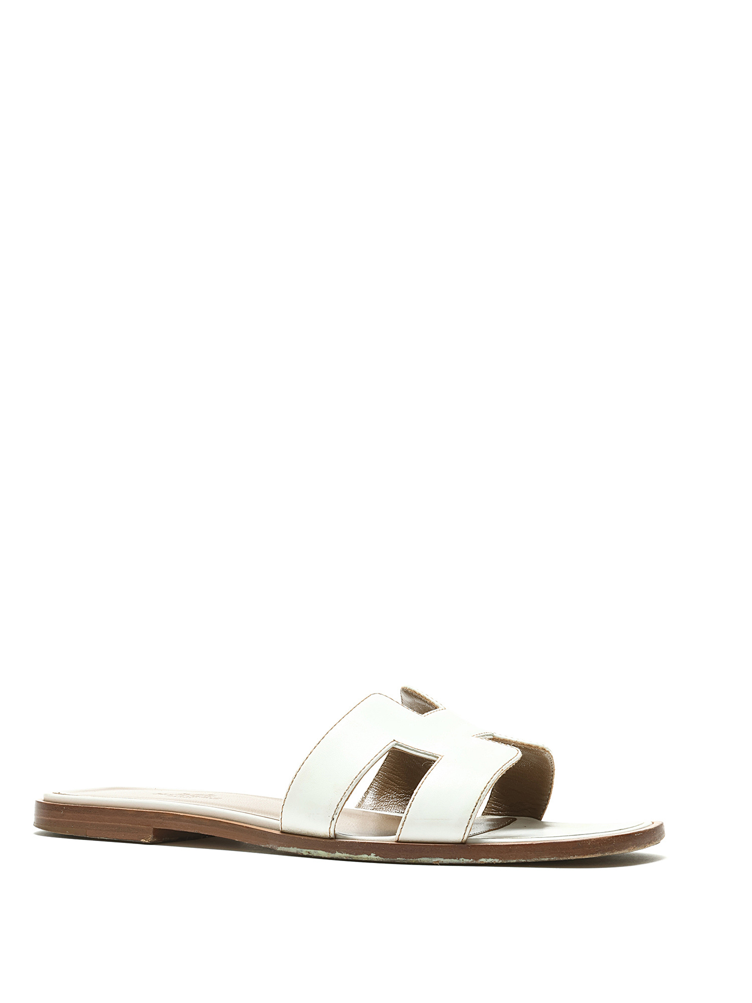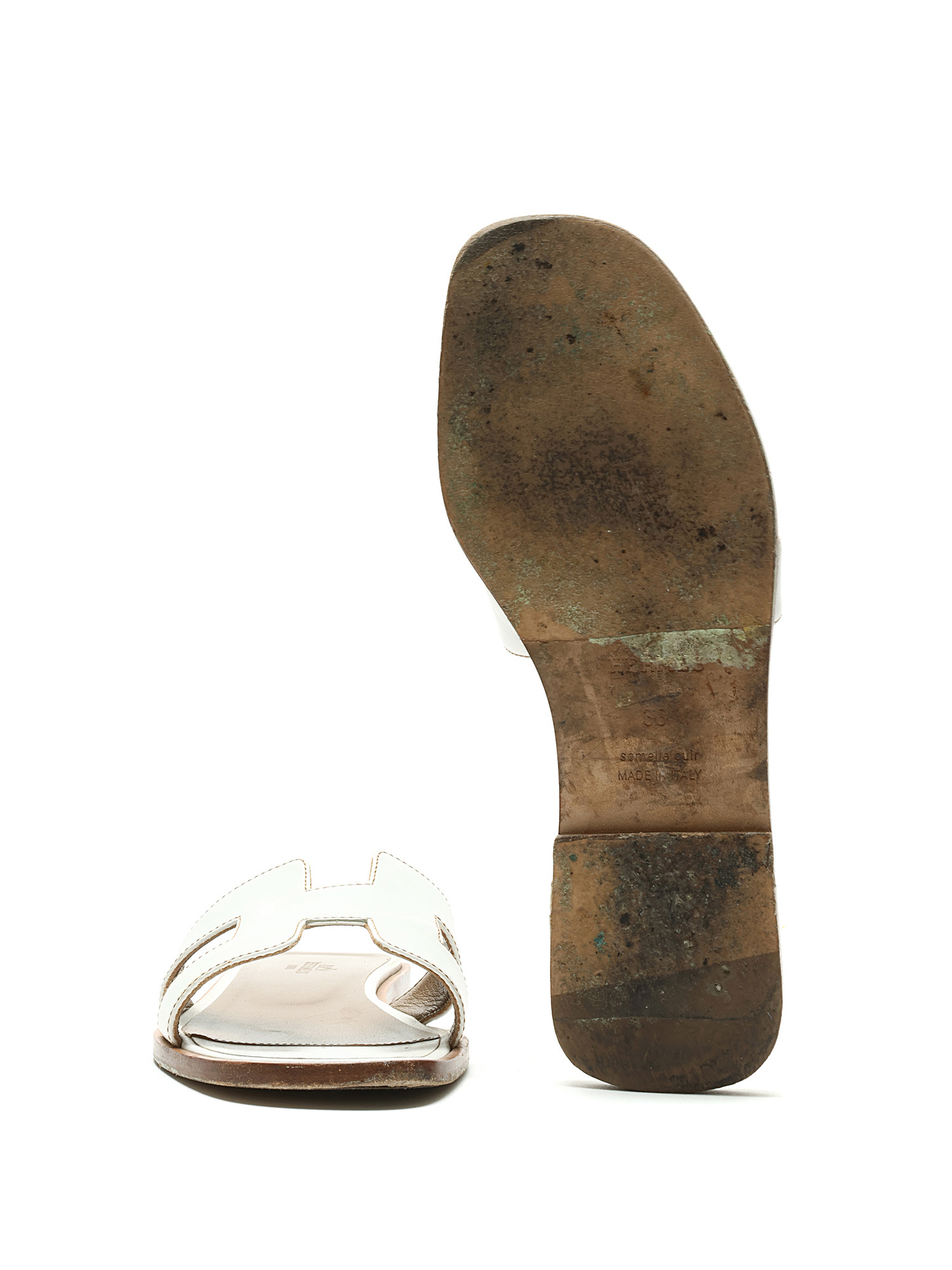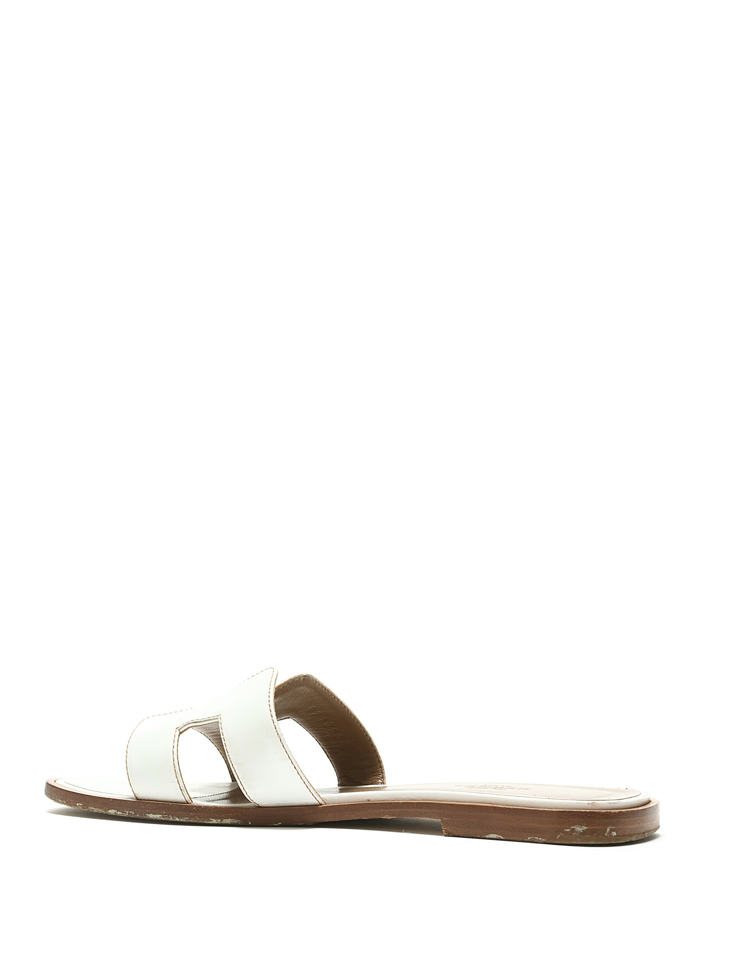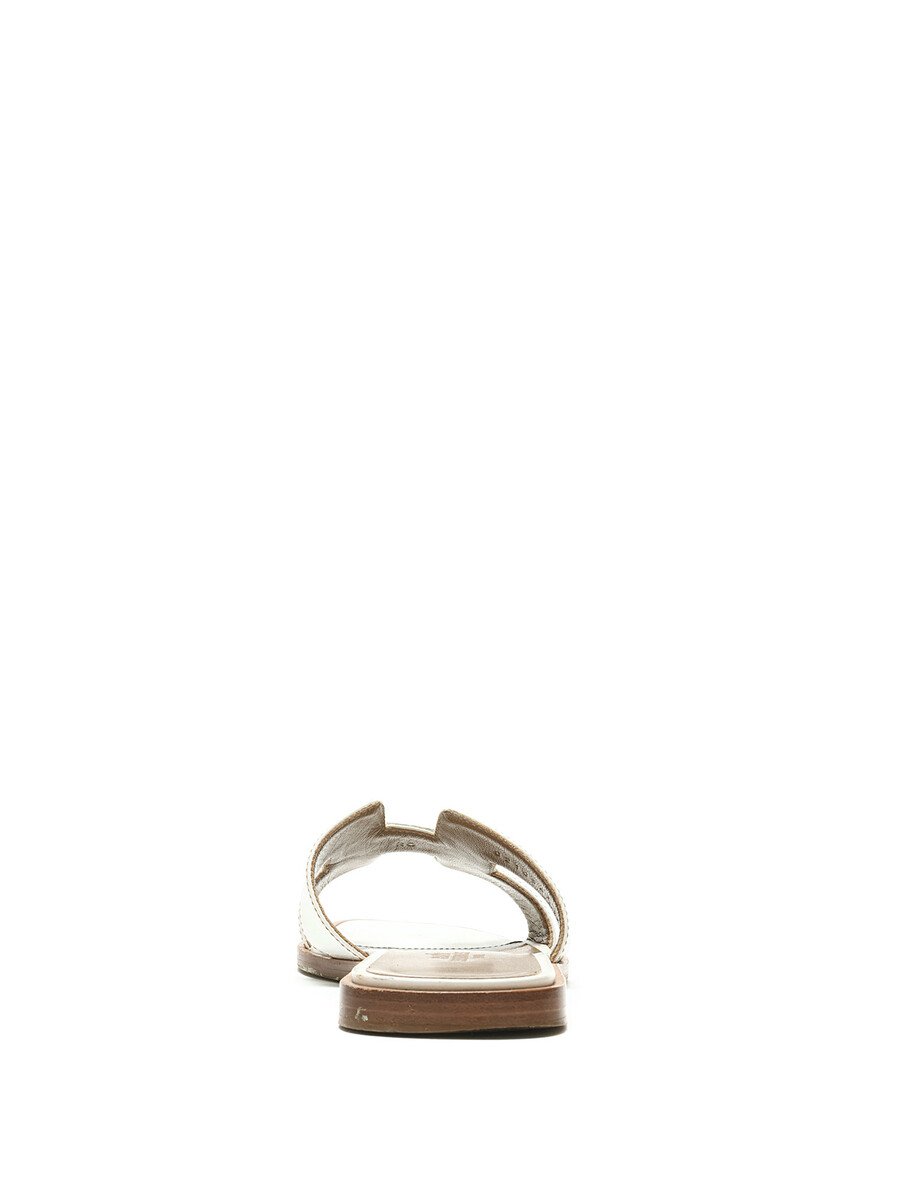 Sandales en cuir grainé blanches avec découpe à motif à logo. Bout ouvert. Semelle en cuir. Avec dust bag.