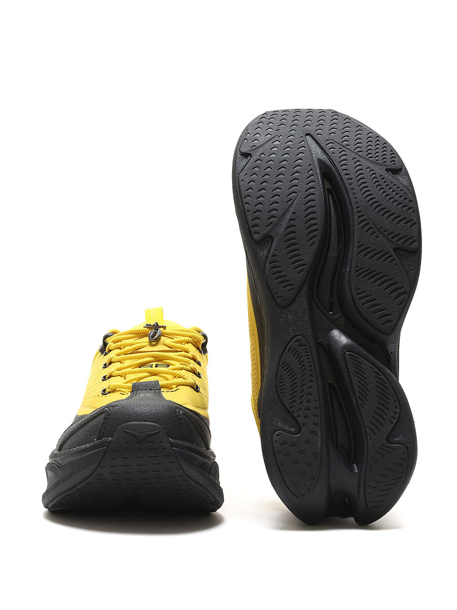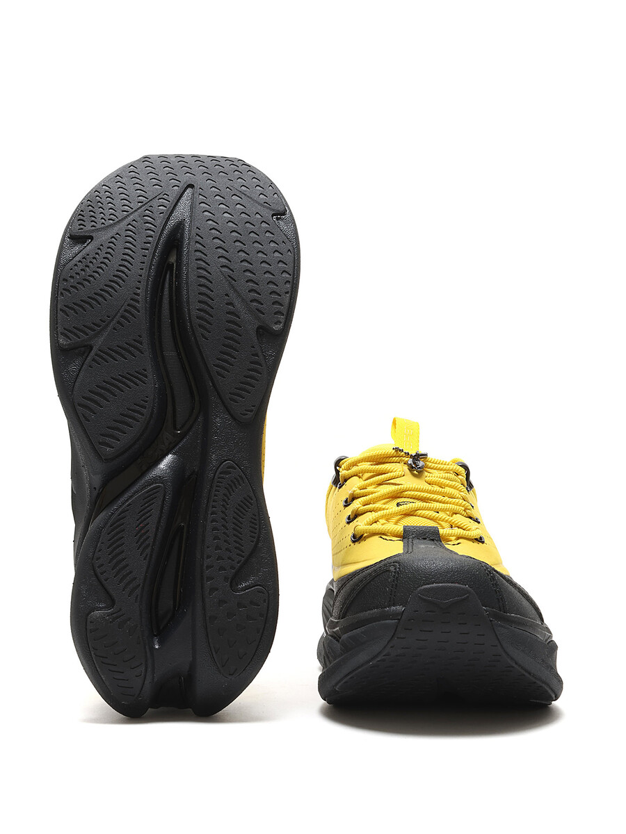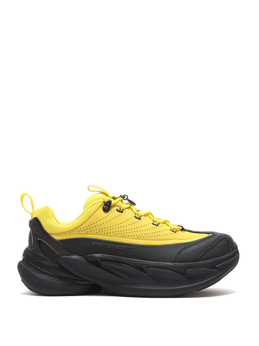 Sneakers basses avec une tige synthétique au design contrasté audacieux jaune et noir. Fermeture à lacets. Bout rond. Semelle en caoutchouc.