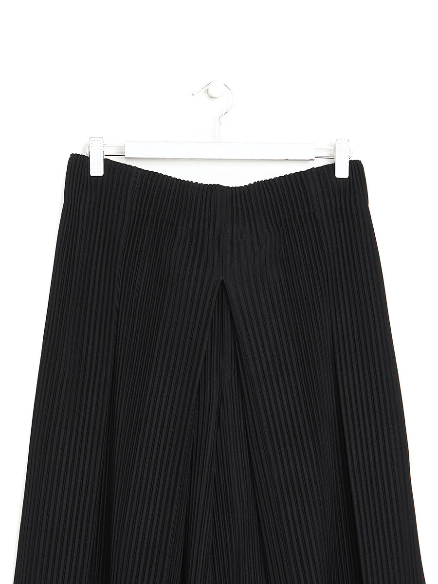 Pantalon plissé en noir avec taille élastiquée à cordon de serrage. Conçu pour le confort et le style avec sa texture plissée unique.