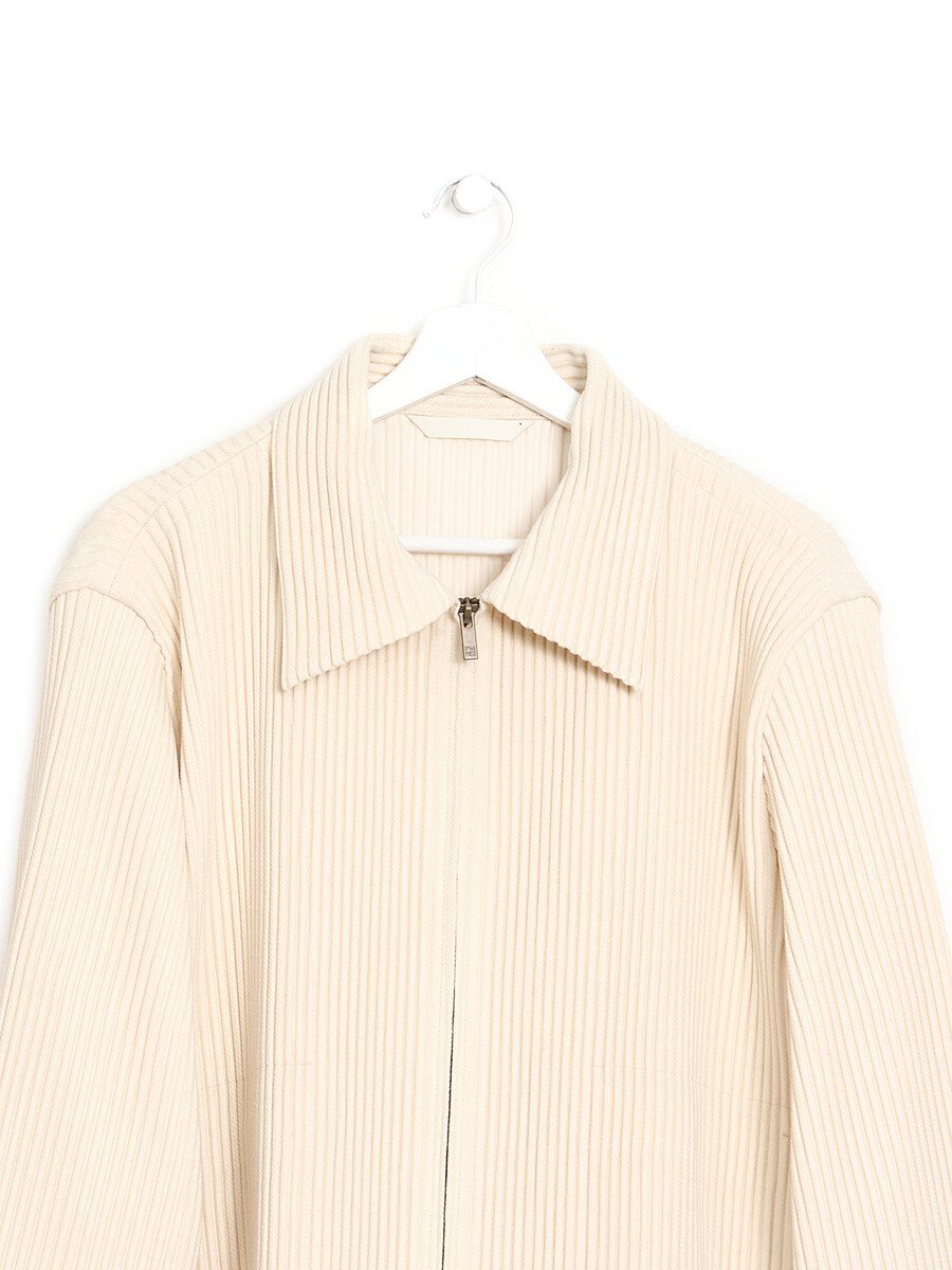 Veste à manches longues zippée avec un design plissé distinct en crème.