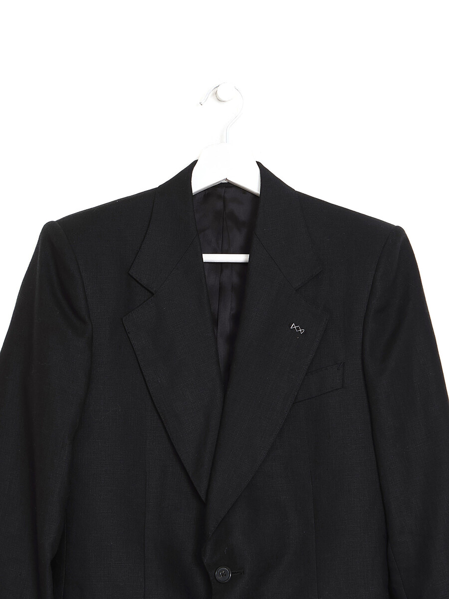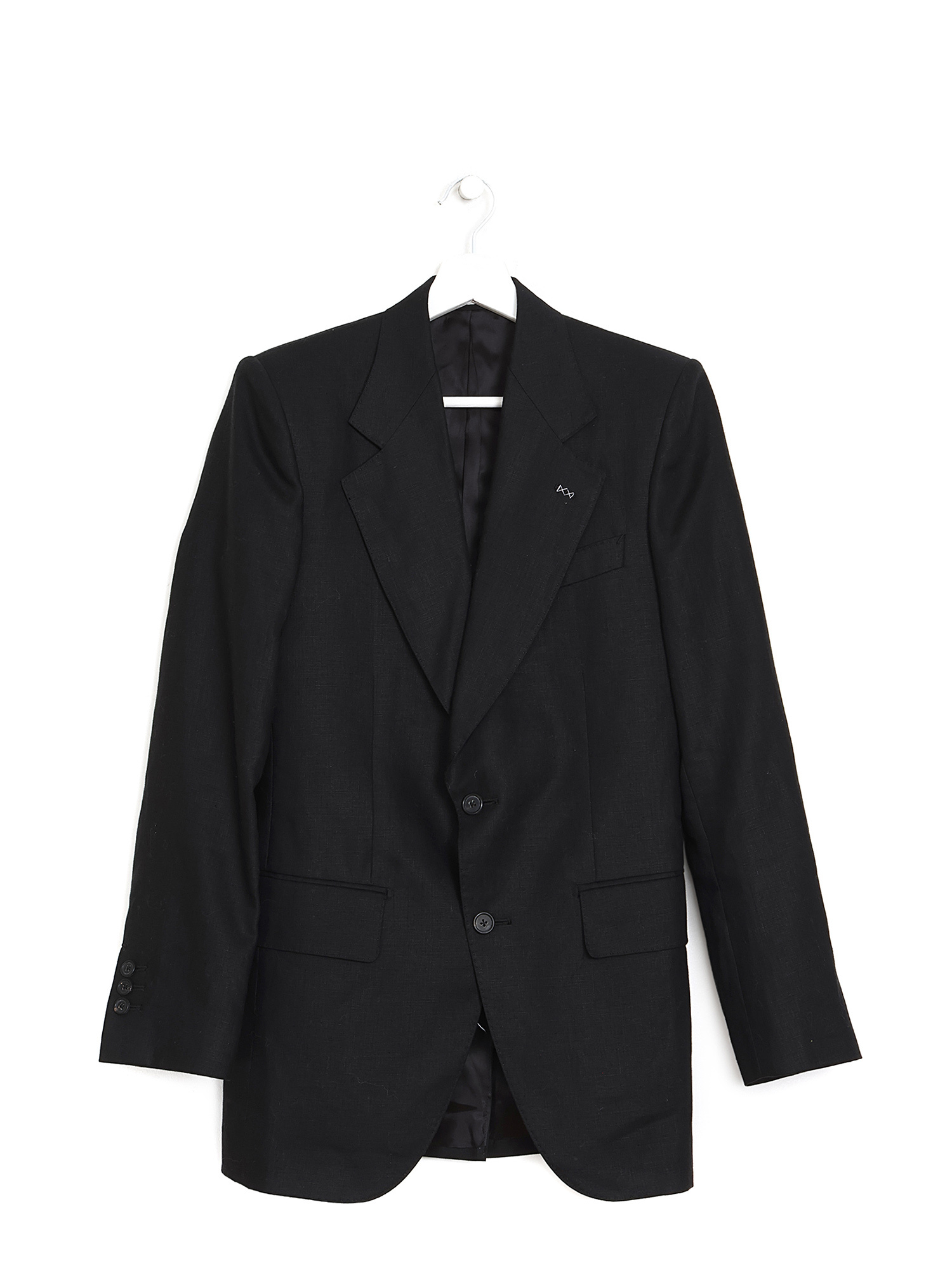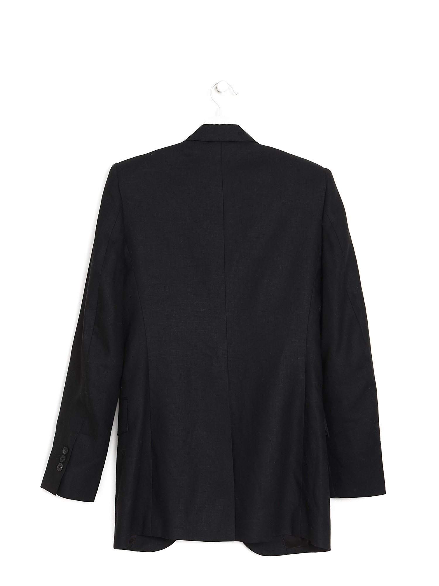 Veste noire à manches longues en lin. Col à cran. Fermeture à boutons devant. Poches passepoilées.