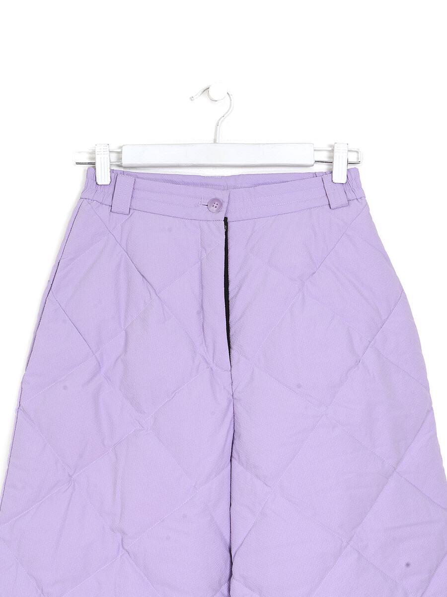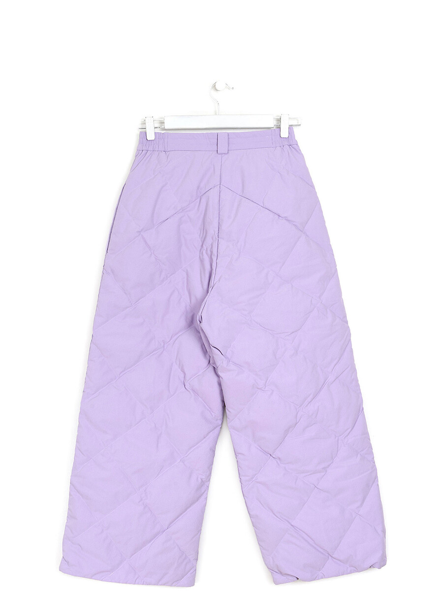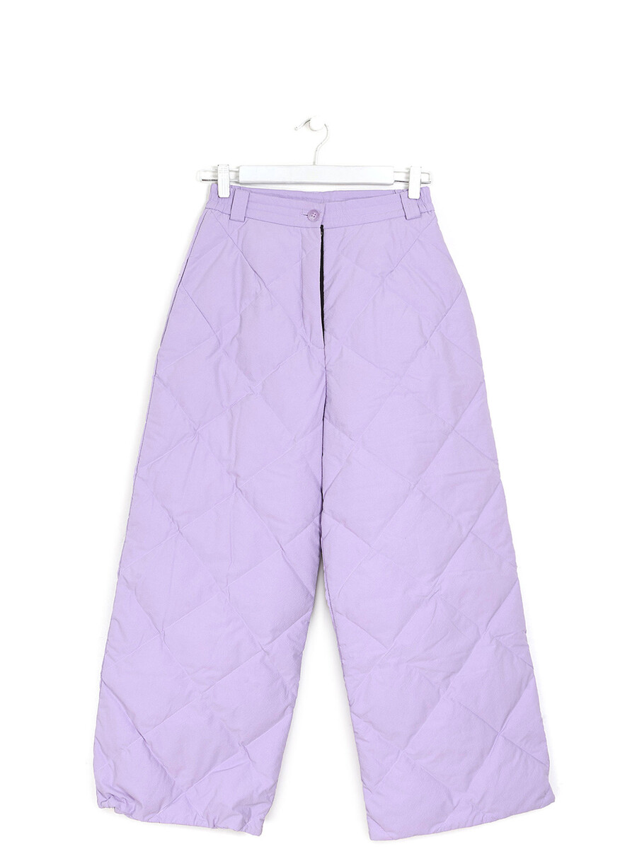 Pantalon texturé matelassé en violet pâle. Fermeture à glissière dissimulée à l'avant. Passants de ceinture.