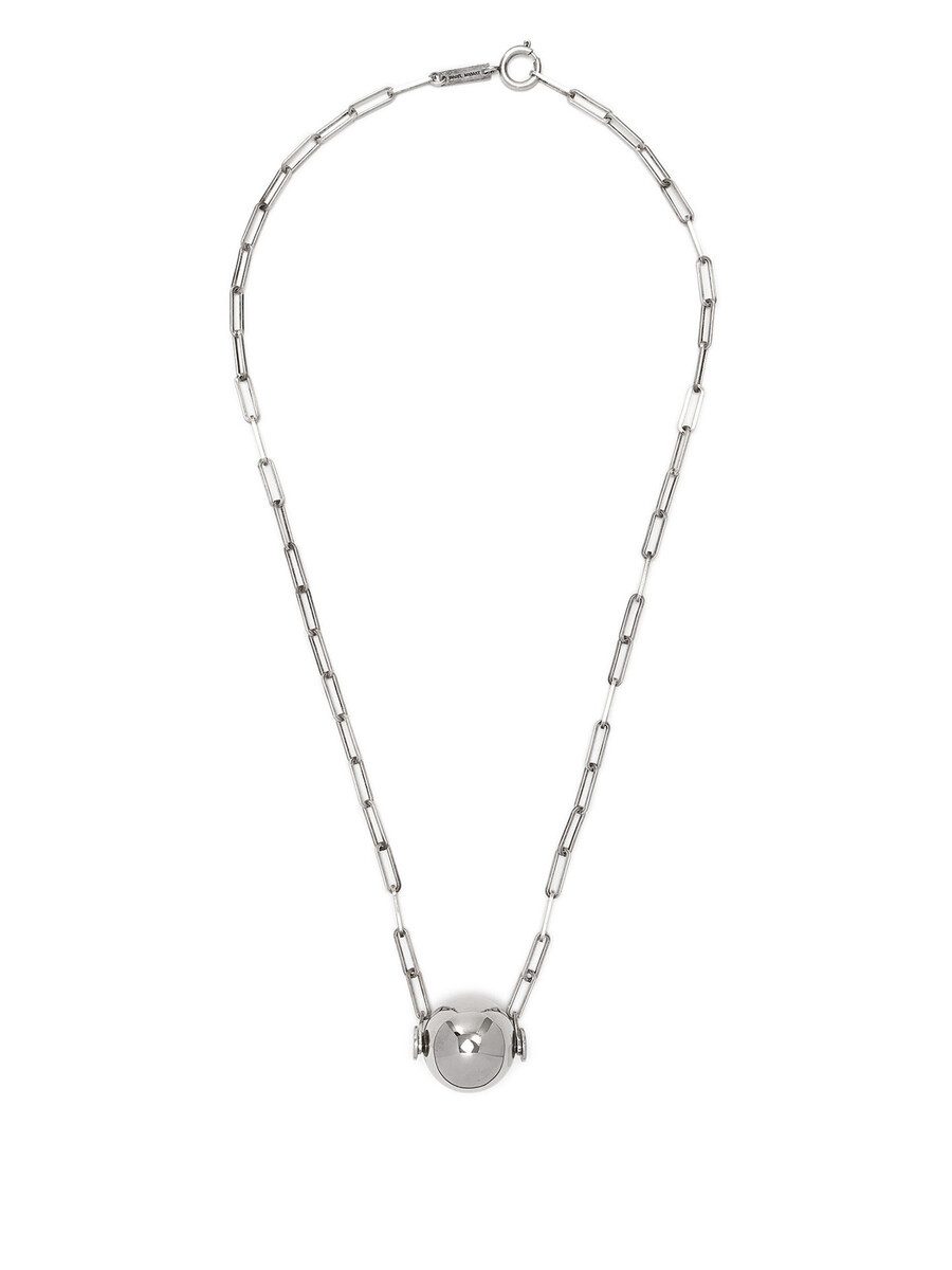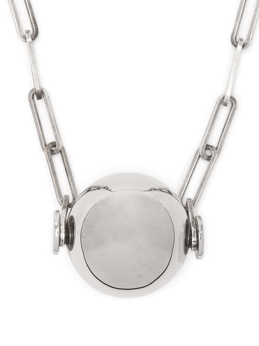 Collier en métal avec pendentif sphérique en argent. Avec un sac de protection.
