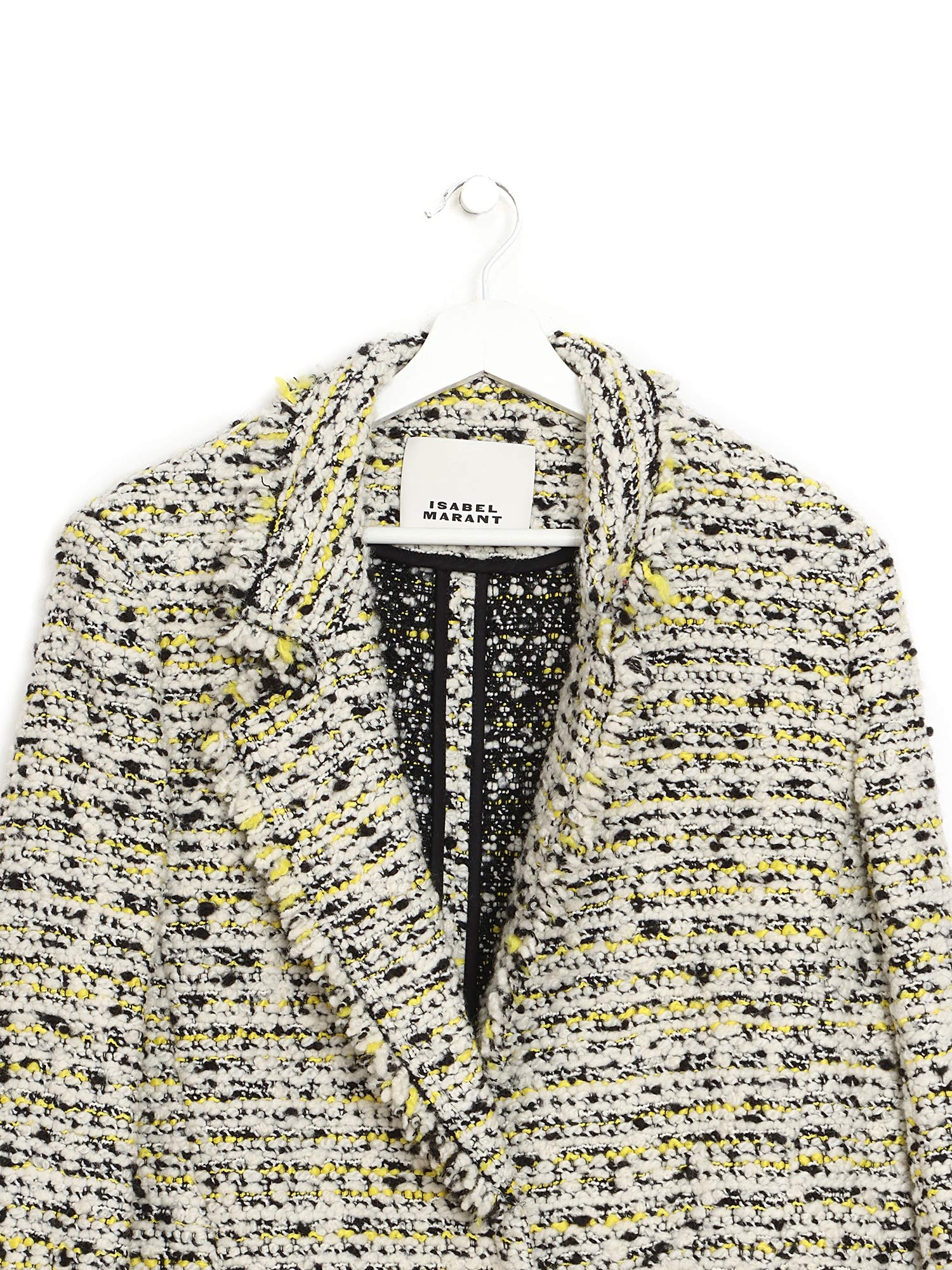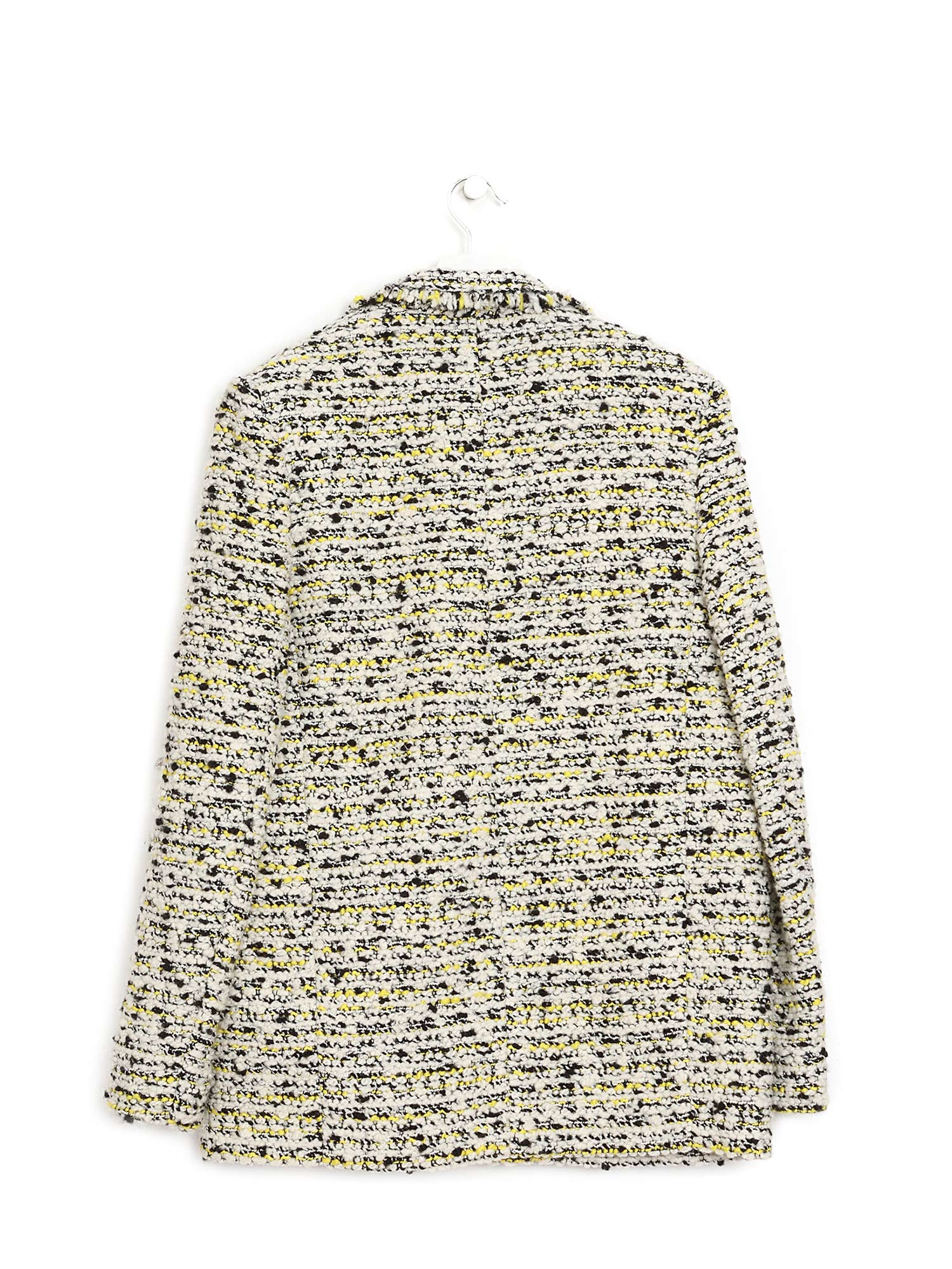 Veston à manches longues en laine mélangée avec motif abstrait. Fermeture boutonnée à l'avant. Poches plaquées boutonnées à l'avant. Coupe ajustée.