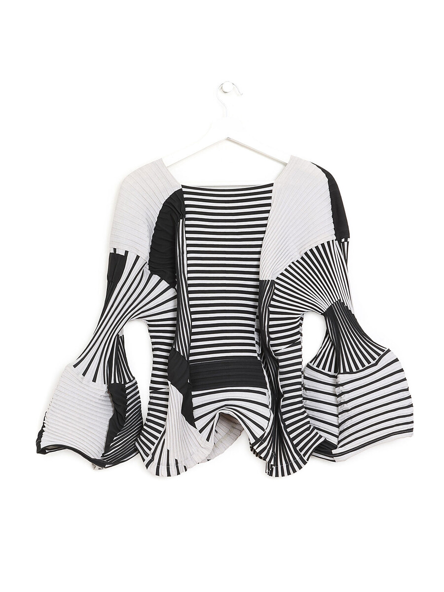 Haut à manches longues avec motif rayé noir et blanc. Coupe ajustée. Tissu léger.