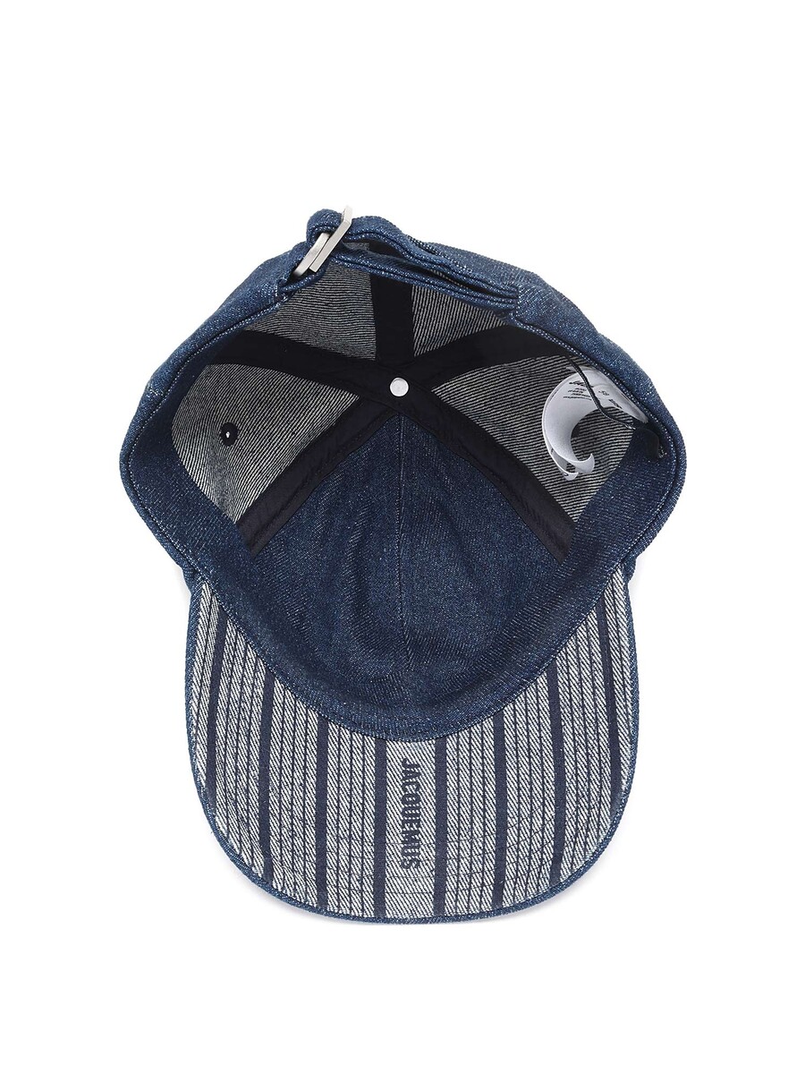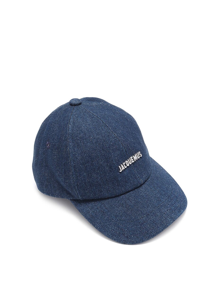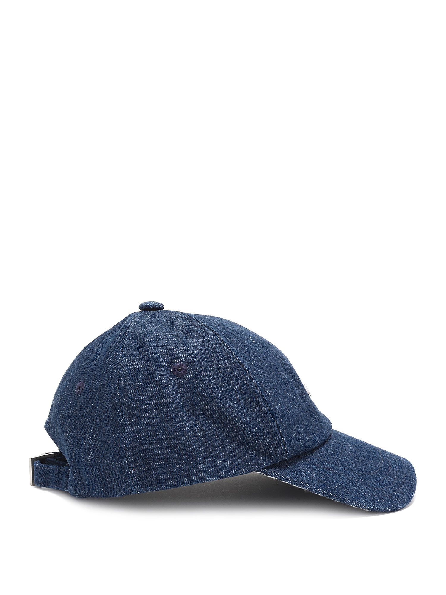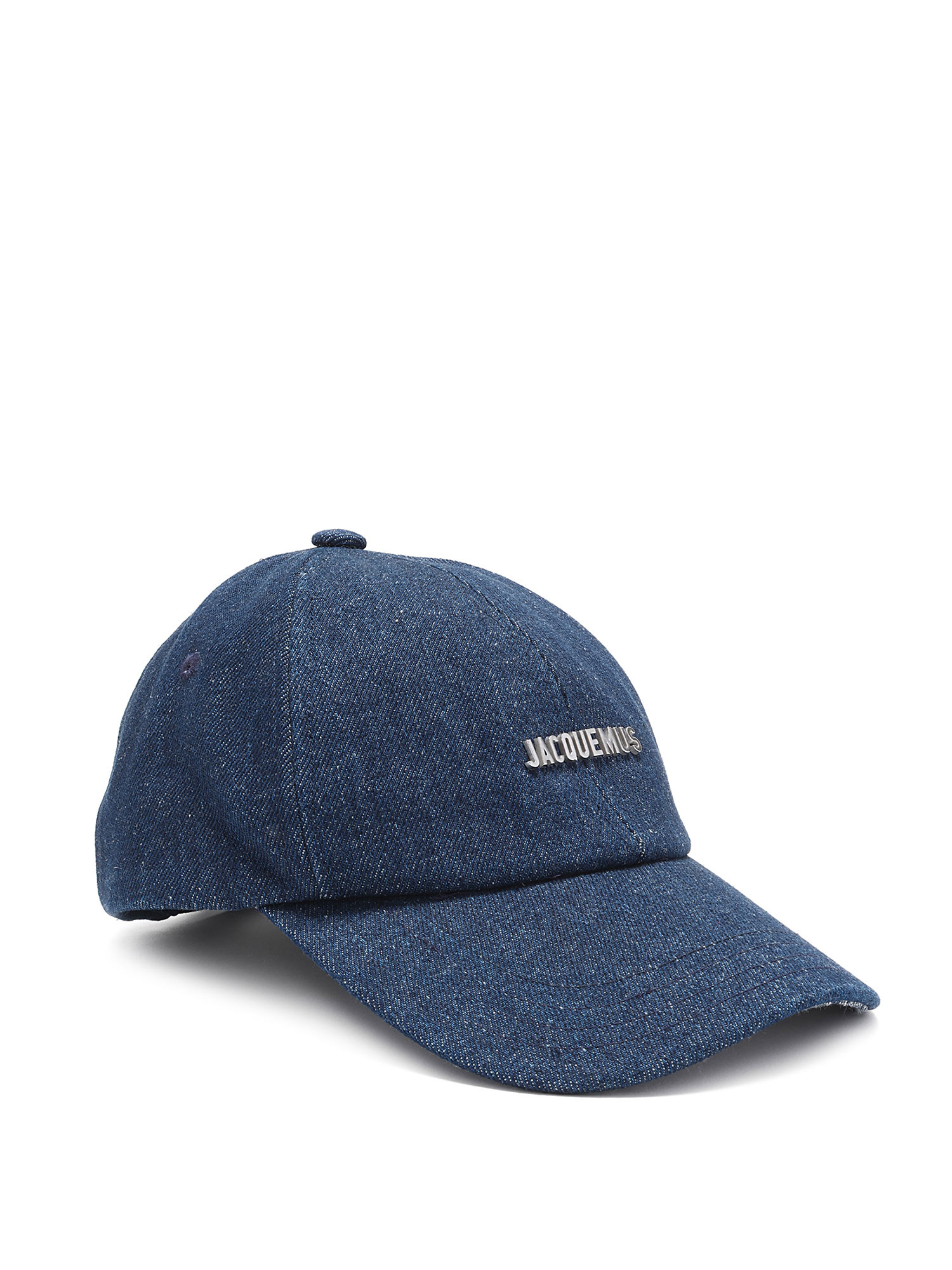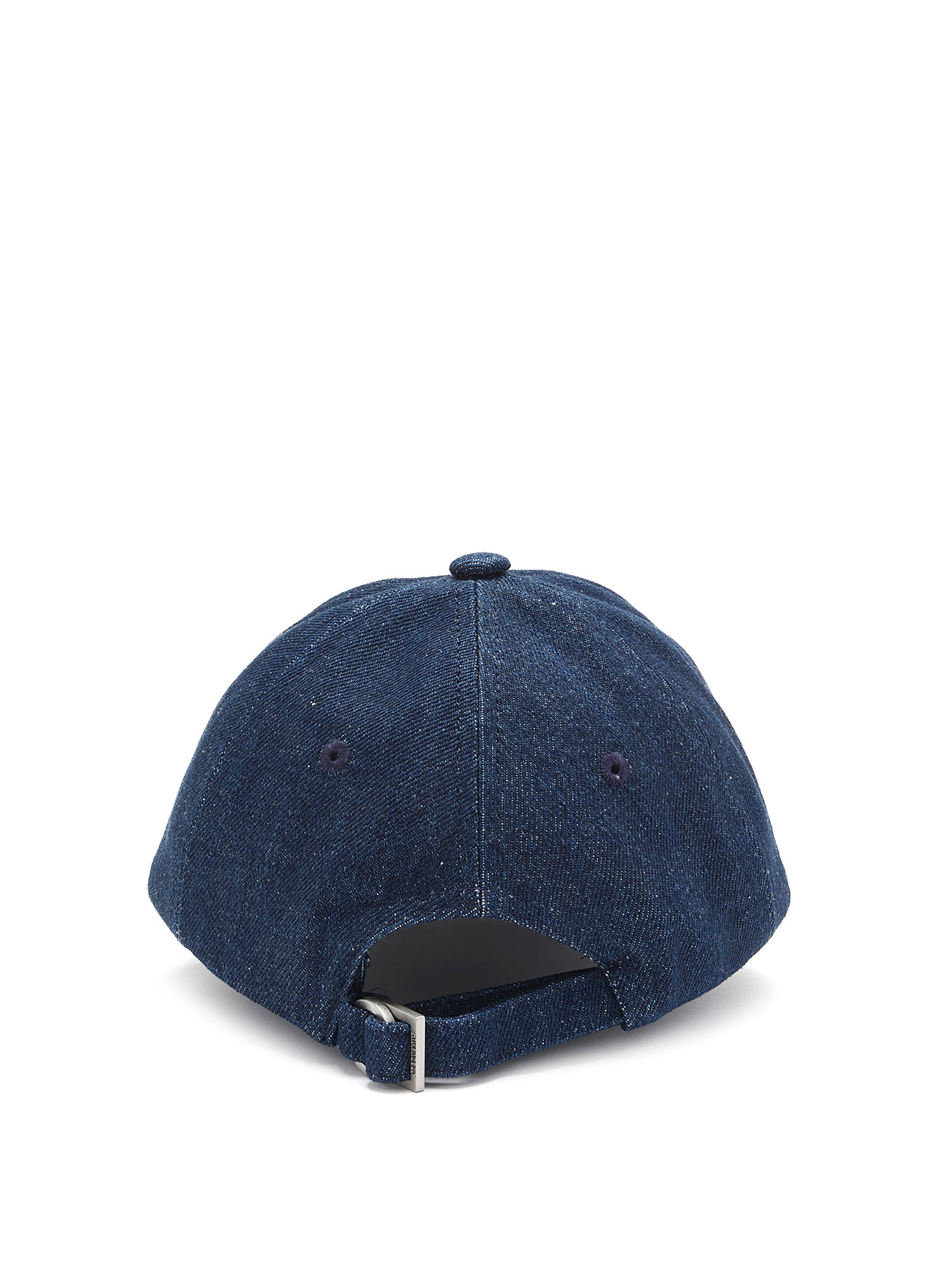 Casquette en denim bleu avec logo en métal argenté sur le devant. Visière courbée. Sangle ajustable à l'arrière pour un ajustement parfait.