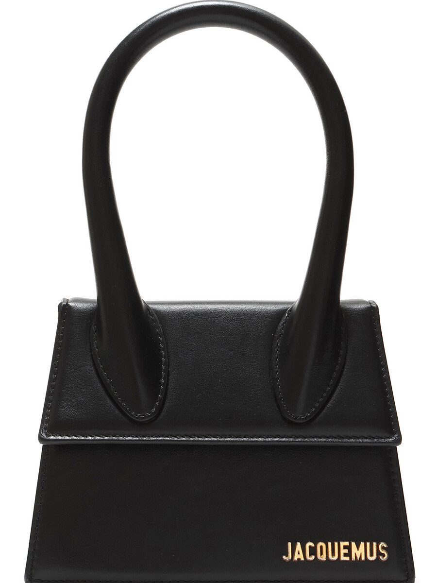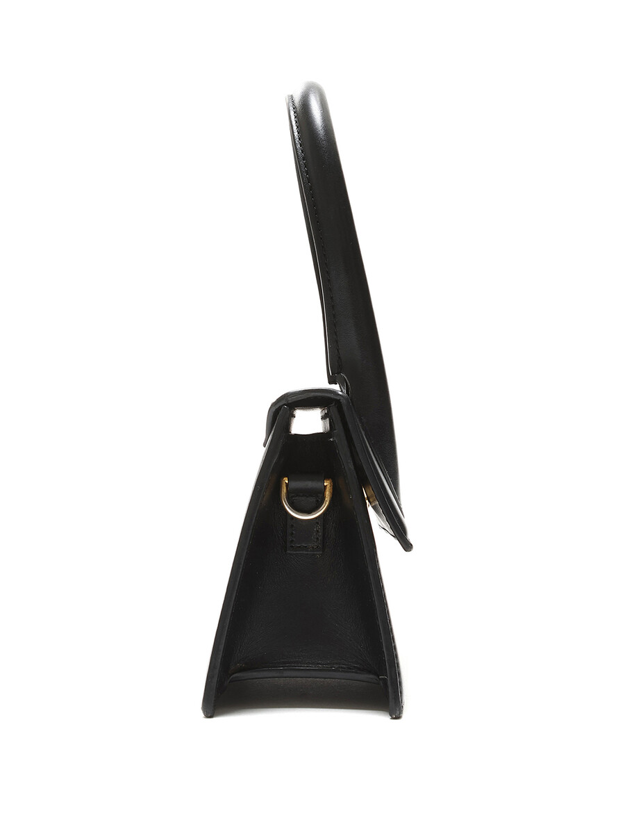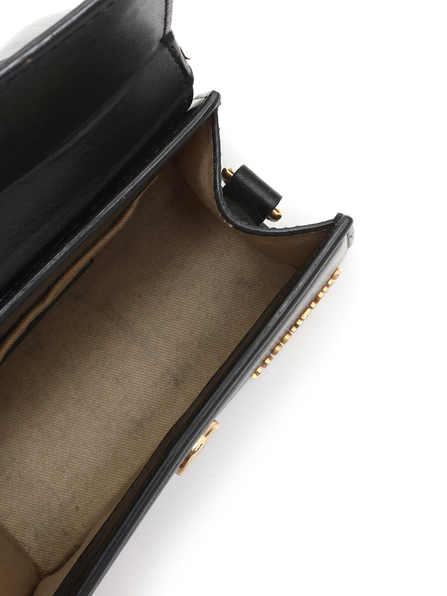 Mini sac à main en cuir noir. Logo doré avec coutures ton sur ton. Fermeture par bouton magnétique. Poignées supérieures et bandoulière amovible. Ferrures dorées.