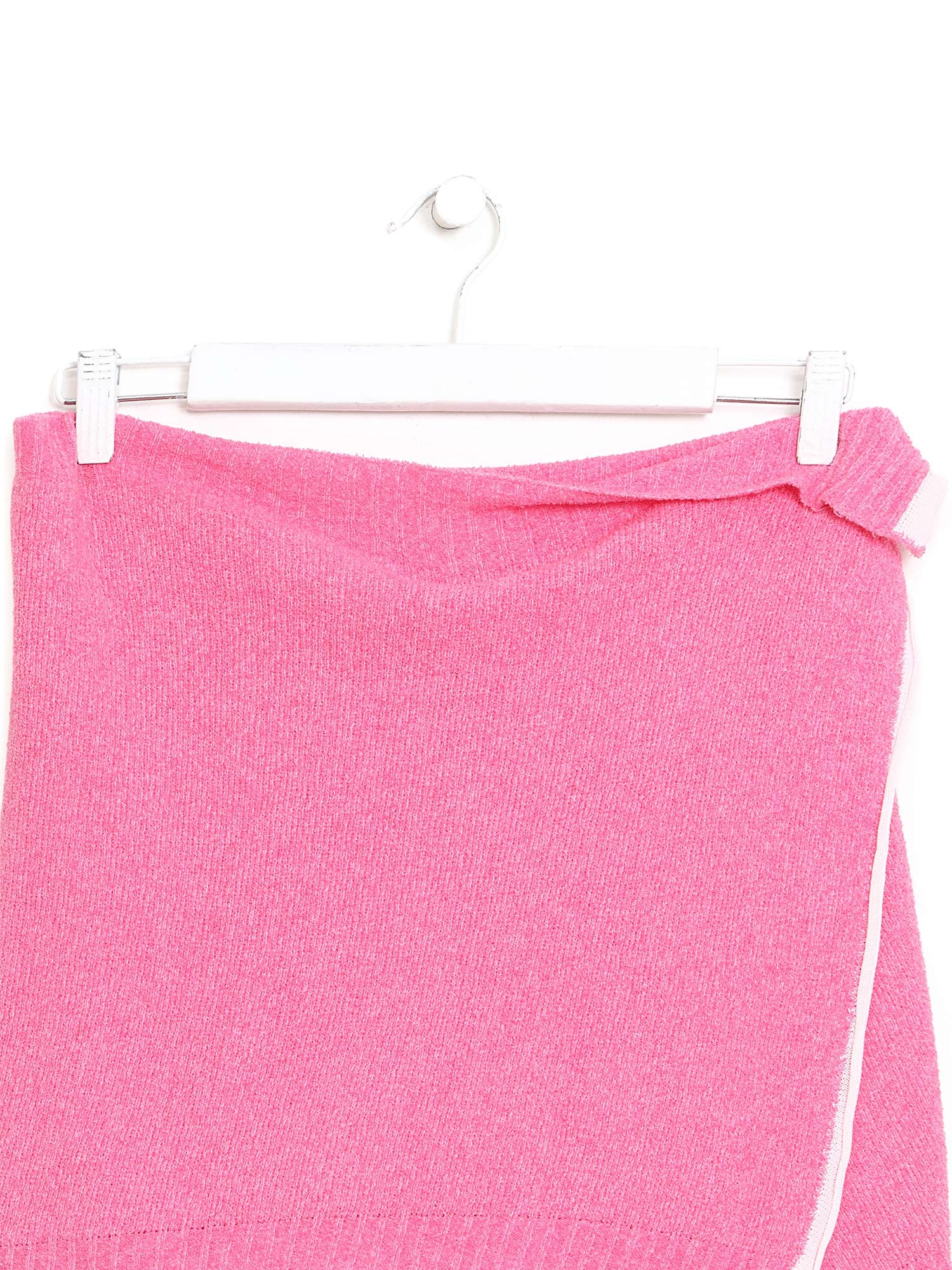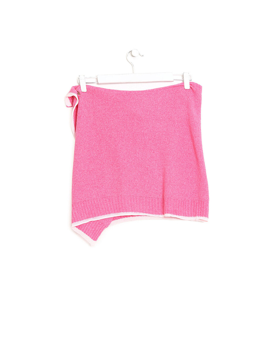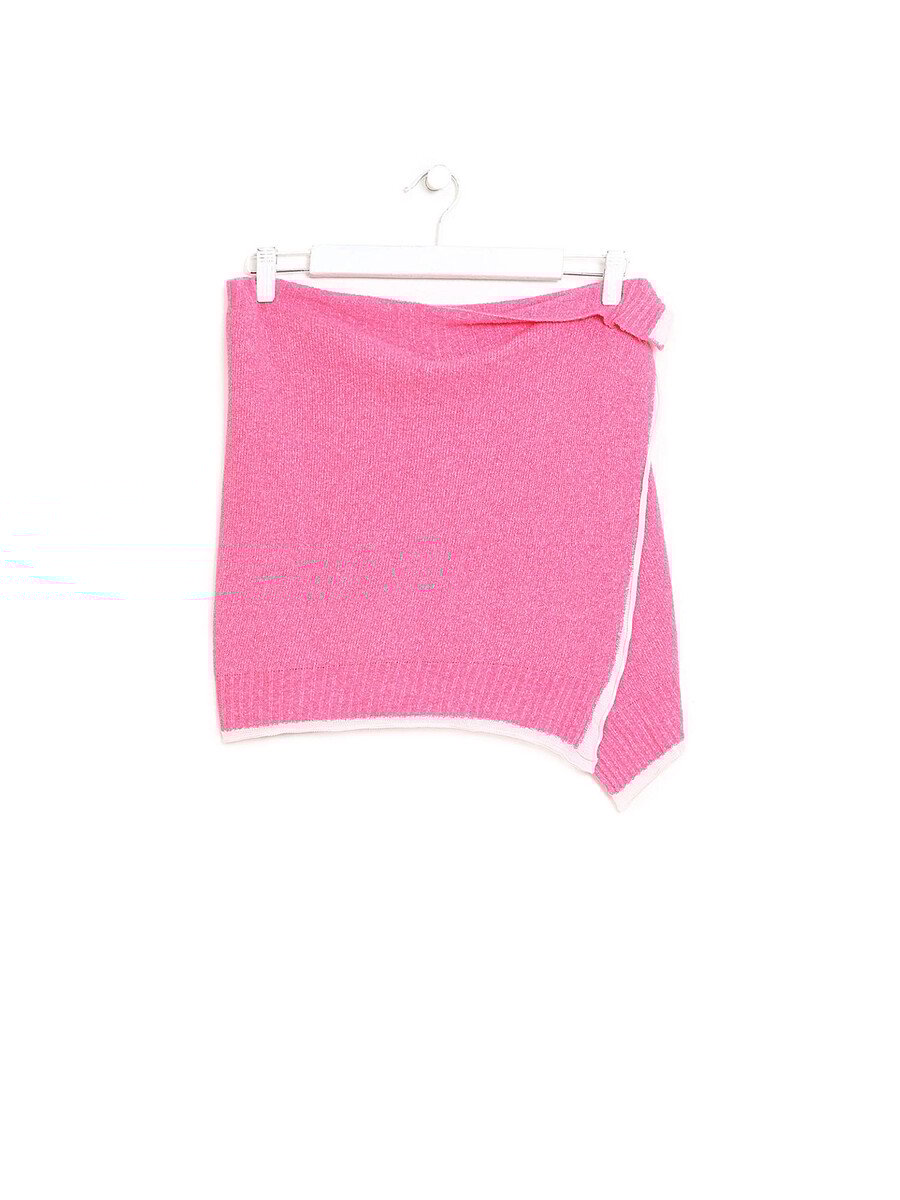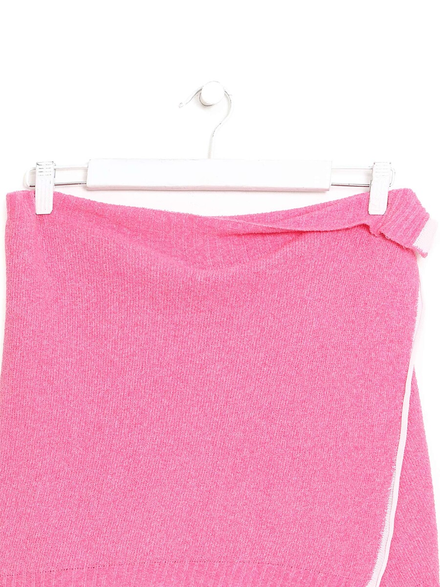 Mini-jupe portefeuille en rose.