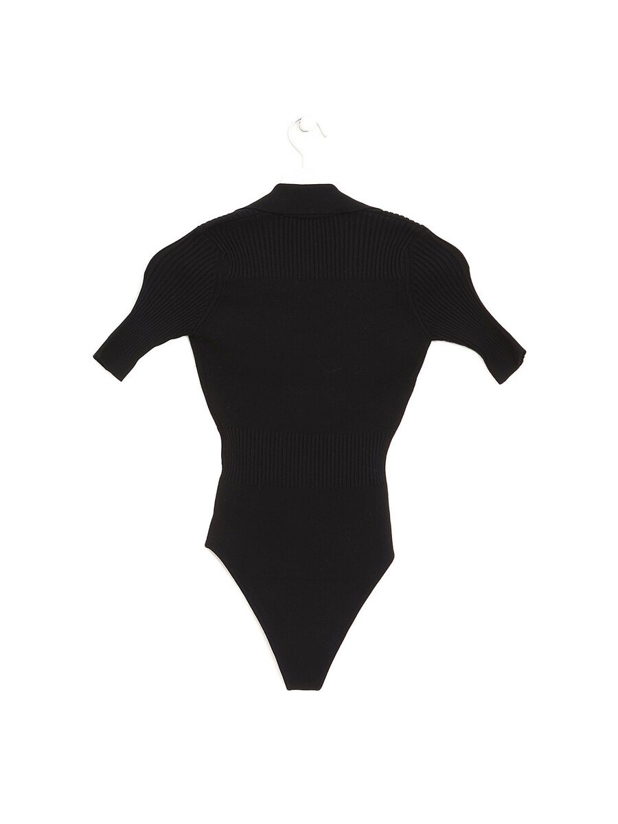 Justaucorps noir à manches longues avec fermeture à boutons sur le devant. Tissu extensible. Silhouette ajustée.