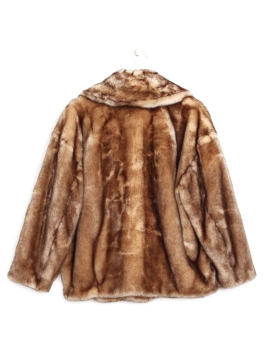 Manteau en fausse fourrure brun. Texture pelucheuse et coupe confortable. Une pièce parfaite pour ajouter chaleur et style.