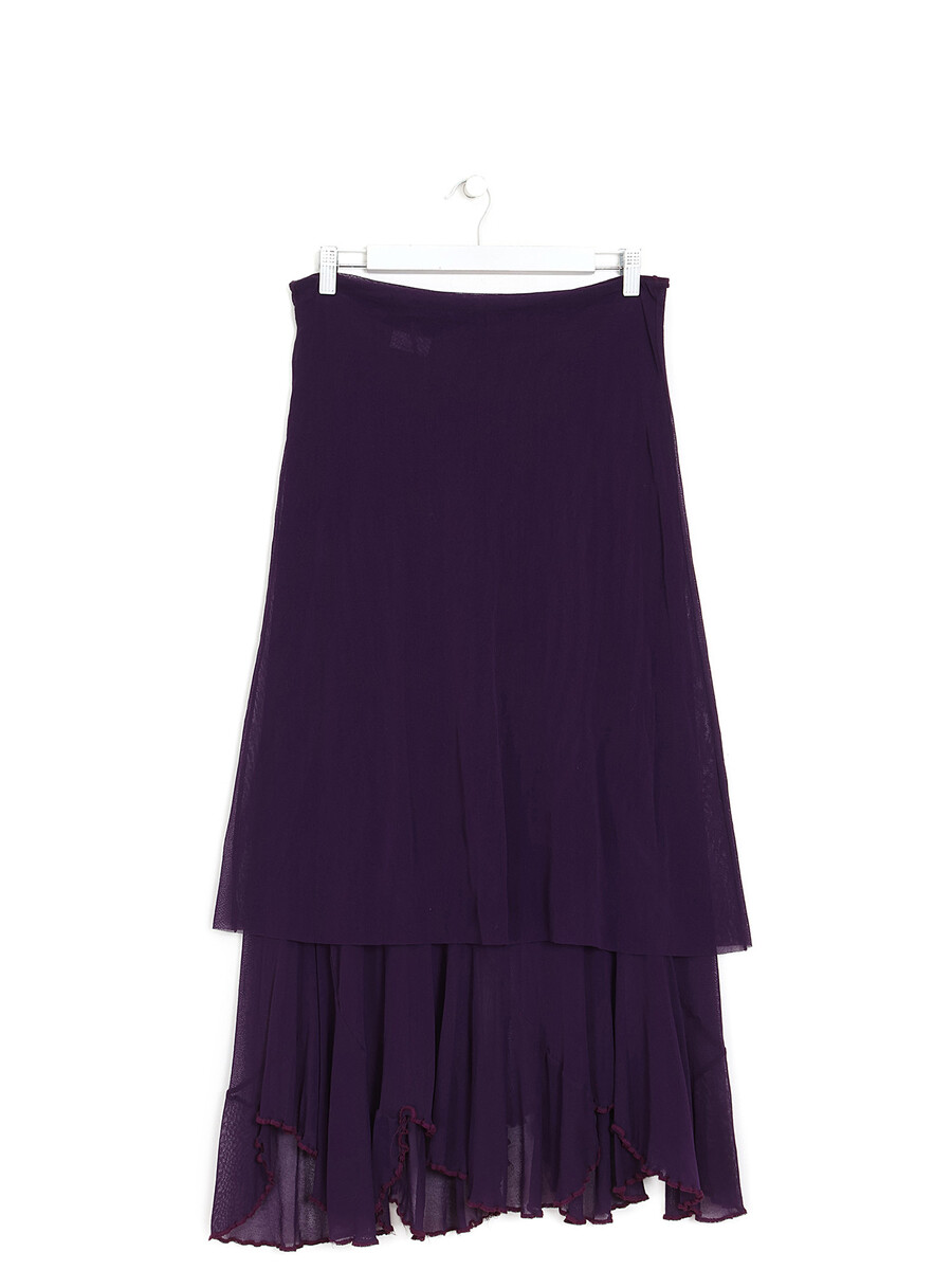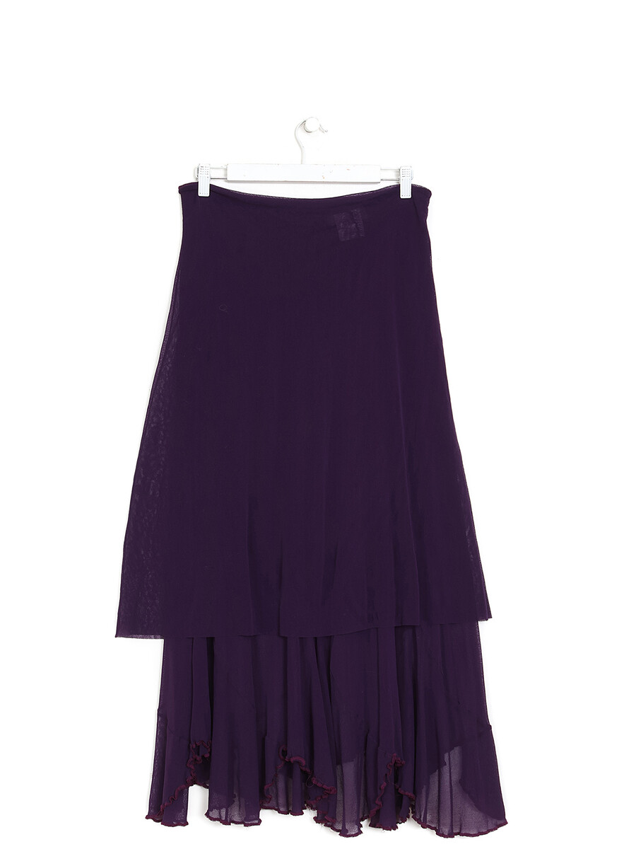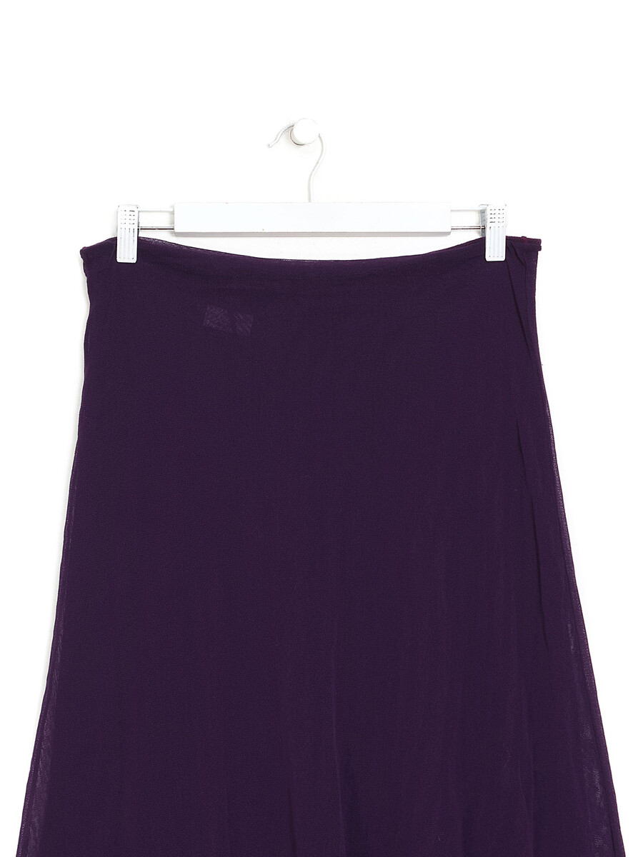 Jupe superposée en maille transparente mauve avec taille élastique. Drapé délicat pour une silhouette fluide.
