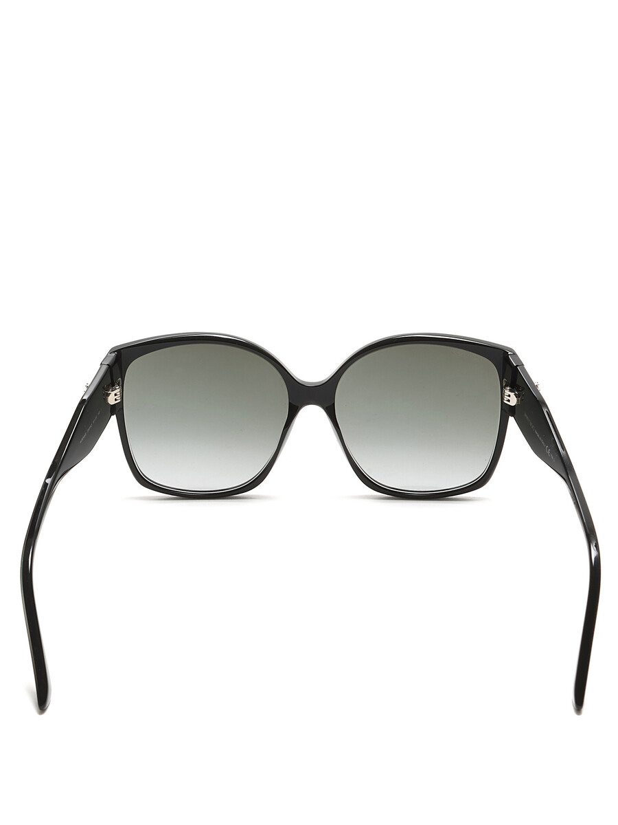 Lunettes de soleil surdimensionnées en acétate noir avec logo orné de finitions argentées et paillettes sur les branches.