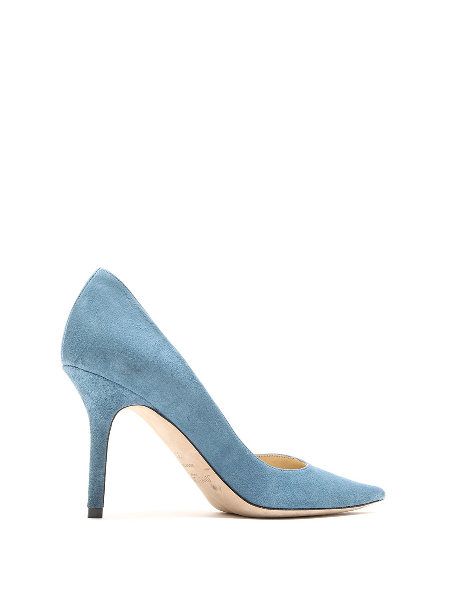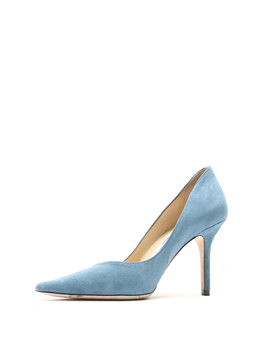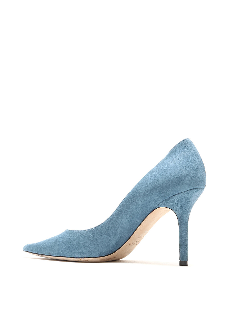 Élégants escarpins en suède bleu profond. Design à bout pointu.