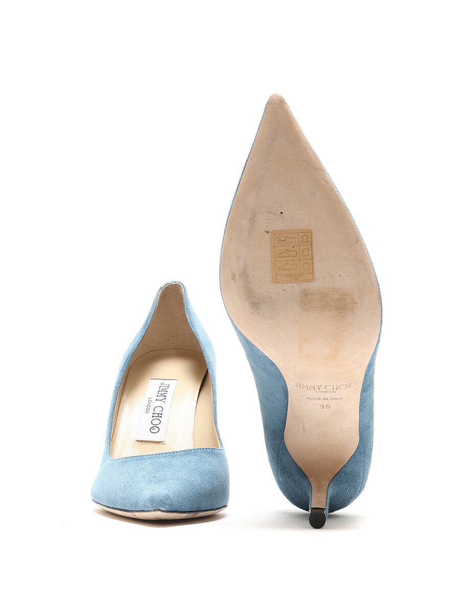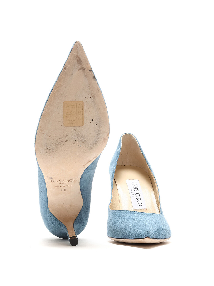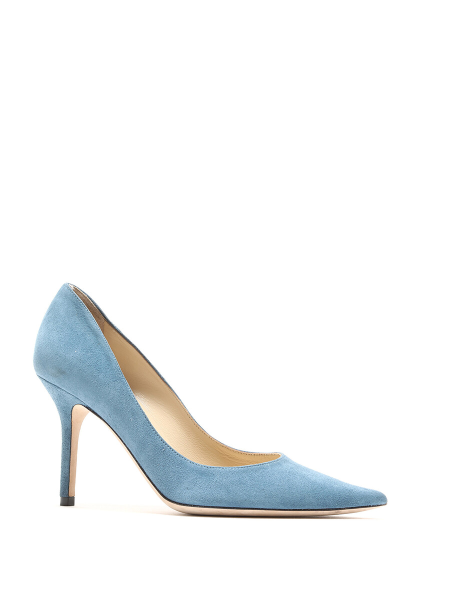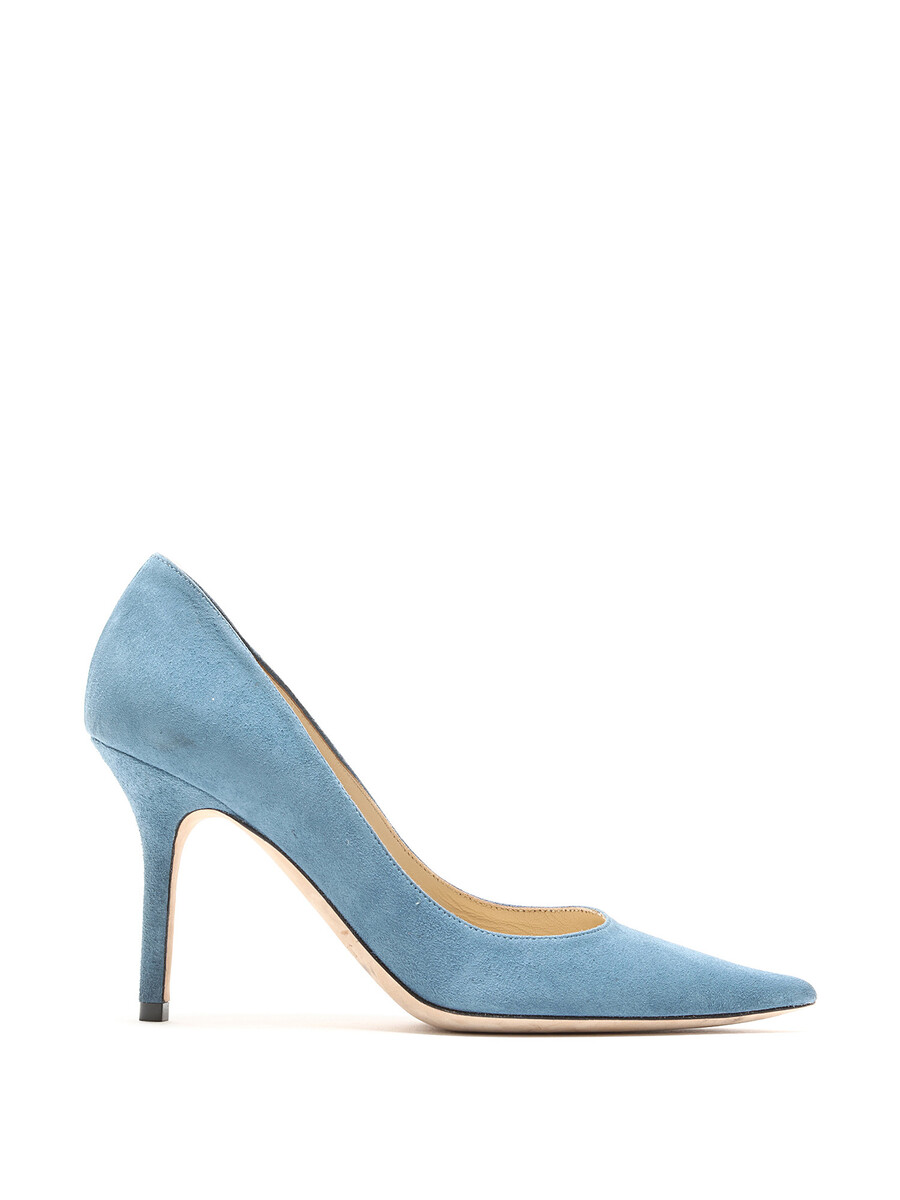 Élégants escarpins en suède bleu profond. Design à bout pointu.