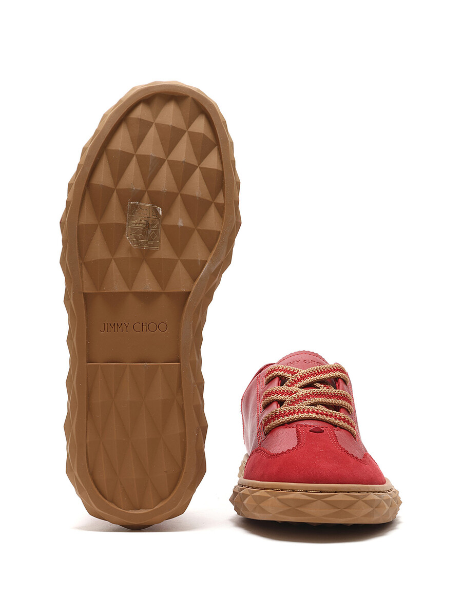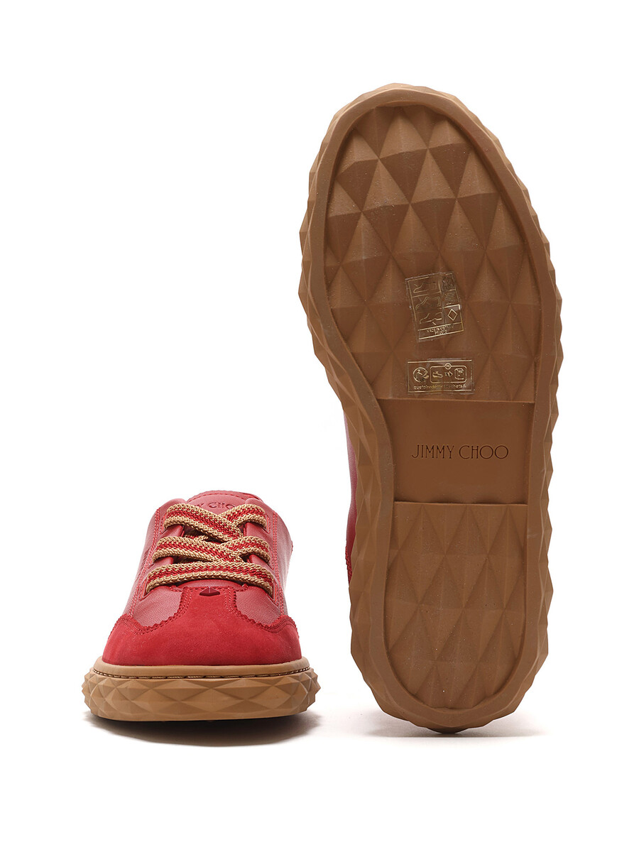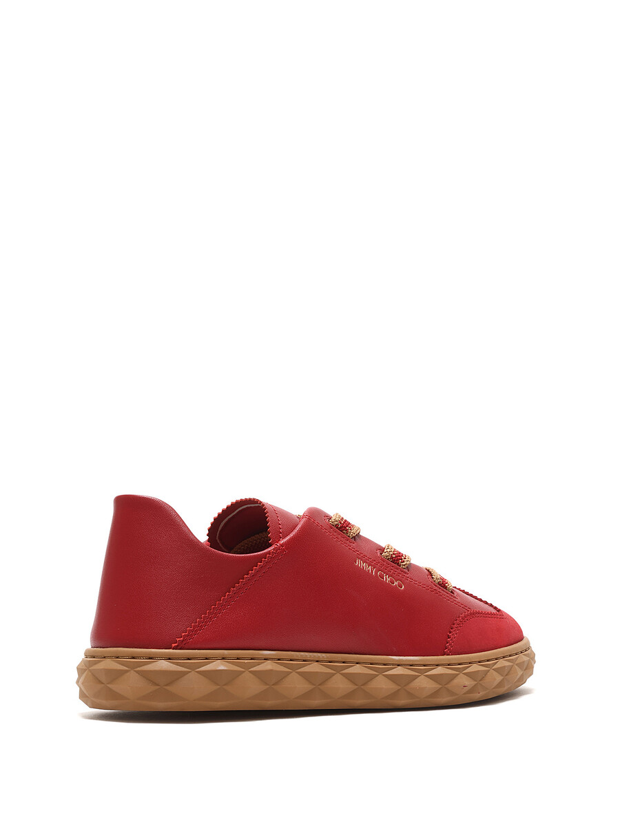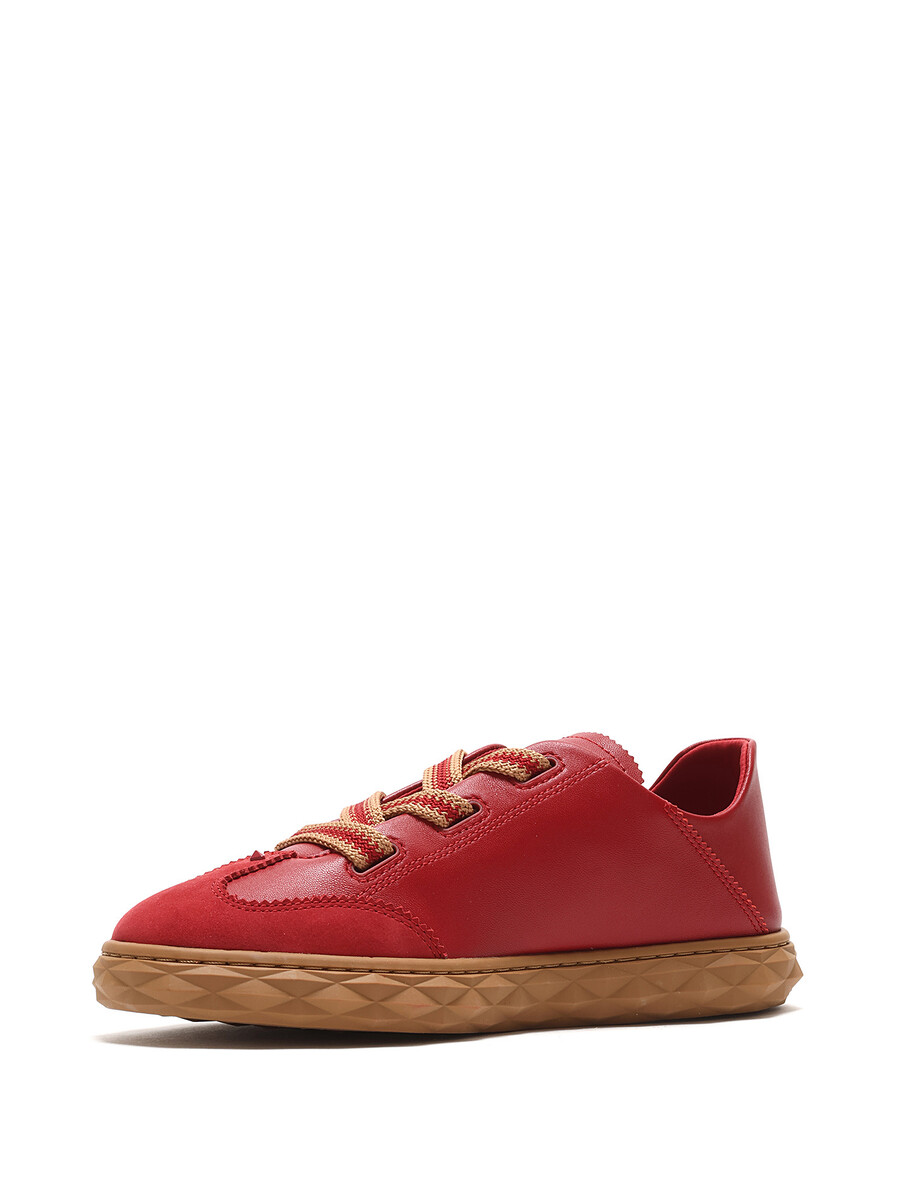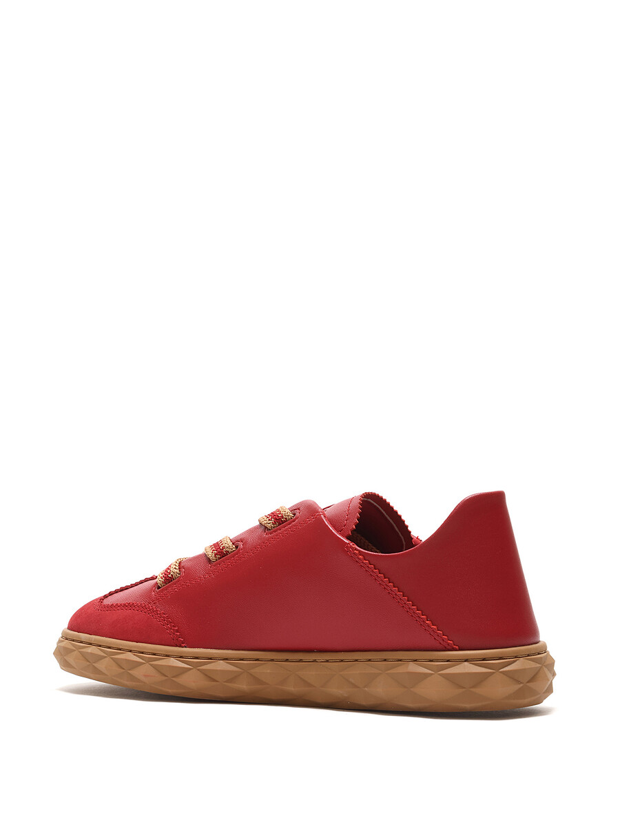 Baskets basses en cuir rouge avec fermeture à lacets et bout rond. Semelle en caoutchouc durable.