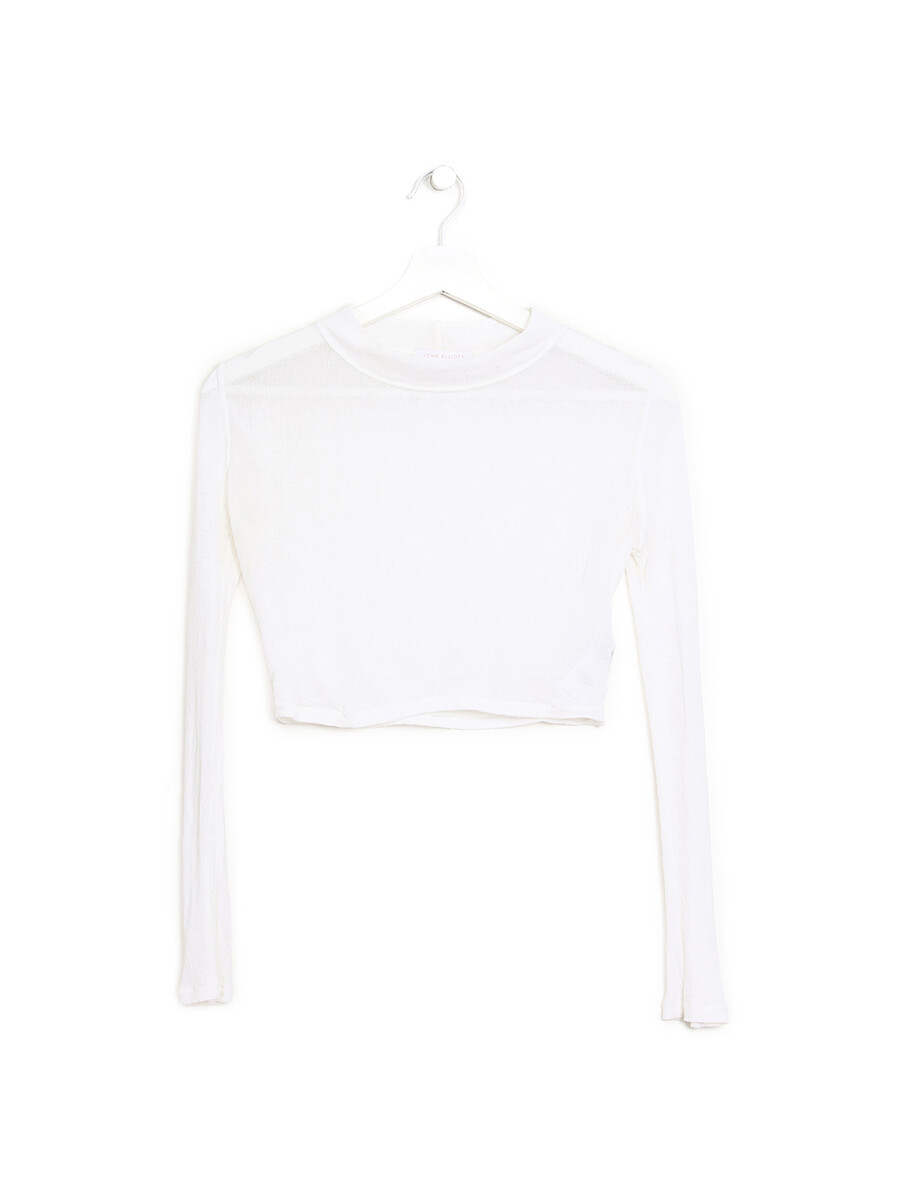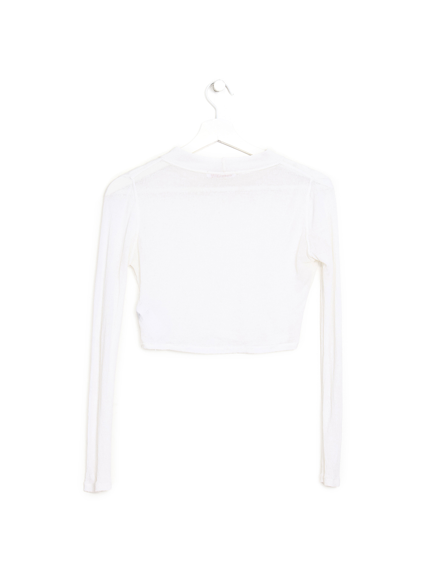 T-shirt à manches longues en blanc transparent. Léger et respirant avec une coupe décontractée. Idéal pour superposer ou porter seul.