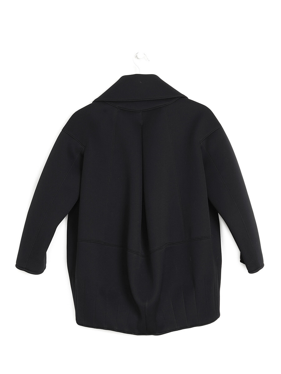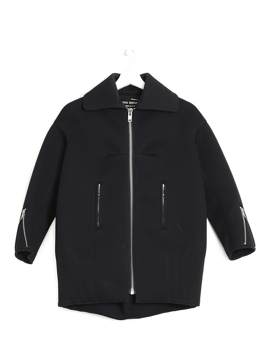 Blouson à manches longues noir en nylon. Col montant. Fermeture à glissière en métal argenté. Poches avant zippées pratiques. Doublure en polyester pour le confort.