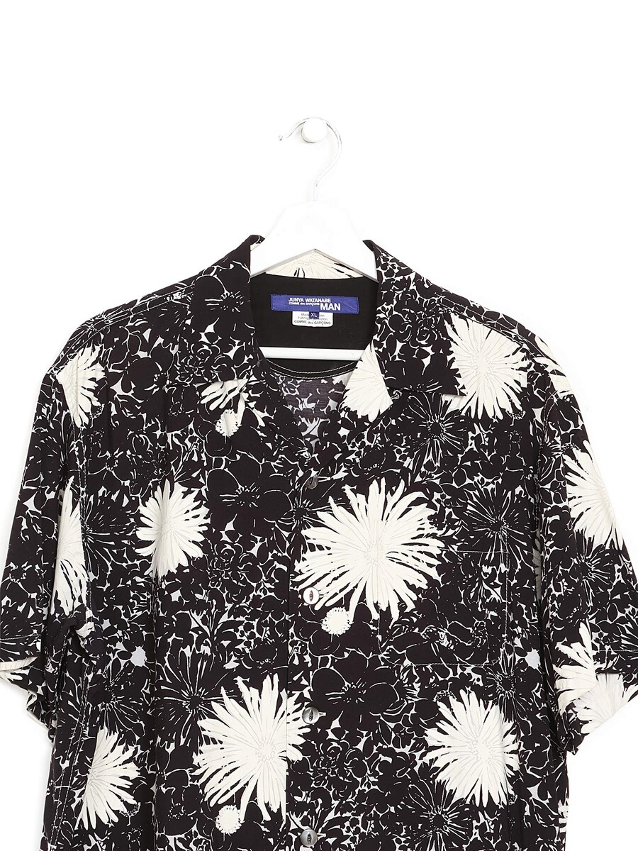 Chemise à manches longues à motif floral en noir et blanc. Col classique.