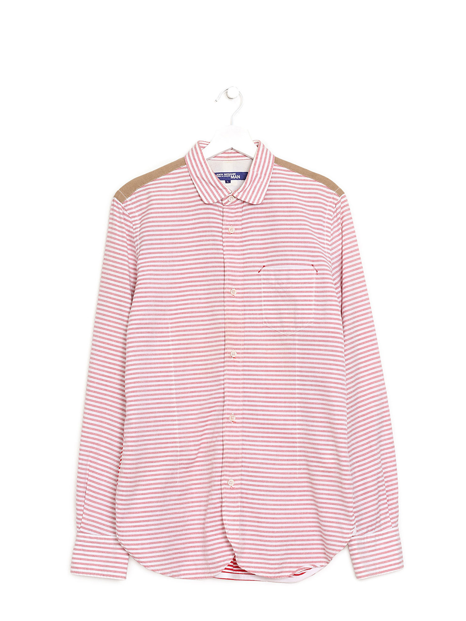 Chemise en coton rayée rouge et blanche. Fermeture à boutons au devant. Col chemise classique.