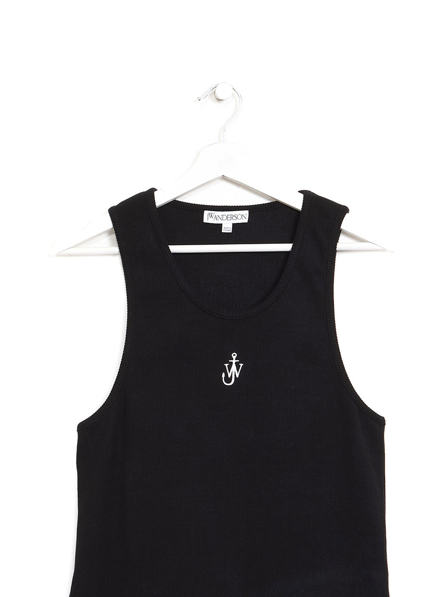 Débardeur en tricot côtelé noir avec broderie à logo.