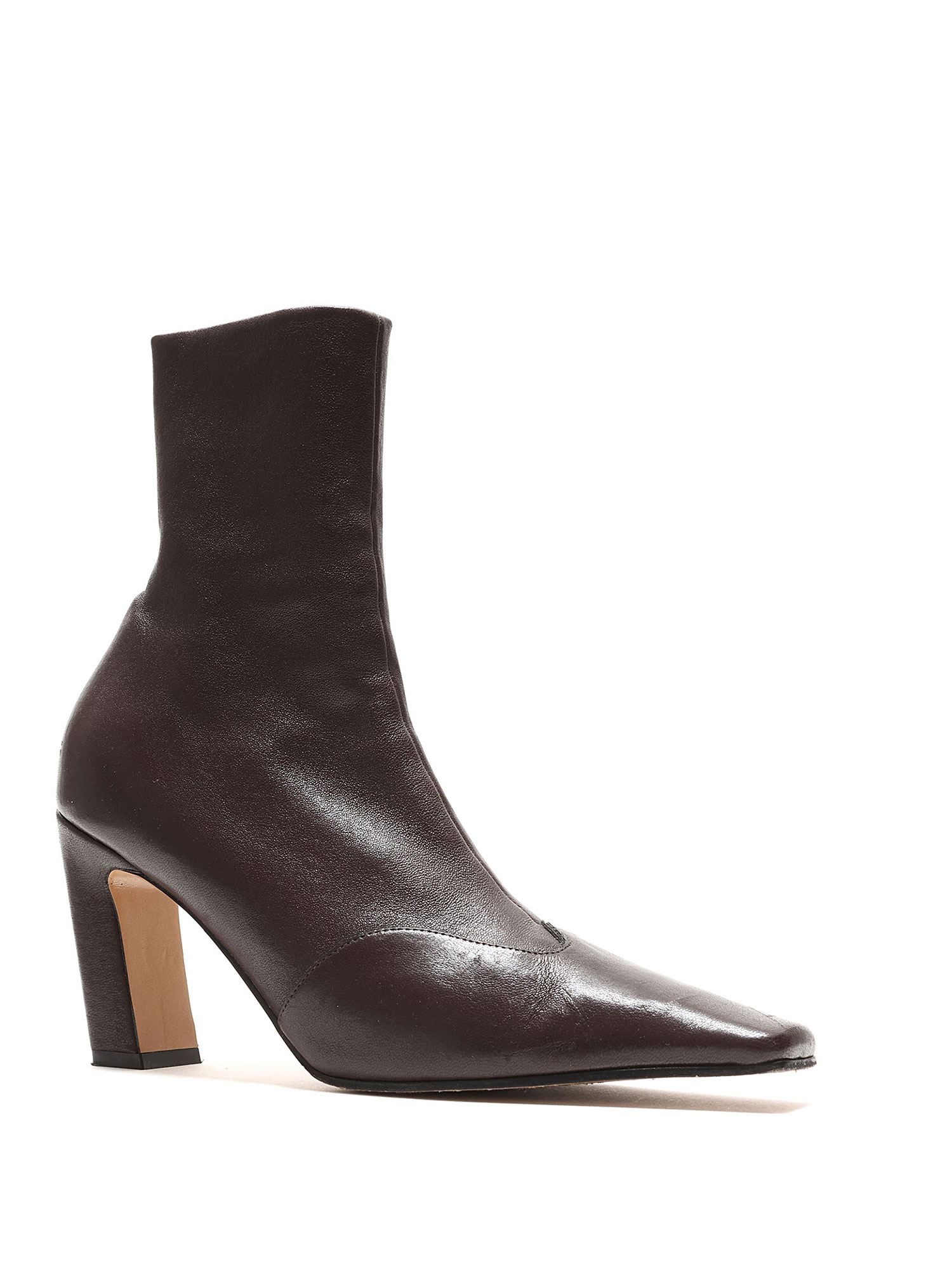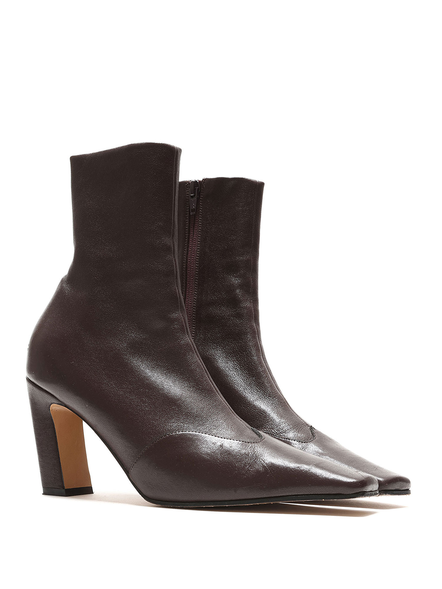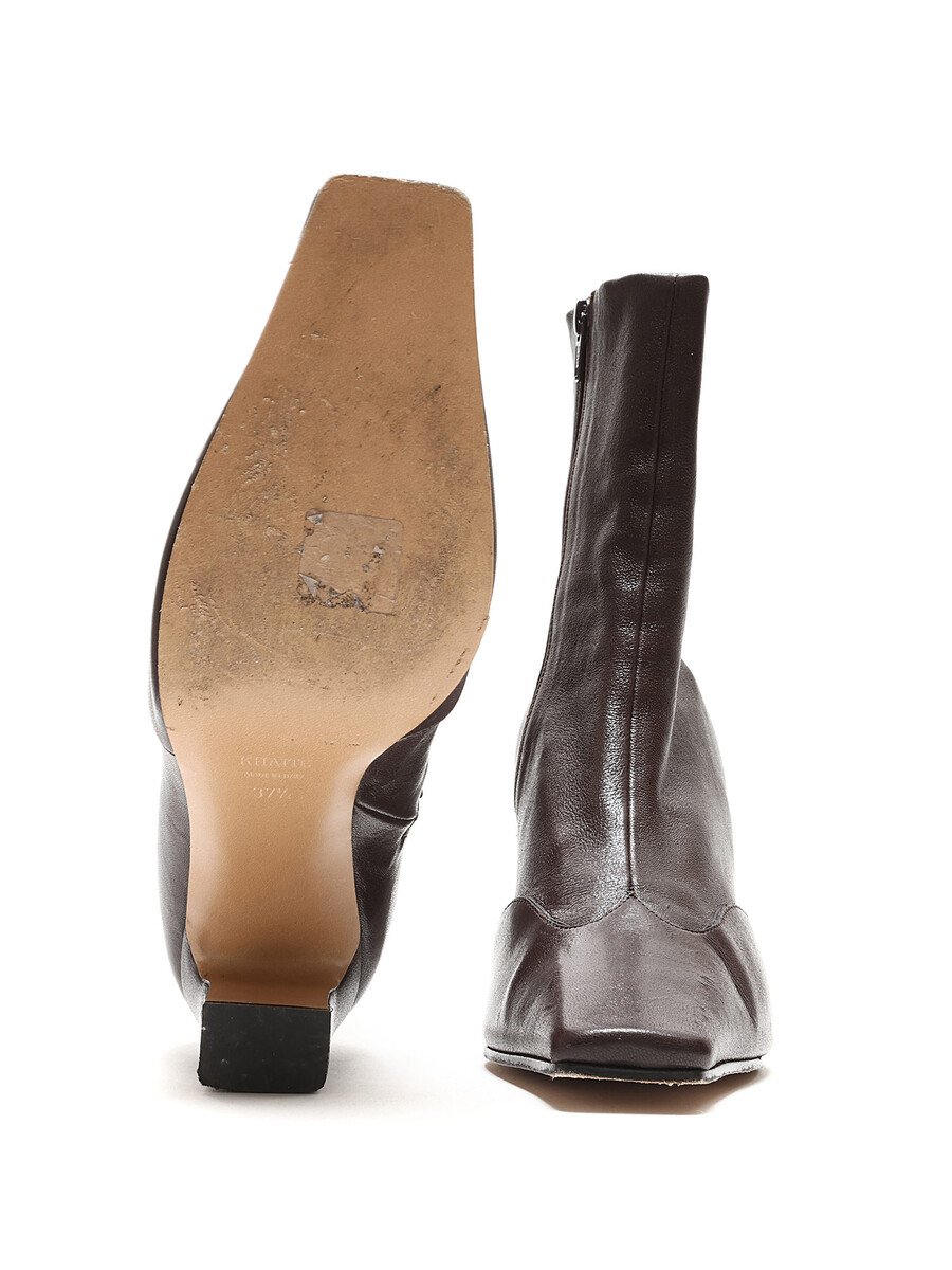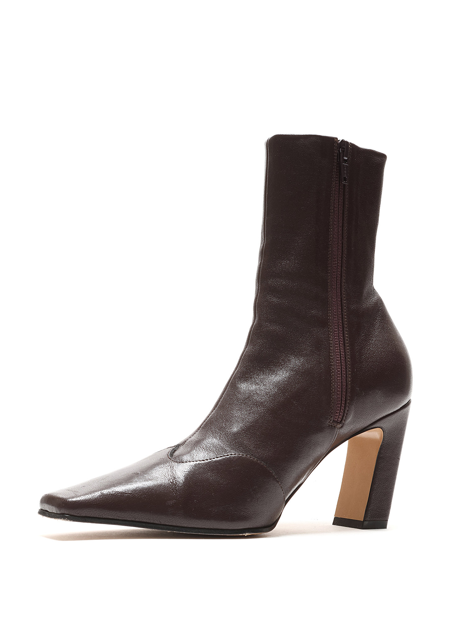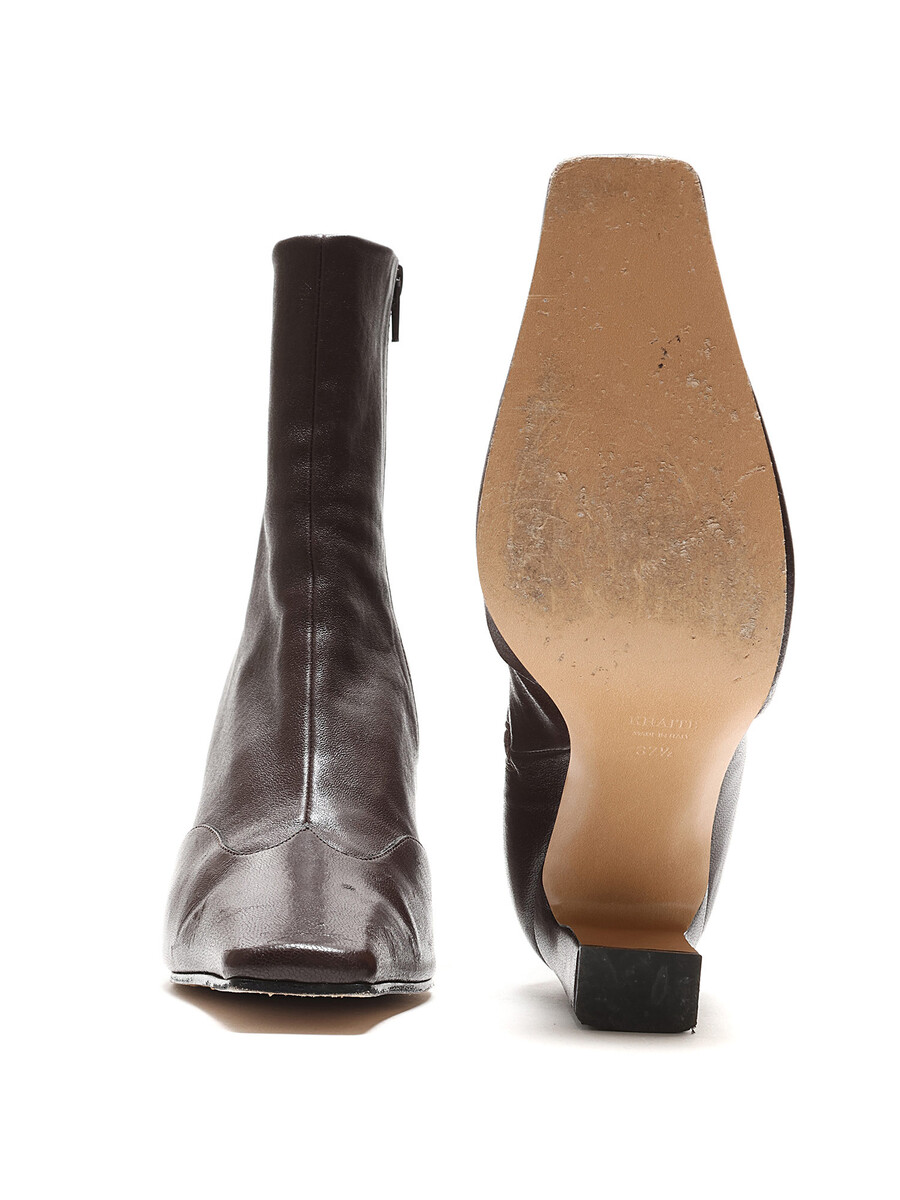 Bottes en cuir marron à bout carré. Fermeture à glissière latérale. Semelle en cuir.