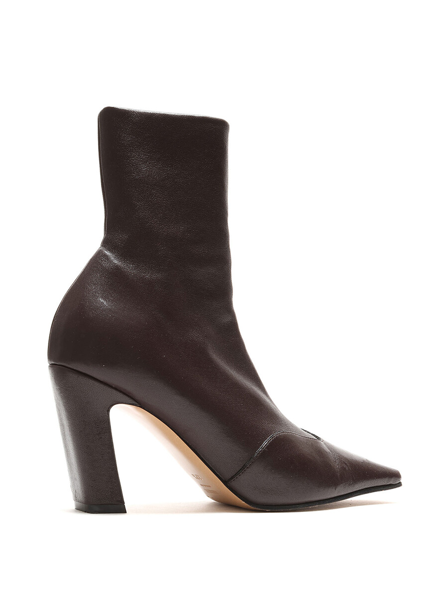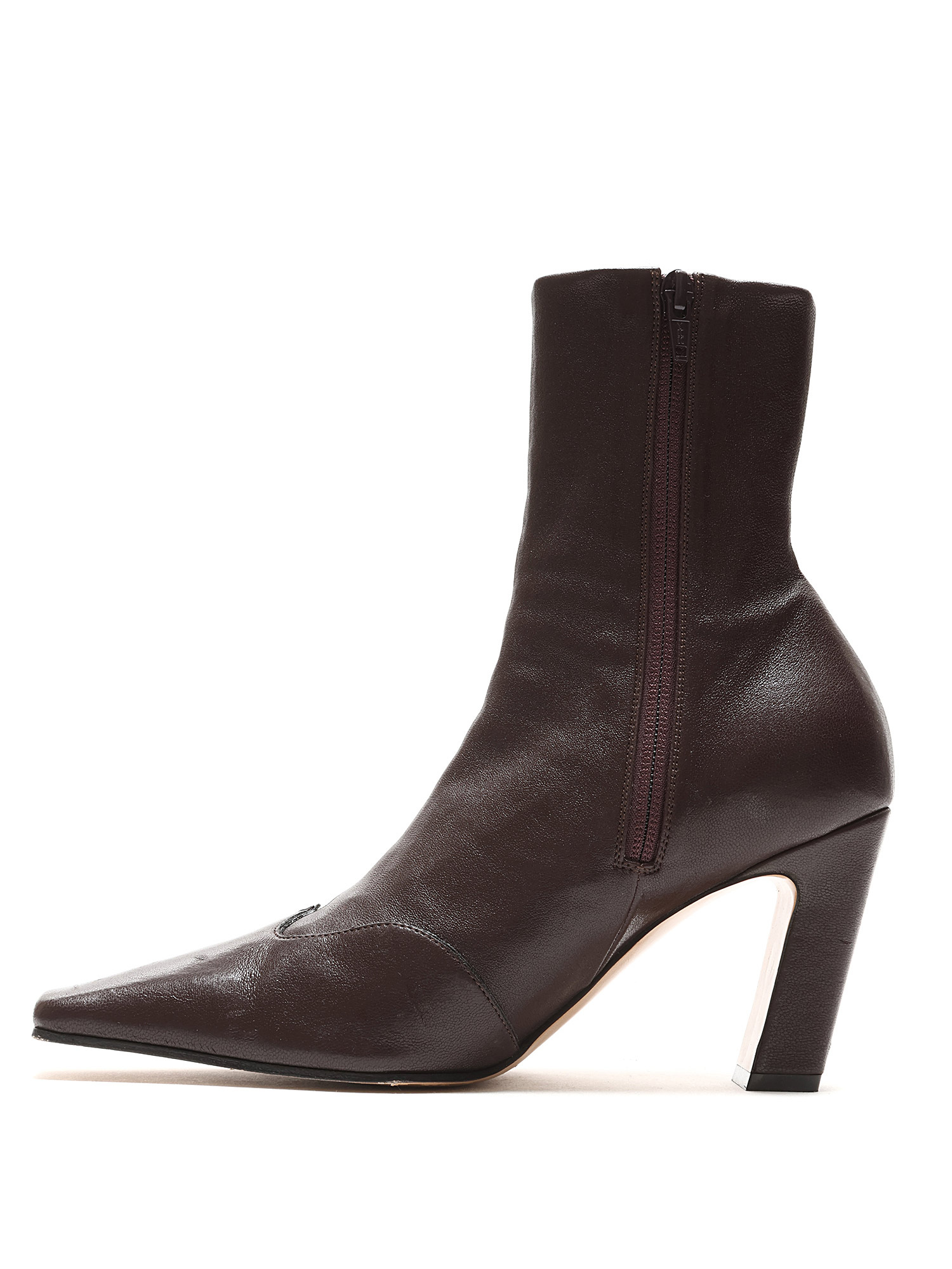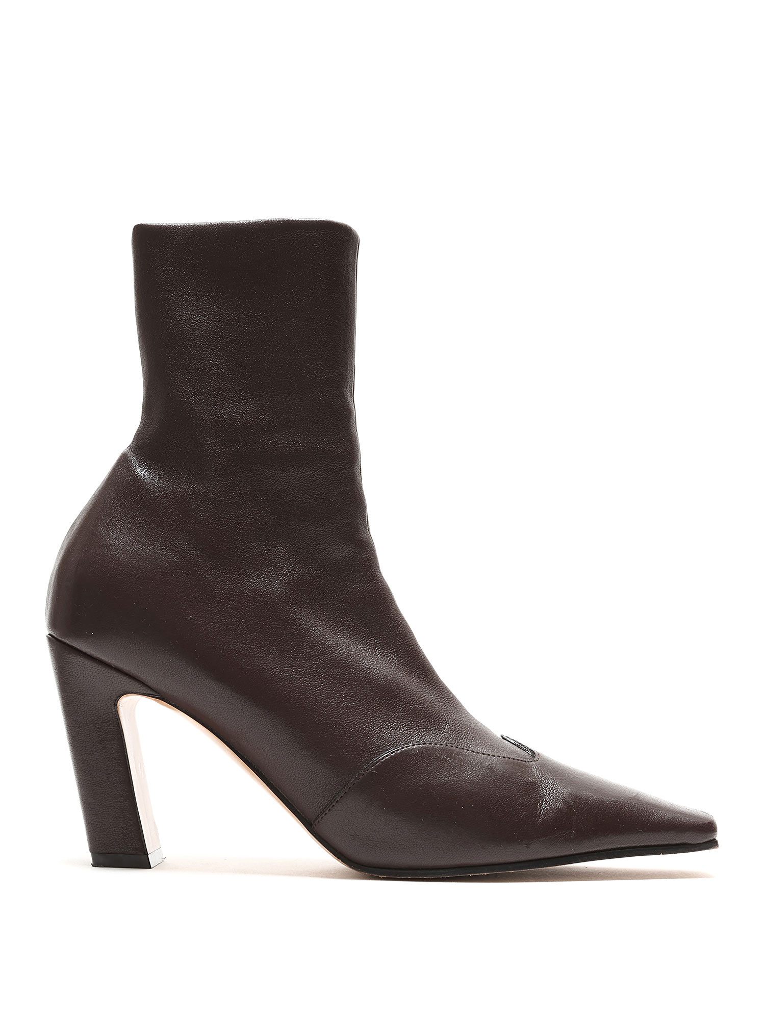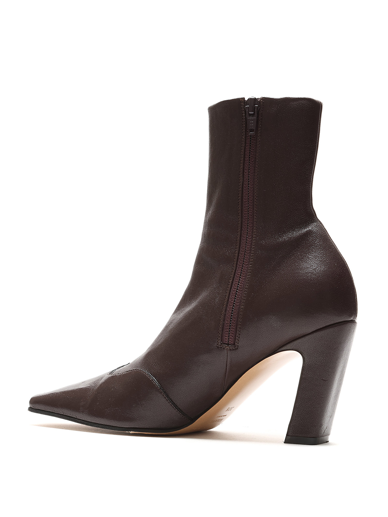 Bottes en cuir marron à bout carré. Fermeture à glissière latérale. Semelle en cuir.