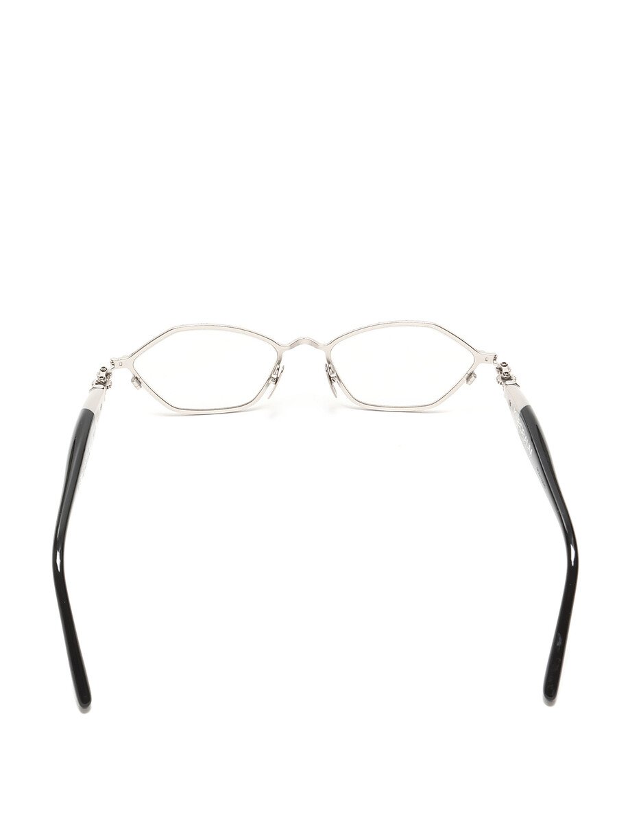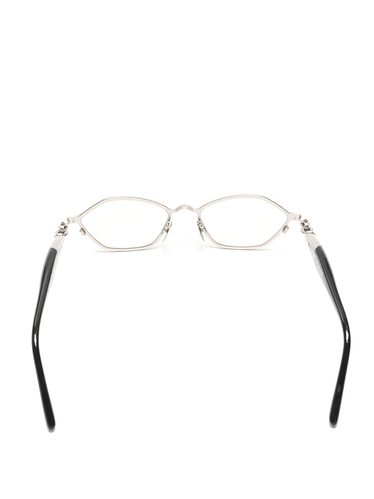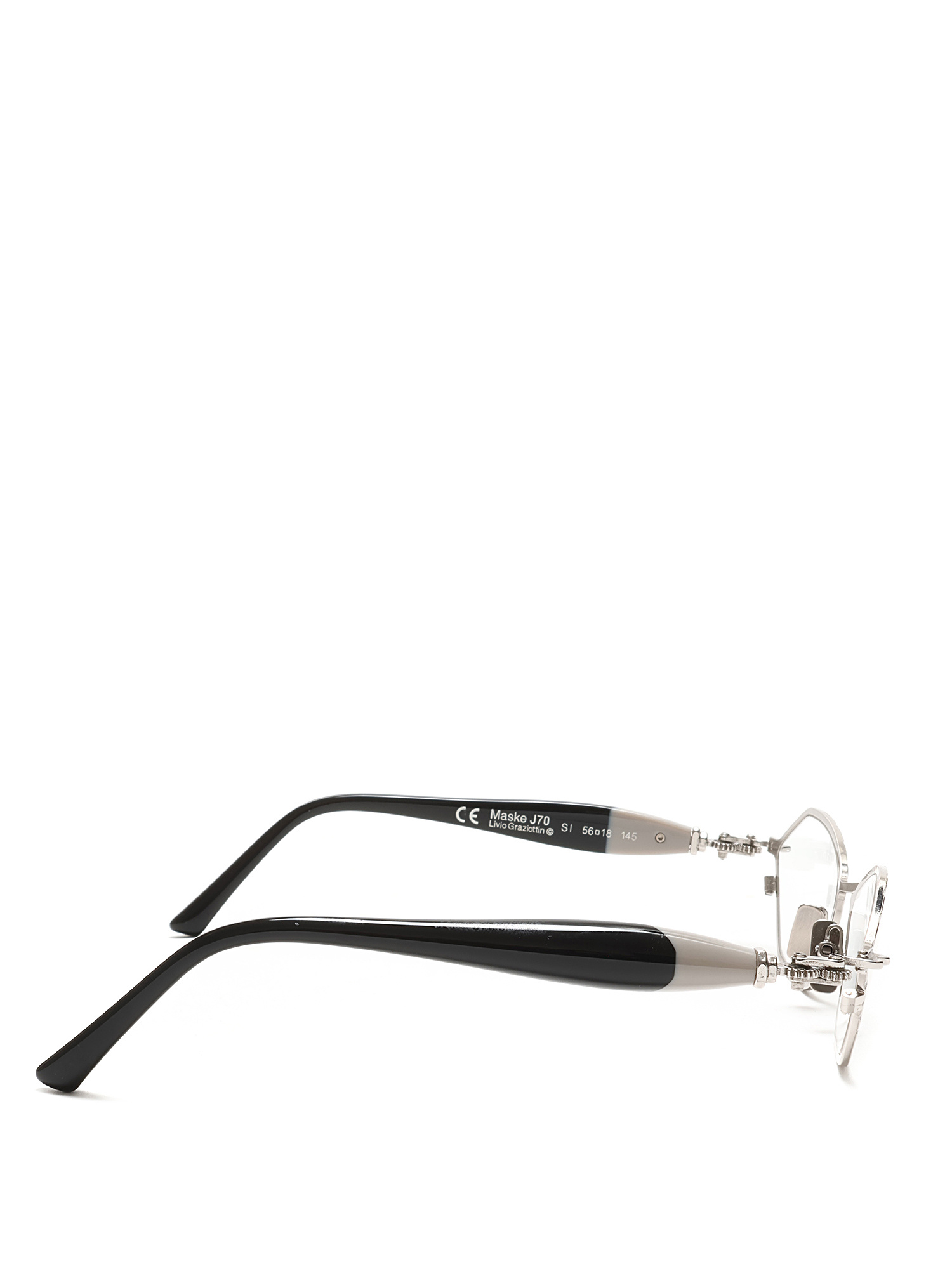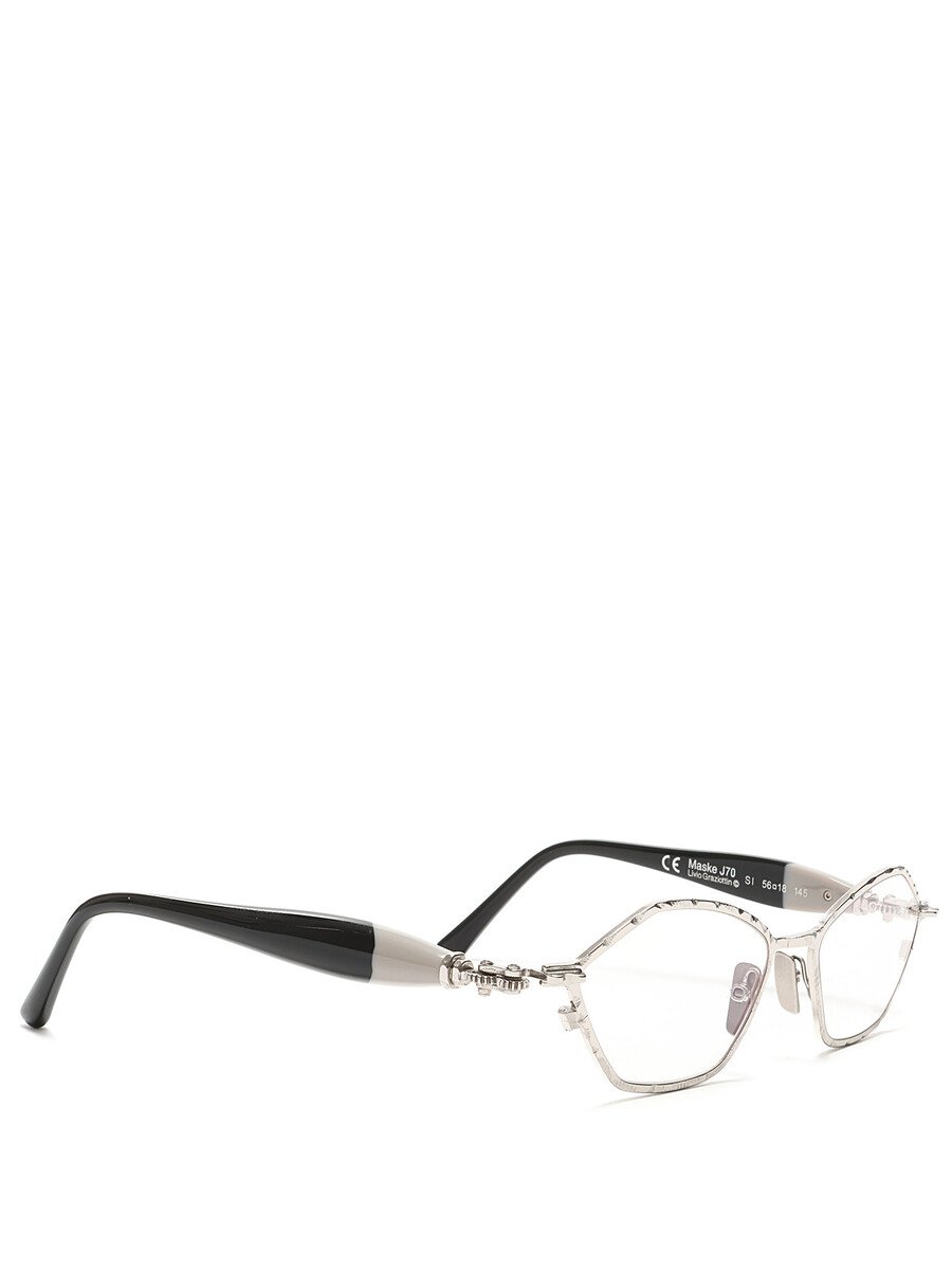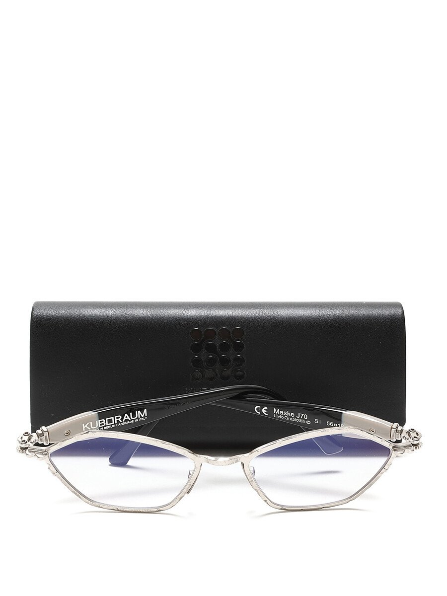 Lunettes de soleil en acétate et métal avec ferrures personnalisées. Détails en métal argenté.