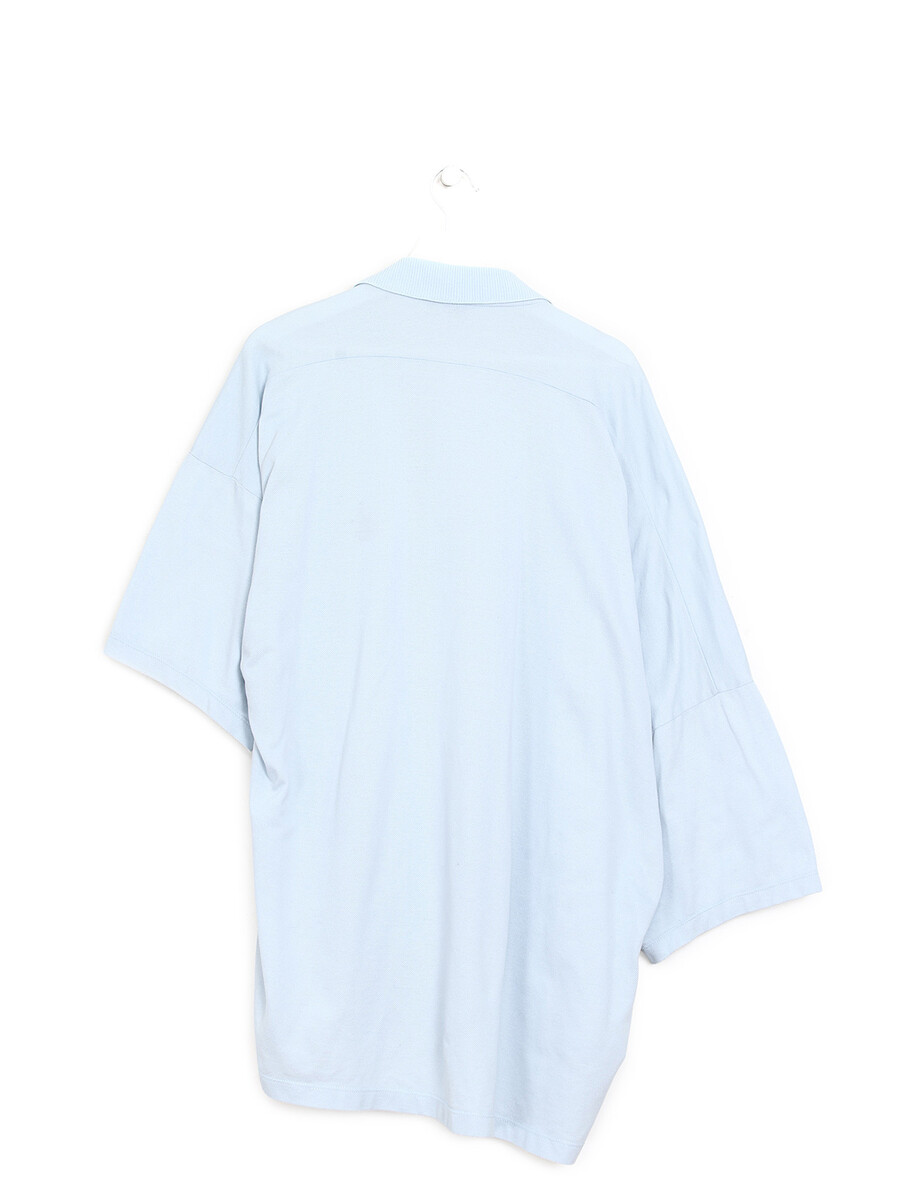 Polo à manches courtes asymétriques en bleu. Col classique. Patte de boutonnage à deux boutons.