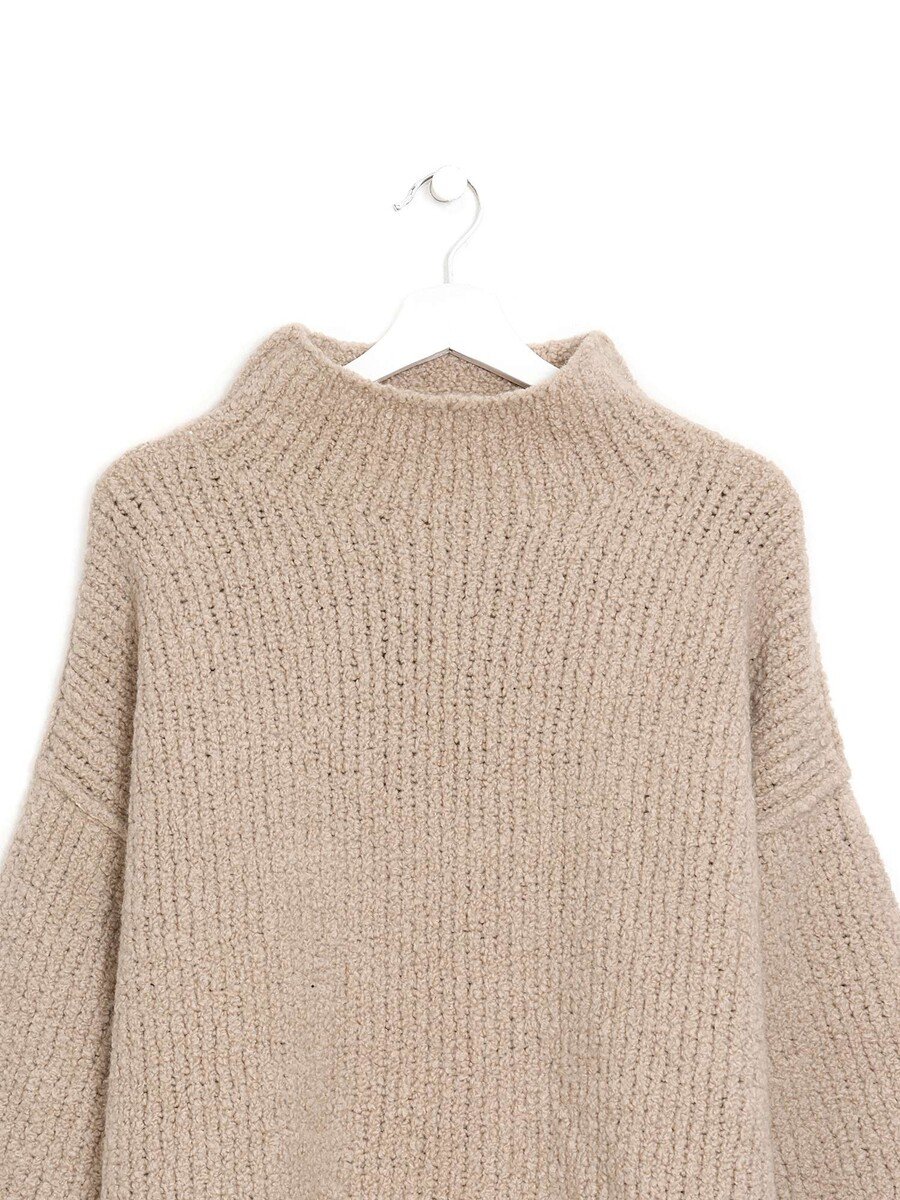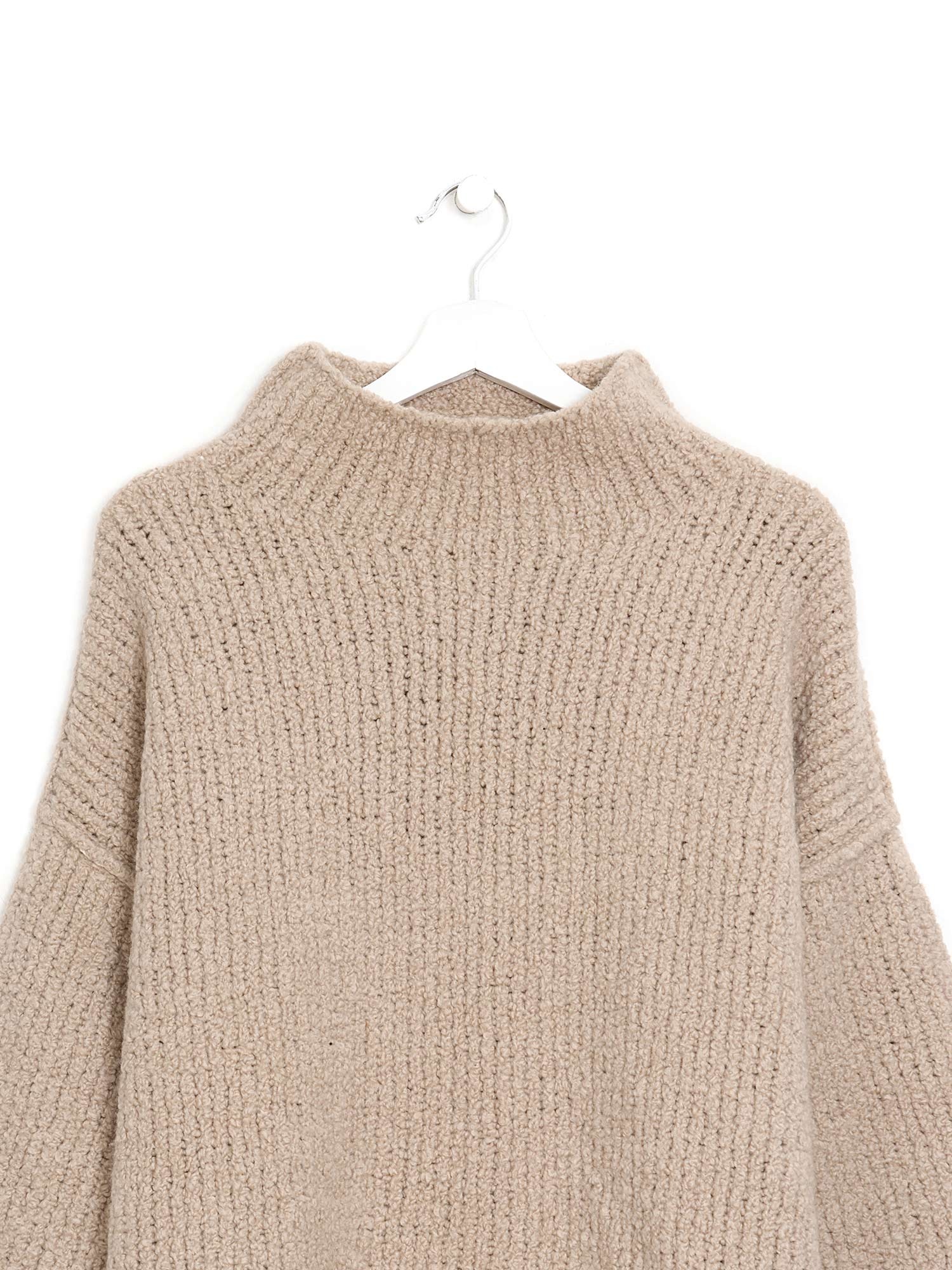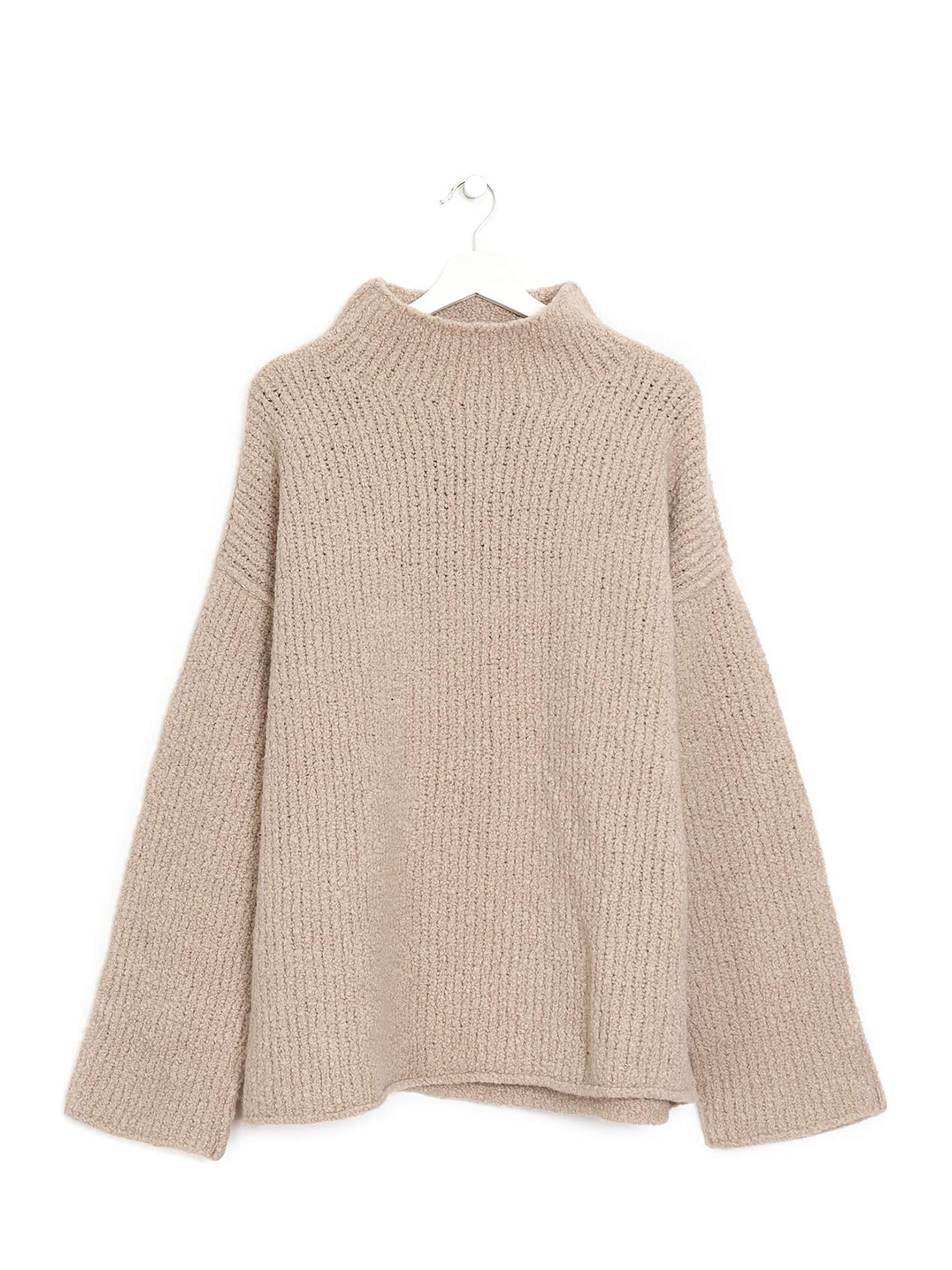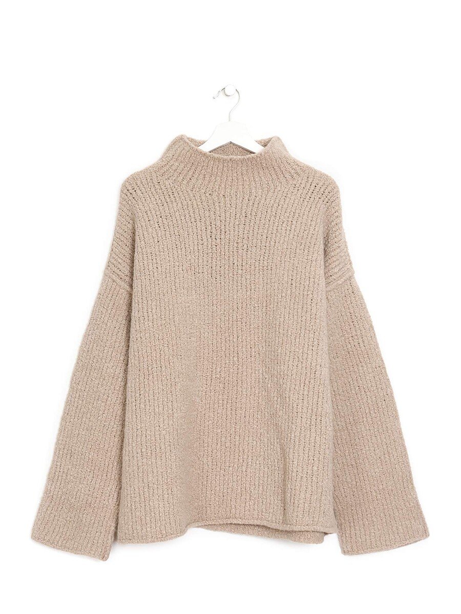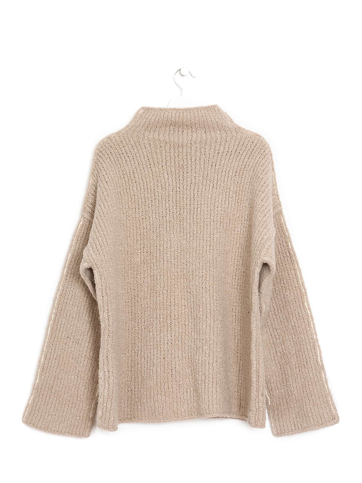 Chandail à manches longues avec col montant en beige. Coupe décontractée.
