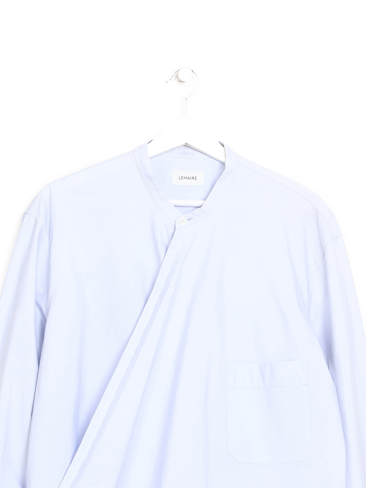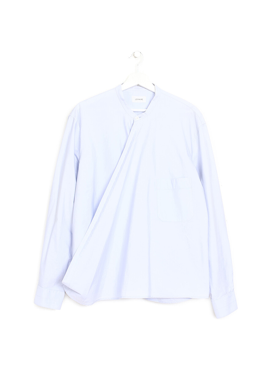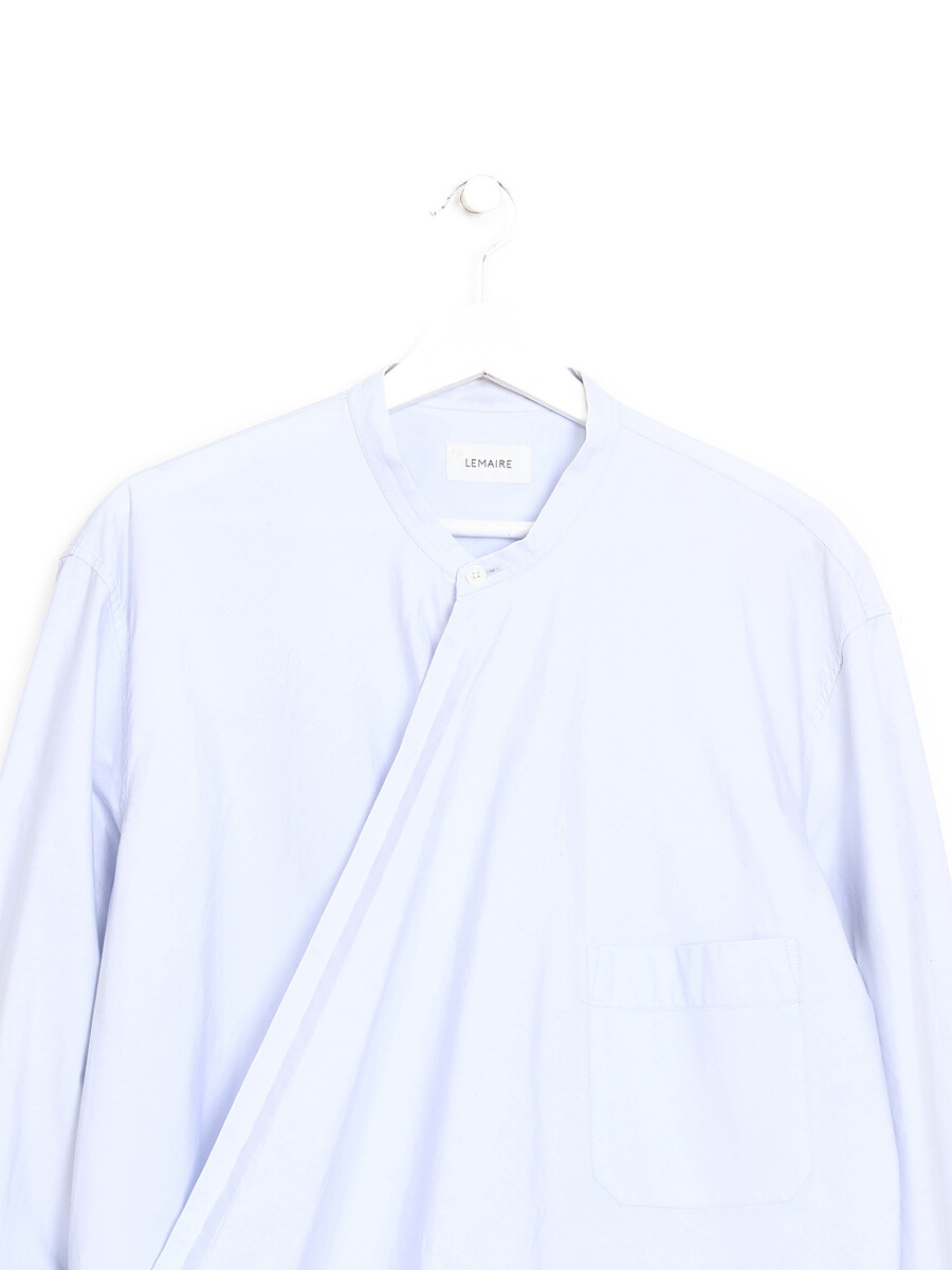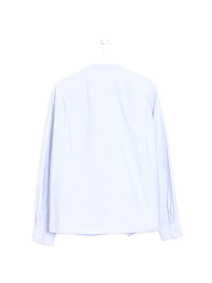 Chemise à manches longues en coton bleu. Fermeture à un bouton au devant.