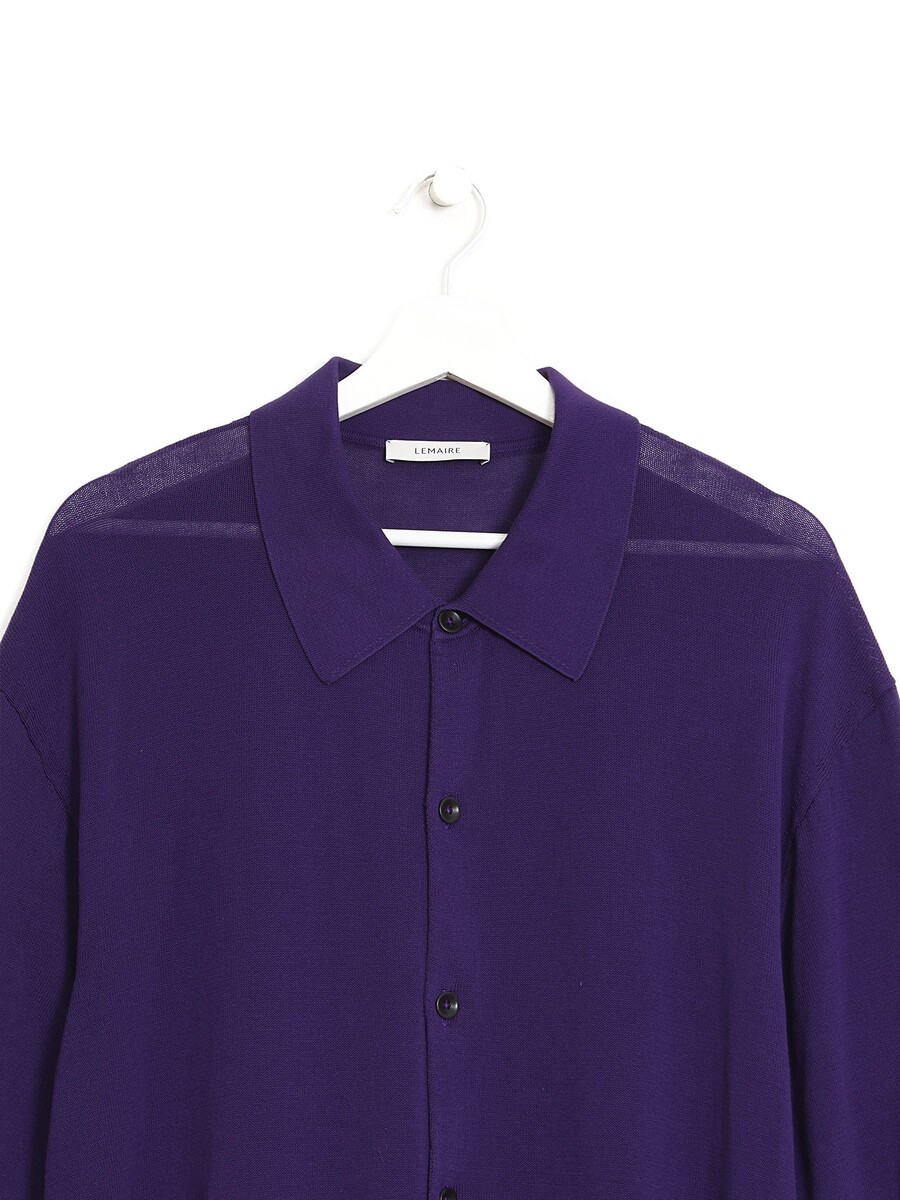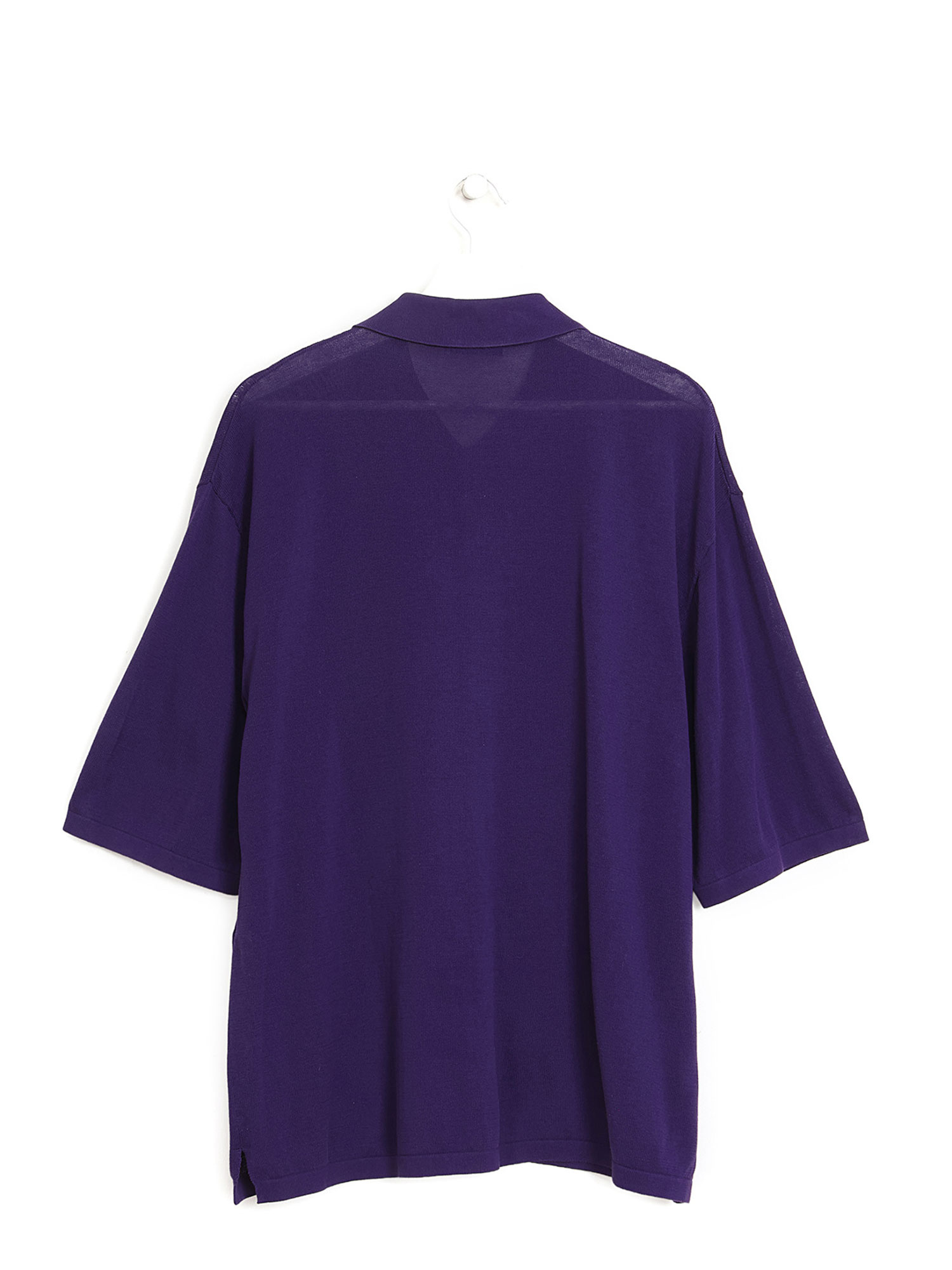 Polo à manches courtes en coton mauve. Boutonnière sur le devant.
