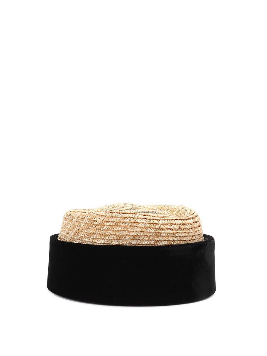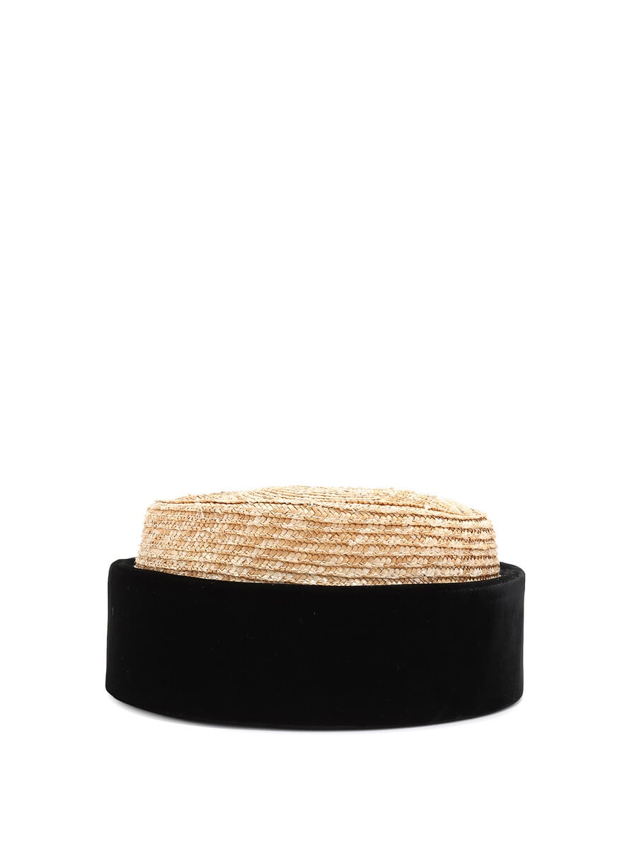 Chapeau pillbox chic combinant paille et velours noir.