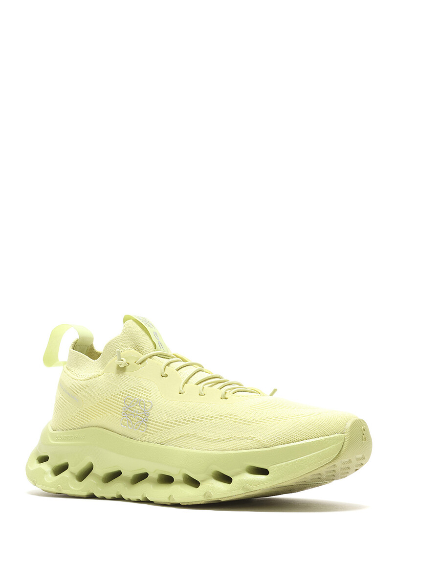 Baskets athlétiques en vert clair avec détails de logo. Fermeture à lacets. Bout rond. Semelle en caoutchouc. Languette à l'arrière. Avec sac anti-poussière.