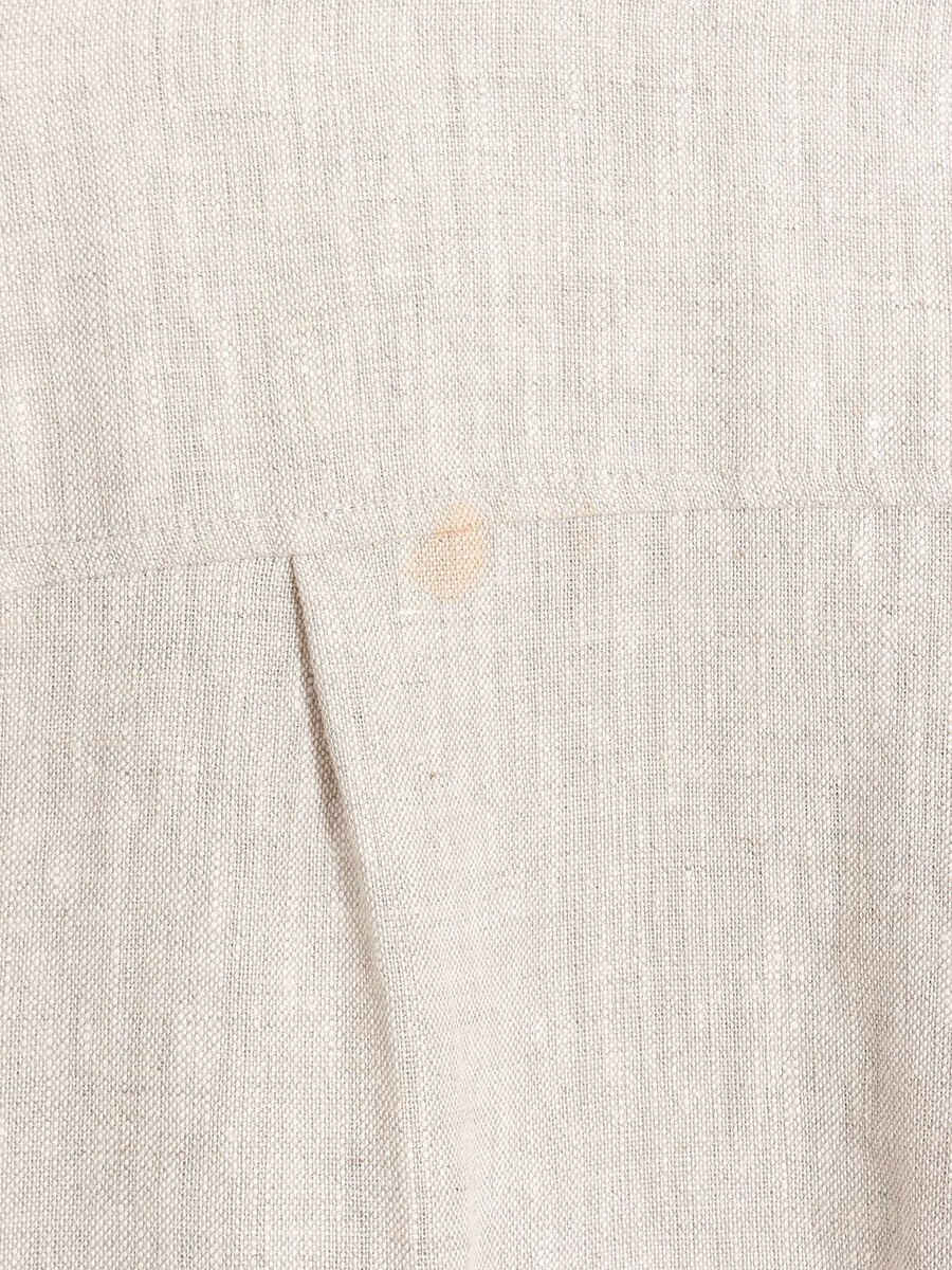 Veste chemise à manches longues en lin beige. Fermeture à boutons sur le devant et aux poignets. Col chemise. Poches à rabat à l'avant.