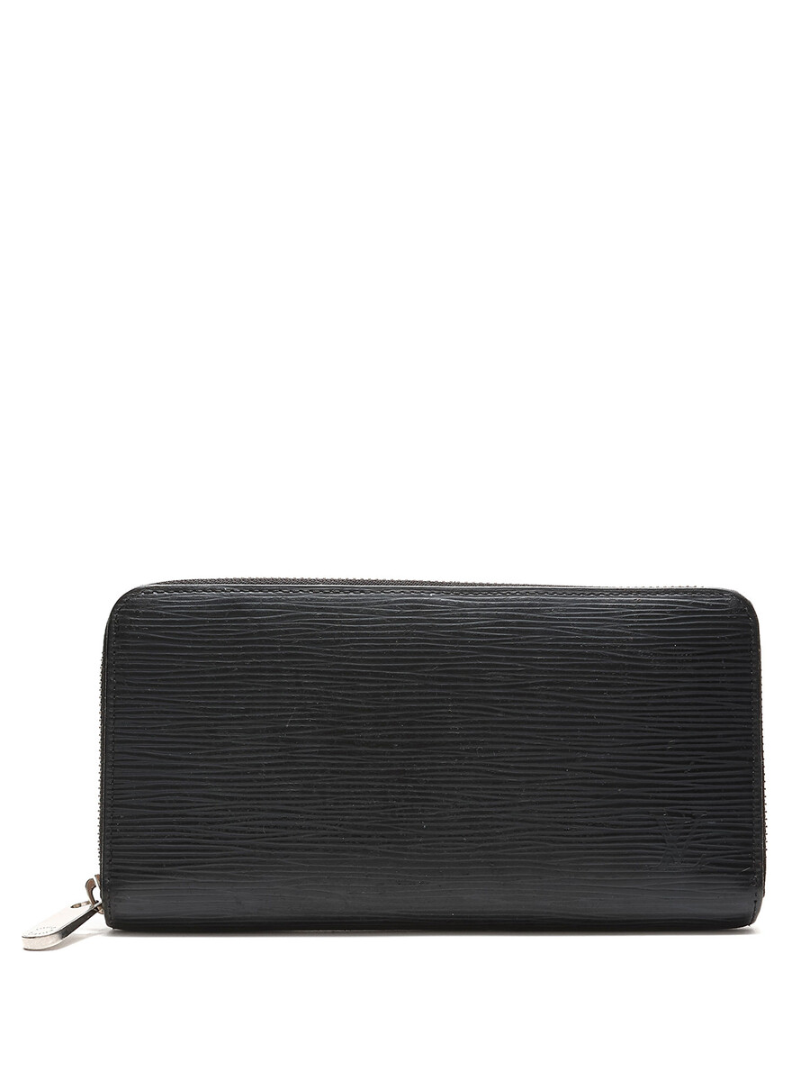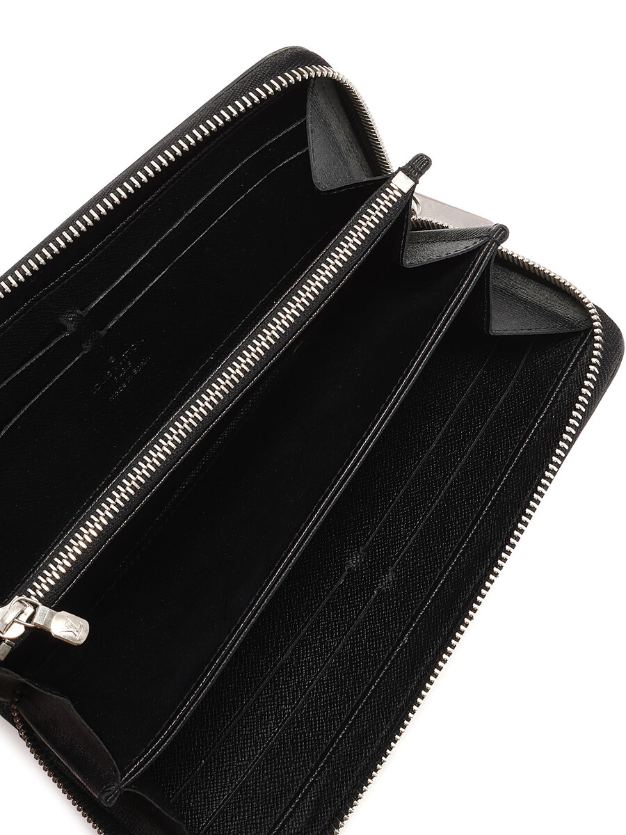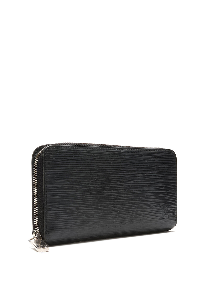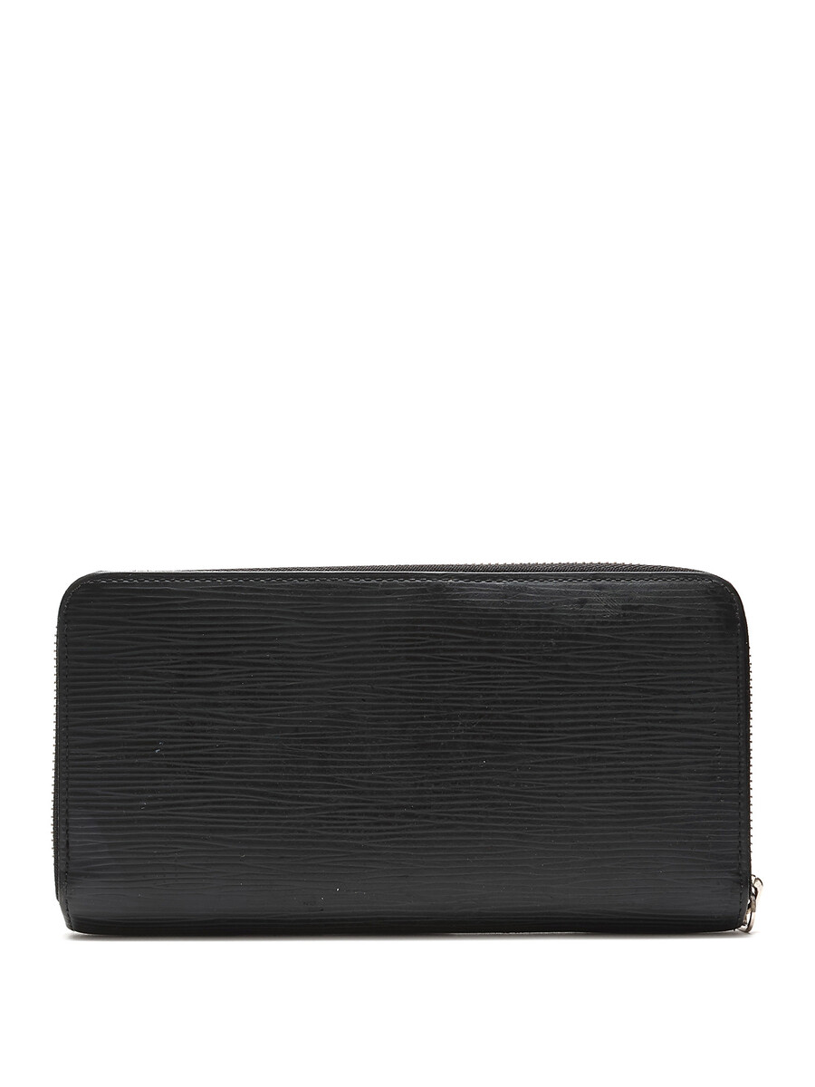 Portefeuille continental en cuir Epi noir. Quincaillerie argentée. Logo en relief sur la surface. Coutures ton sur ton. Fermeture à glissière.