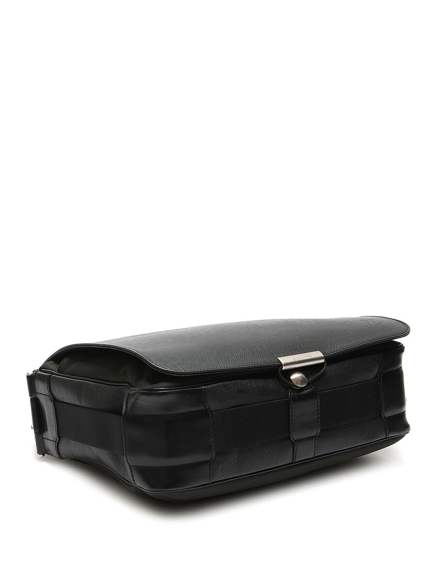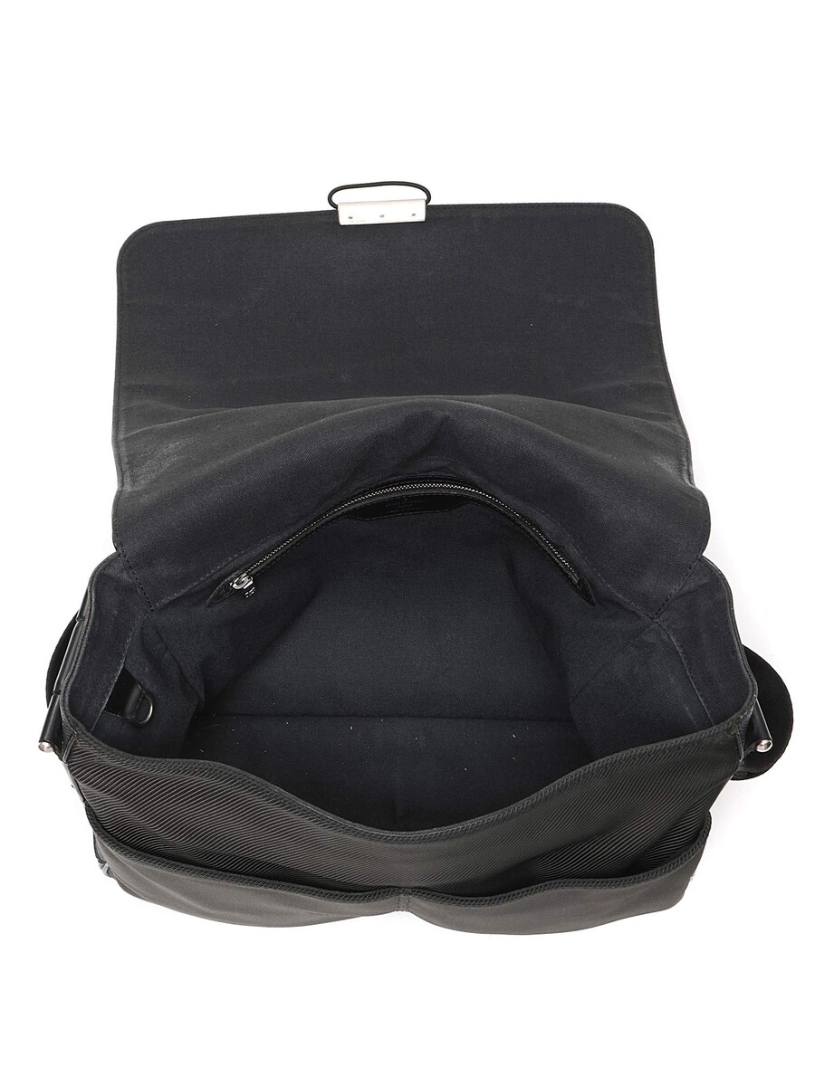Sac messager en toile texturée noir. Ferrures argentées avec fermeture à glissière et fermoir métallique. Bandoulière en tissu ajustable. Livré avec un sac de protection.