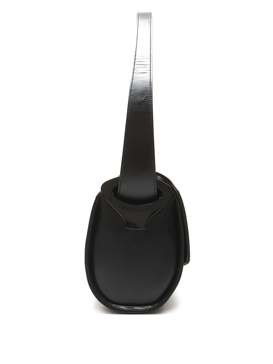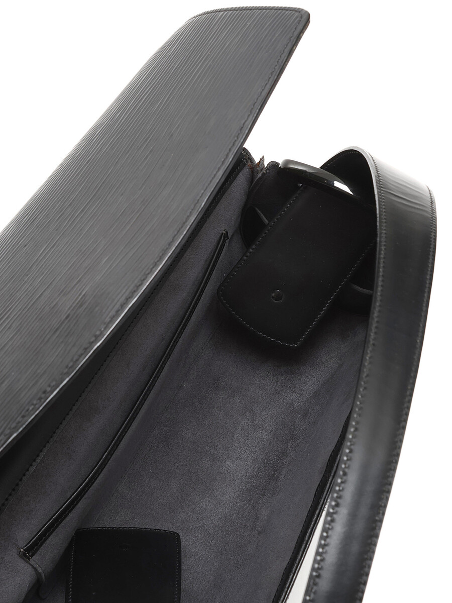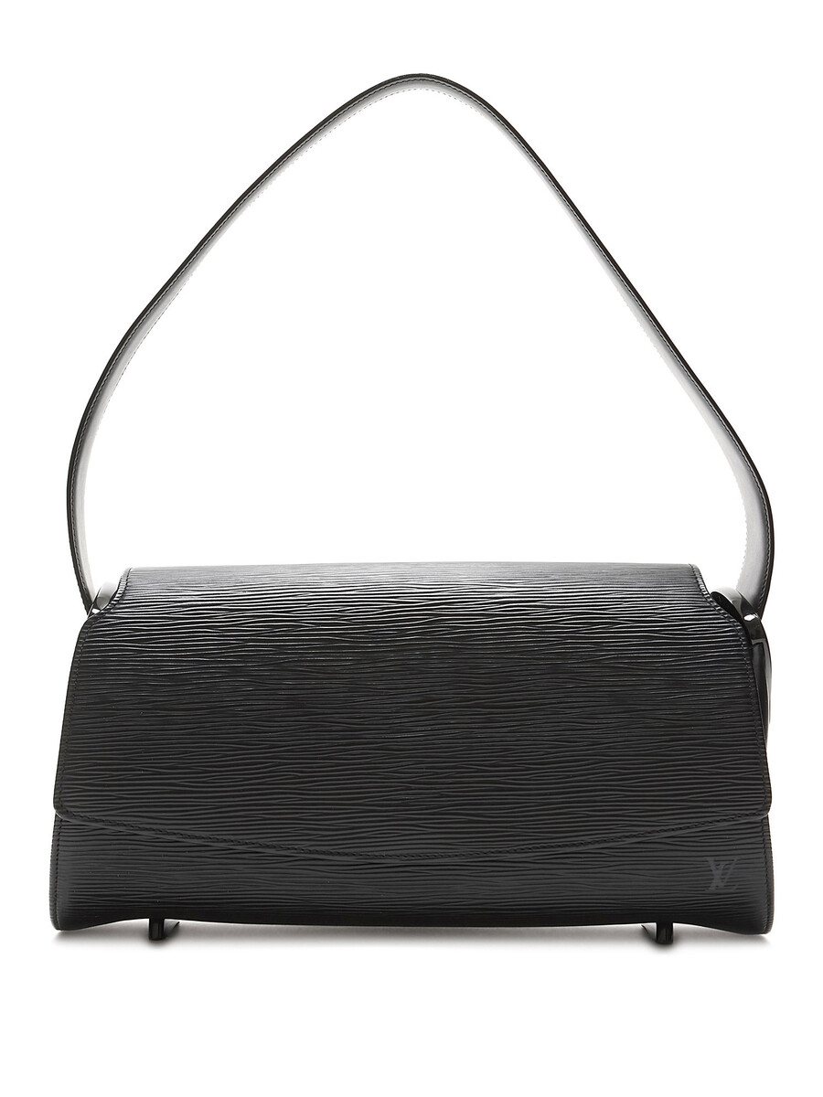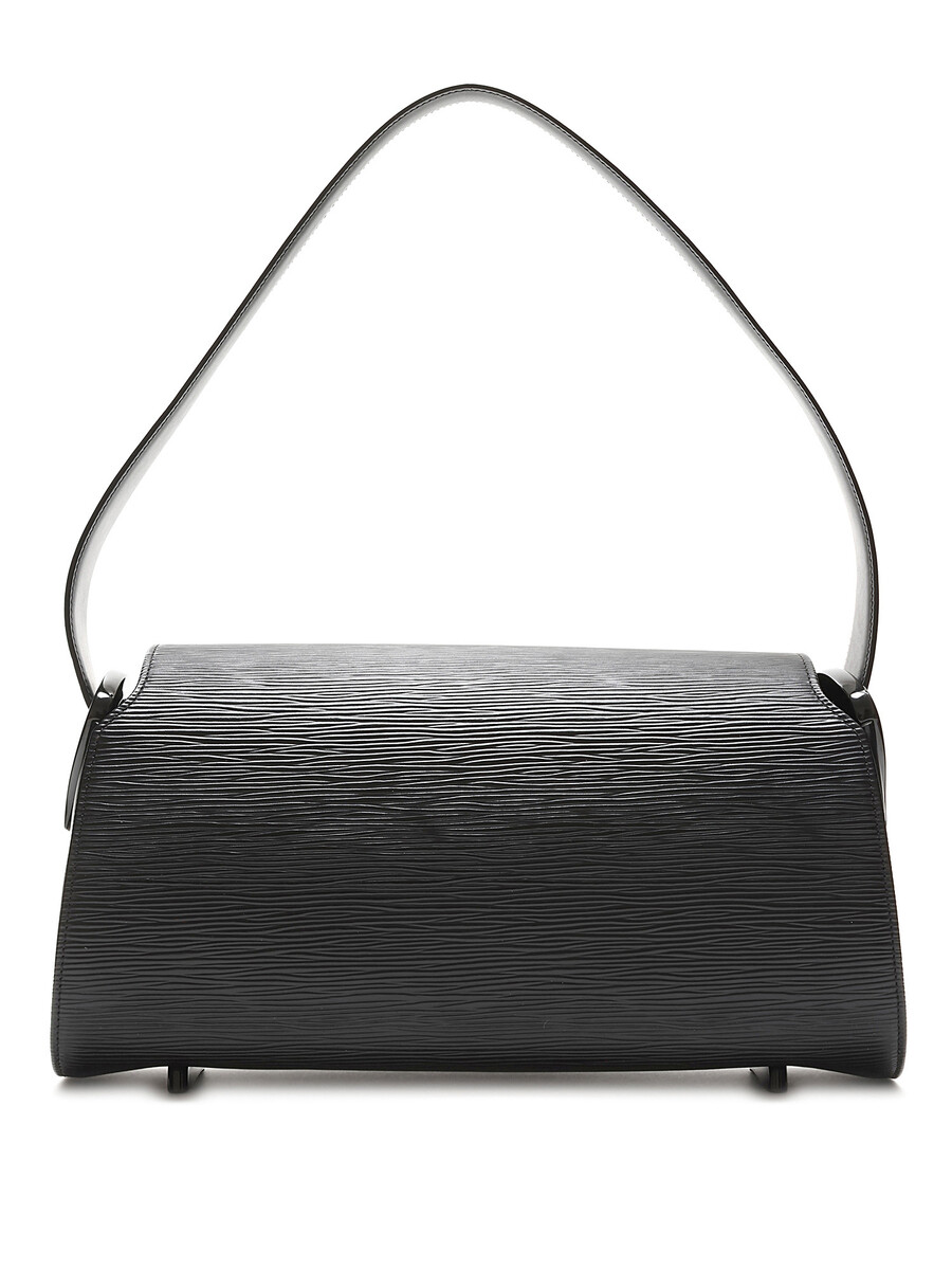 Sac à épaule structuré en cuir Épi, noir. Bandoulière simple en cuir. Quincaillerie dorée.