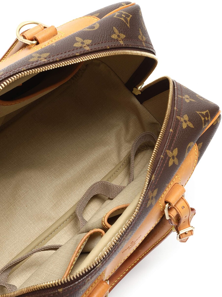 Sac cabas en toile enduite à motif monogramme dans les tons de brun. Fermeture à glissière. Ganses et finitions en cuir. Quincaillerie dorée.