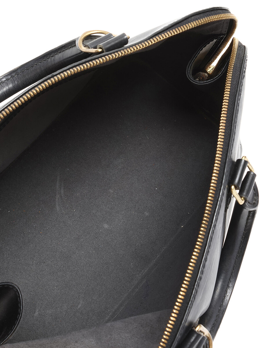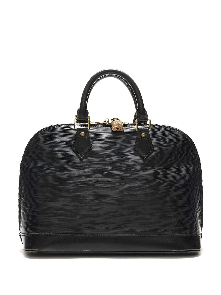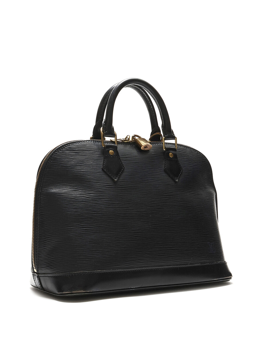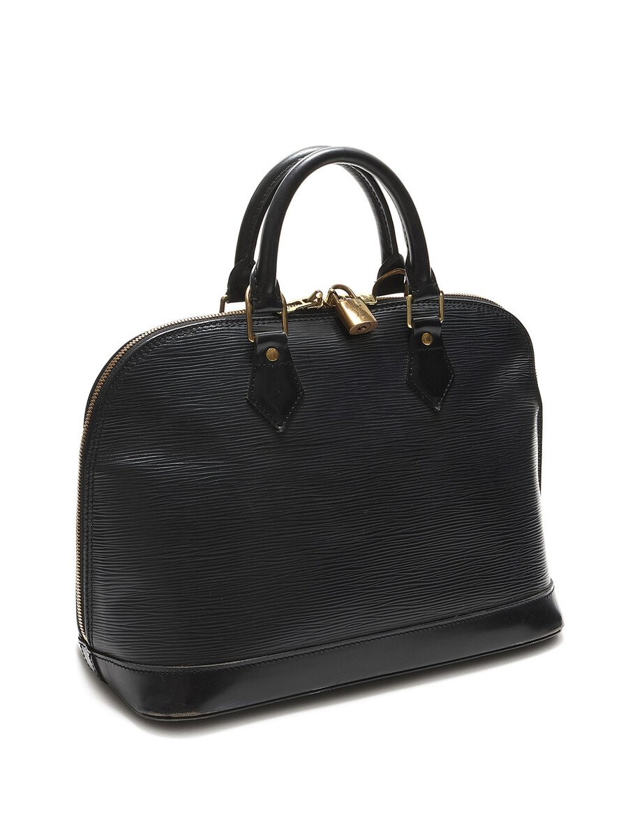 Sac à main en cuir Epi noir avec deux anses et fermeture à glissière. Design structuré et élégant.