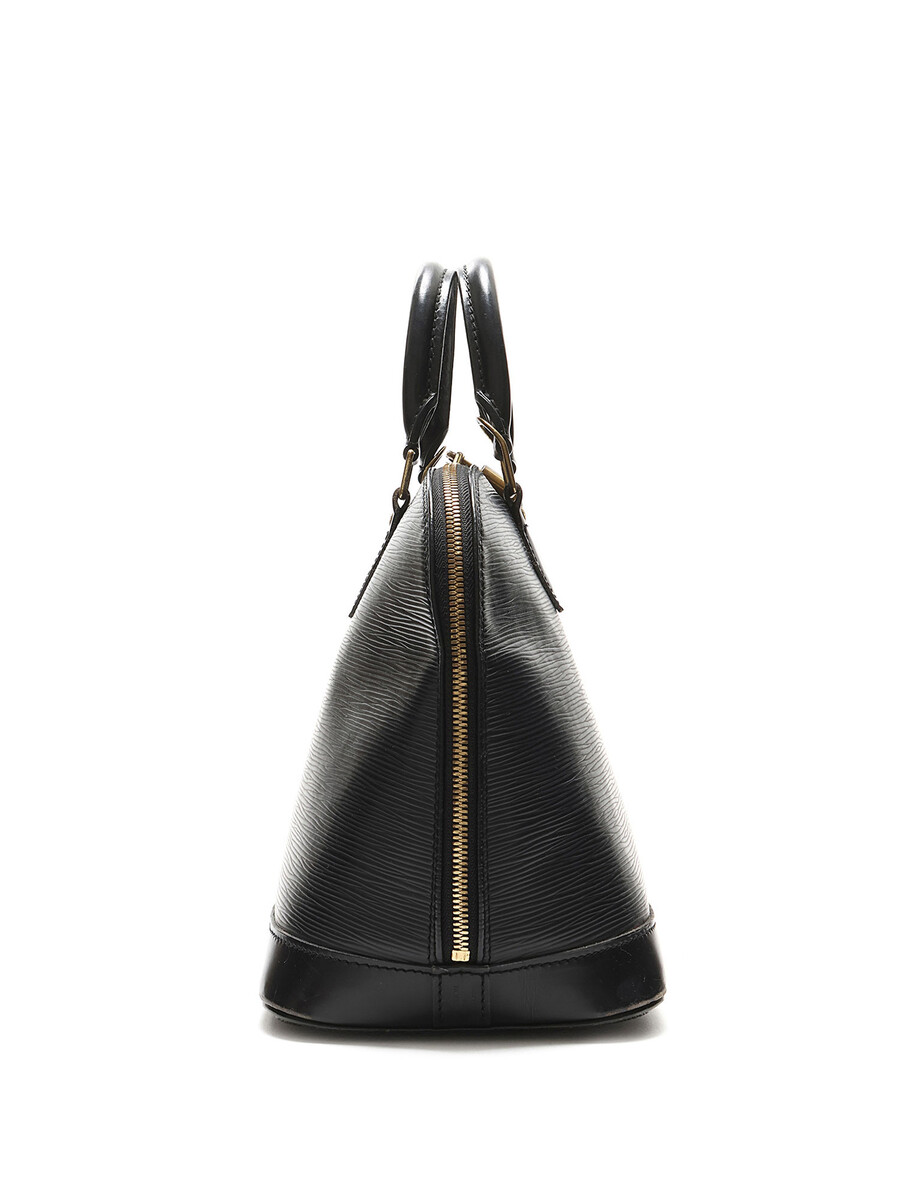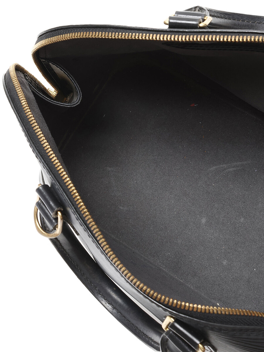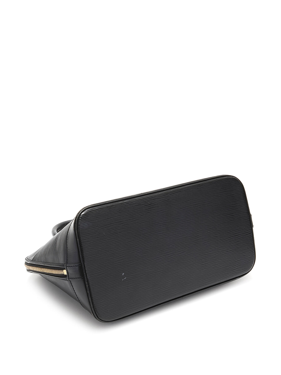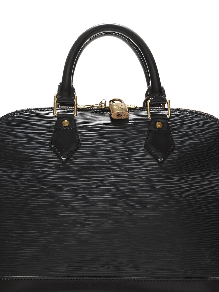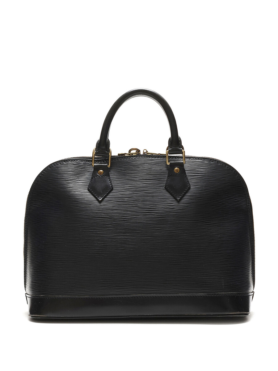 Sac à main en cuir Epi noir avec deux anses et fermeture à glissière. Design structuré et élégant.