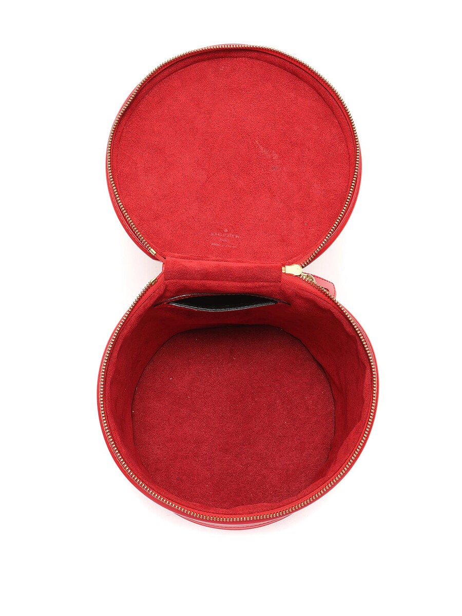Sac sceau en cuir épi rouge avec poignée supérieure et quincaillerie dorée. Fermeture à glissière périphérique sécurisée.