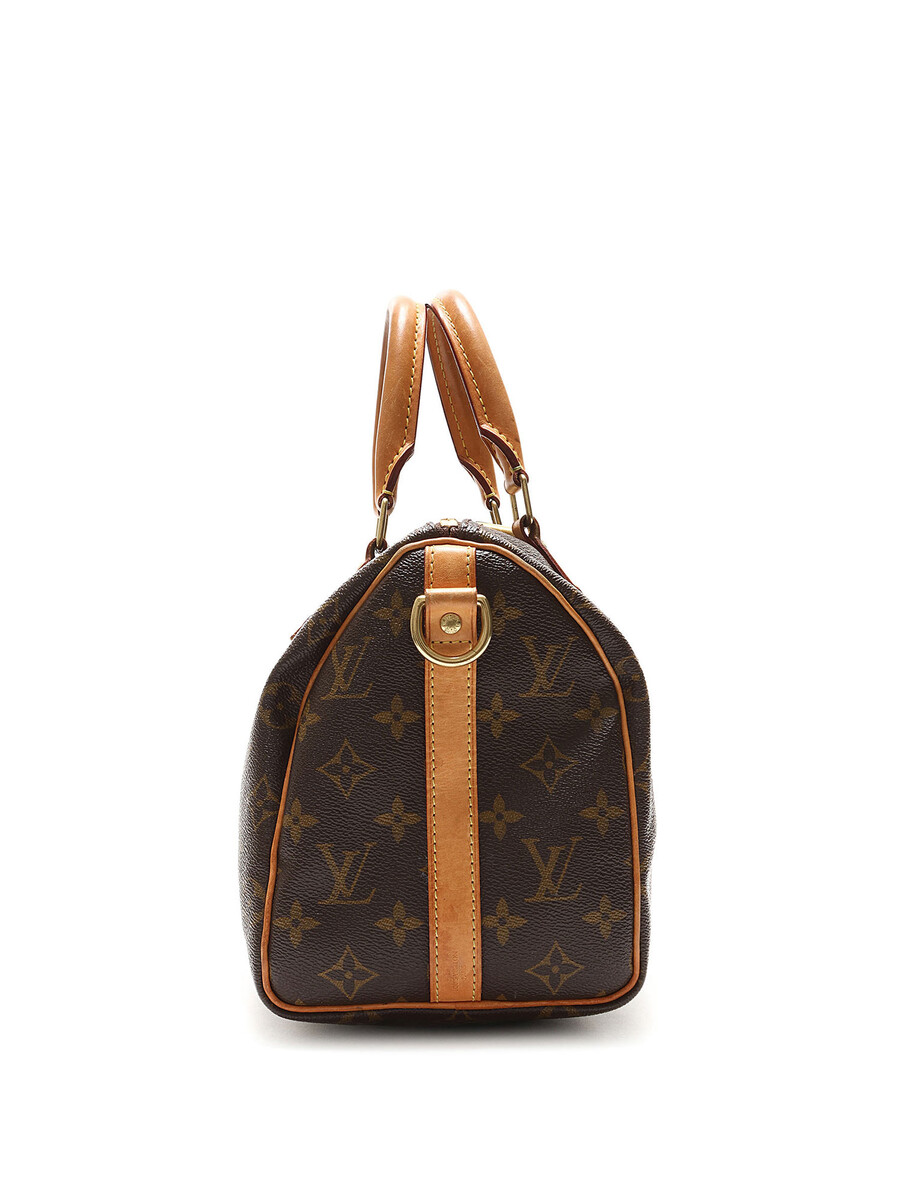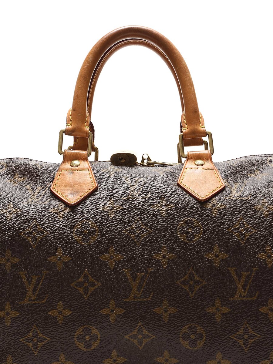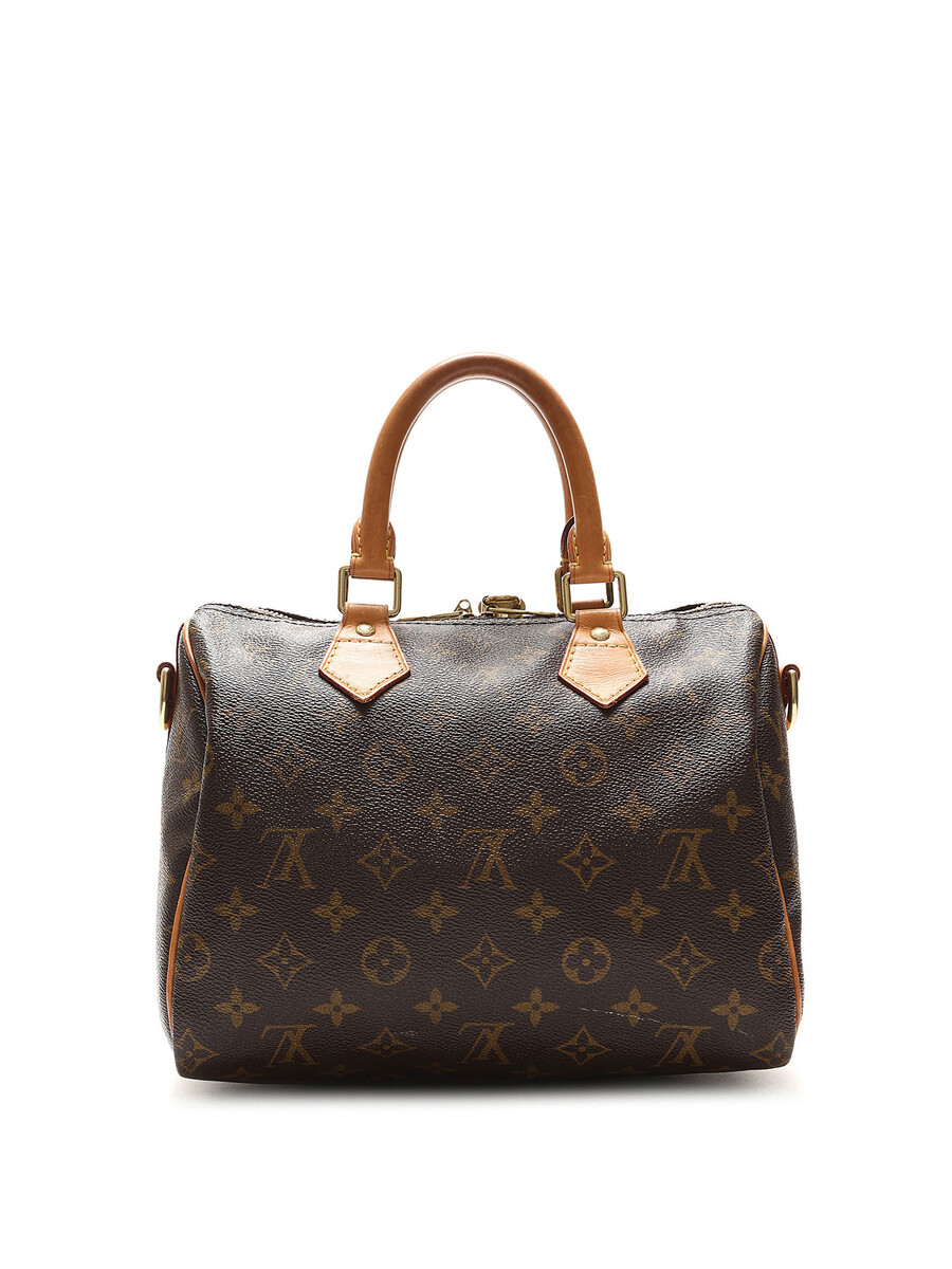 Sac à main en toile enduite avec motif monogramme emblématique. Brun avec détails beige. Poignées en cuir roulé. Fermeture à glissière. Quincaillerie en laiton.