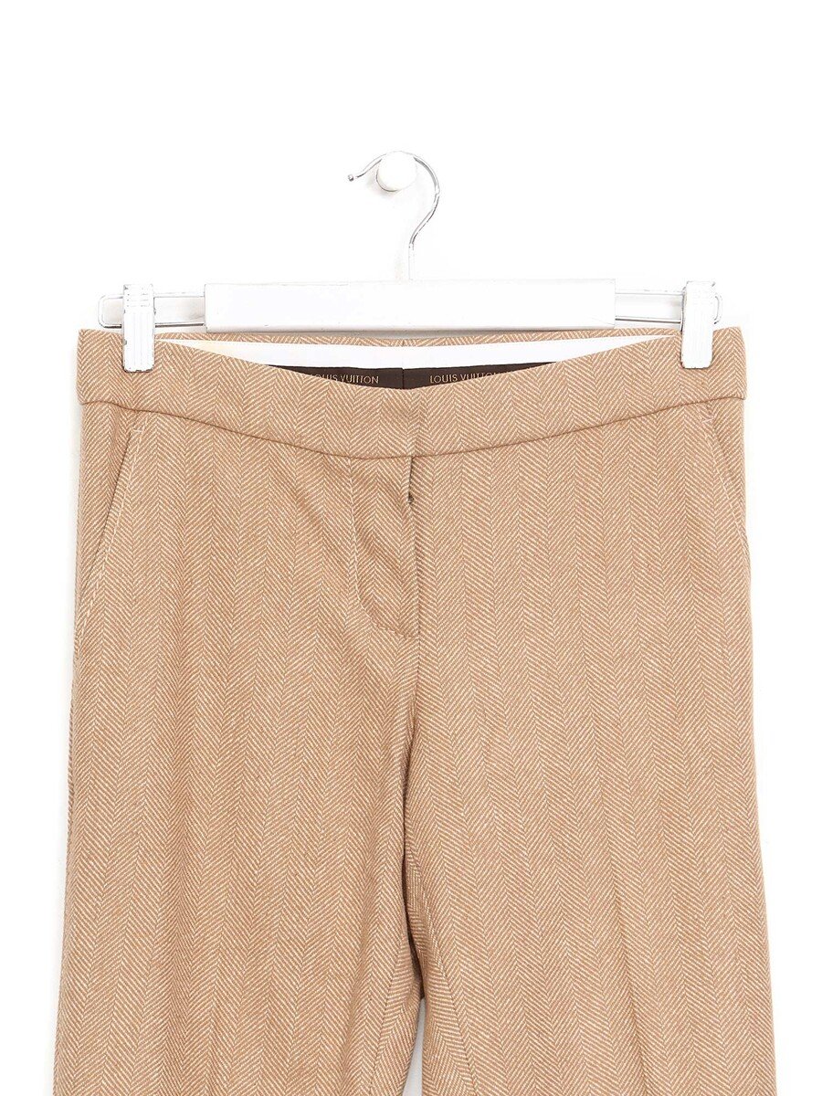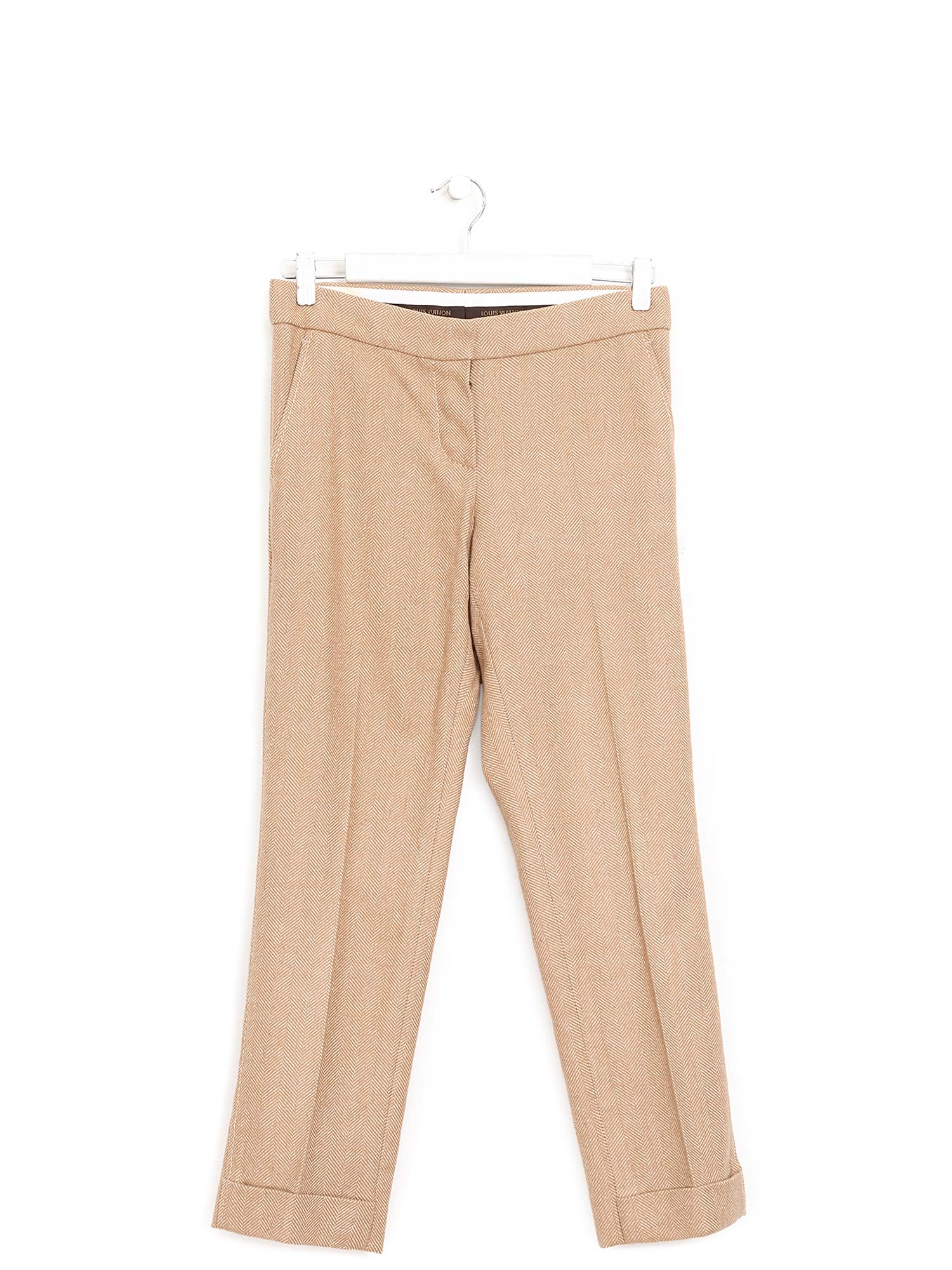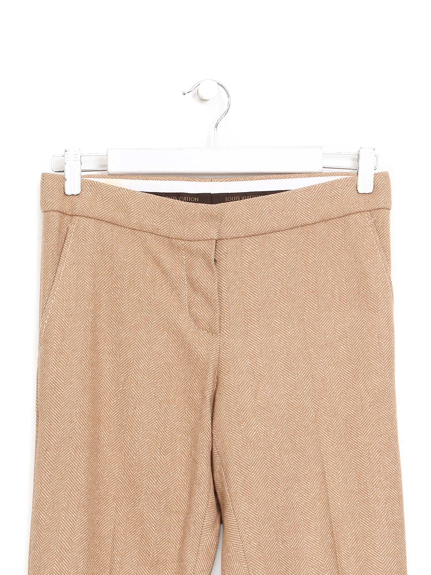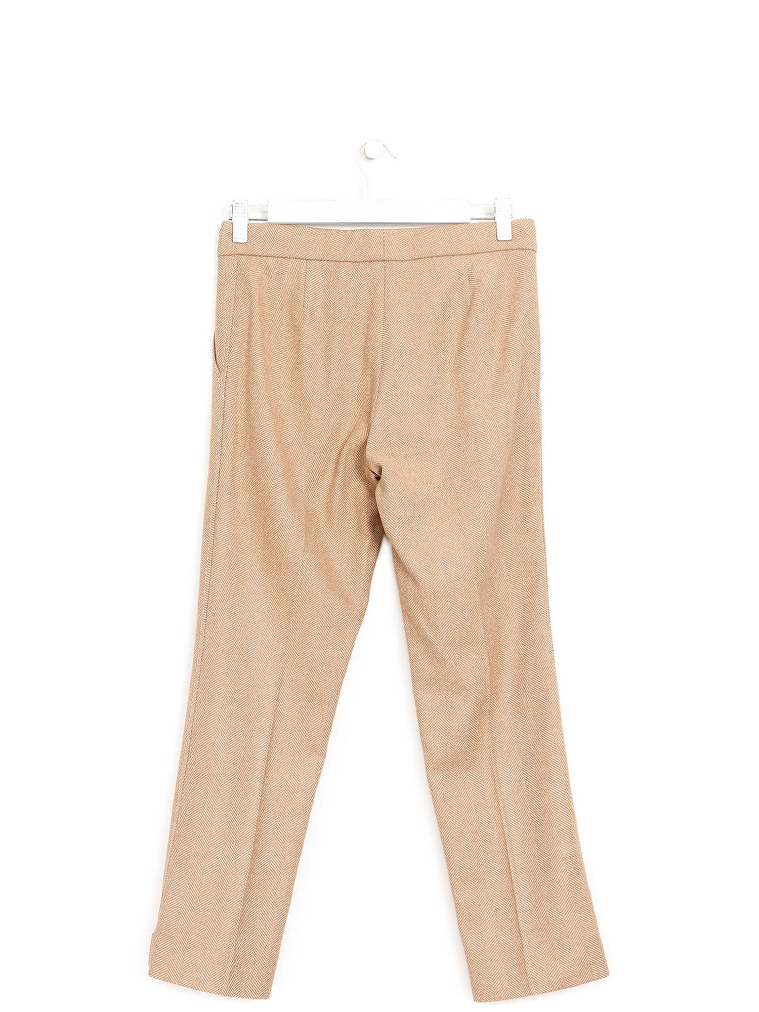 Pantalon en laine longueur cheville avec motif chevrons en beige. Fermeture à glissière.