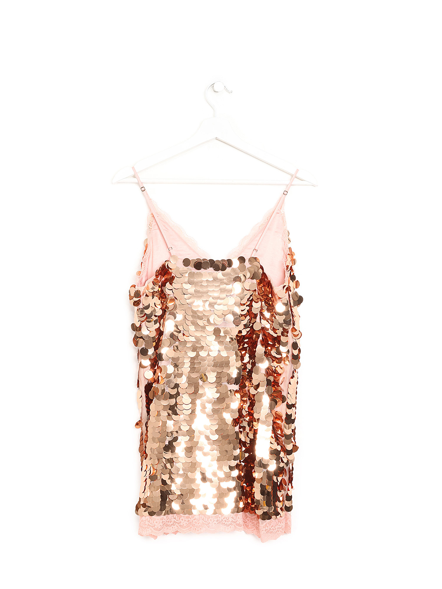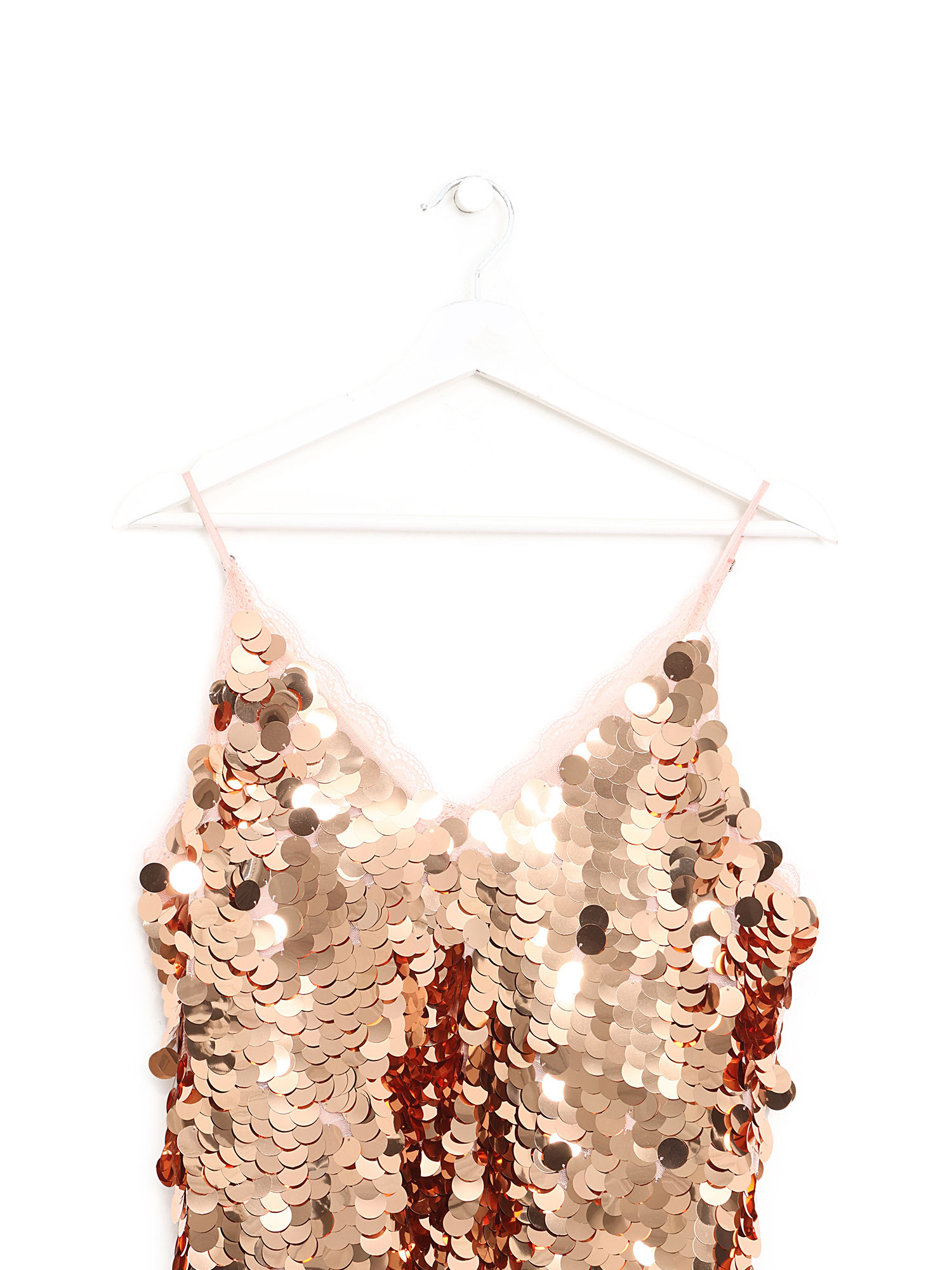 Robe rose à détail de dentelle ornementée de paillettes sur l'ensemble. Taille M.
