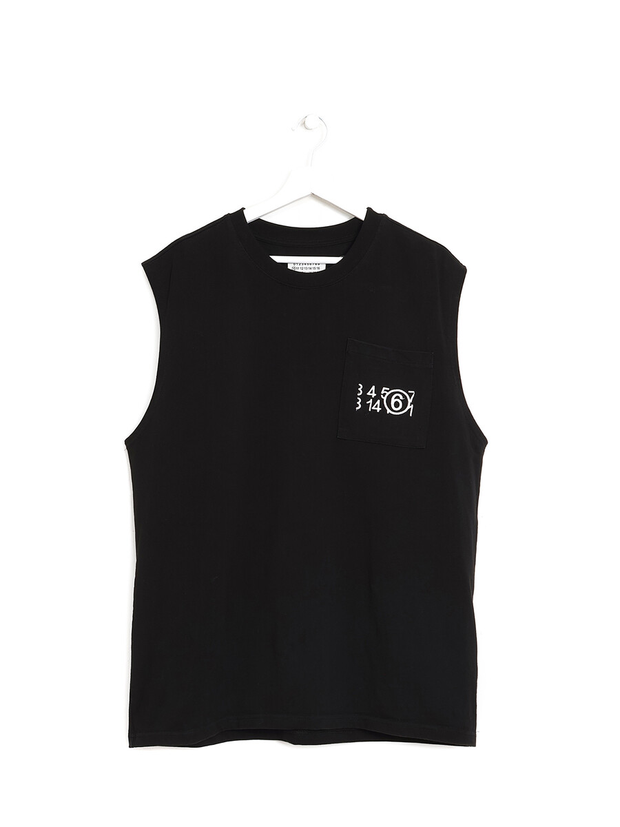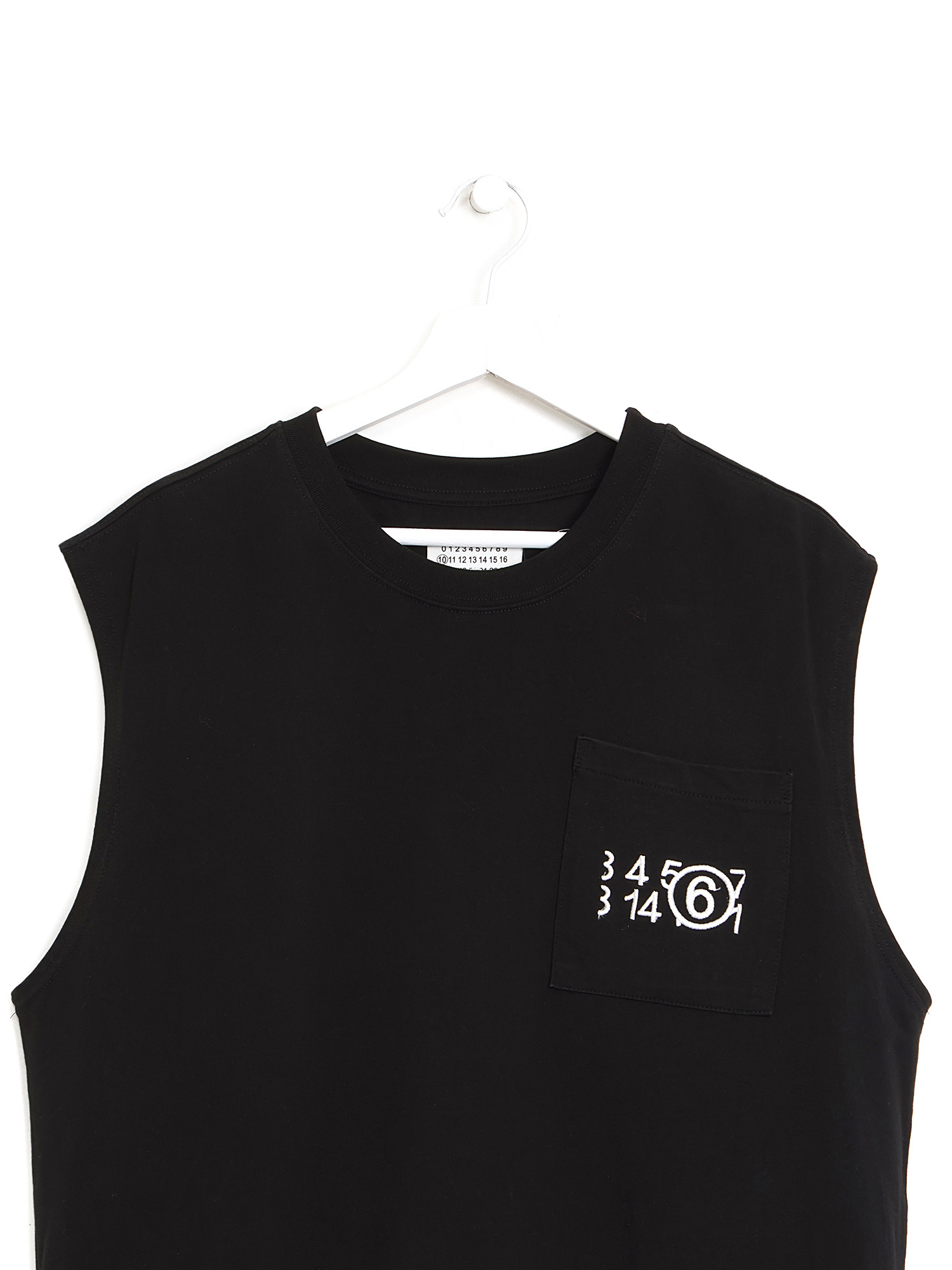 Débardeur à motif logo sur poche poitrine, en noir et blanc contrasté. Encolure ras du cou. Poche plaquée à la poitrine.