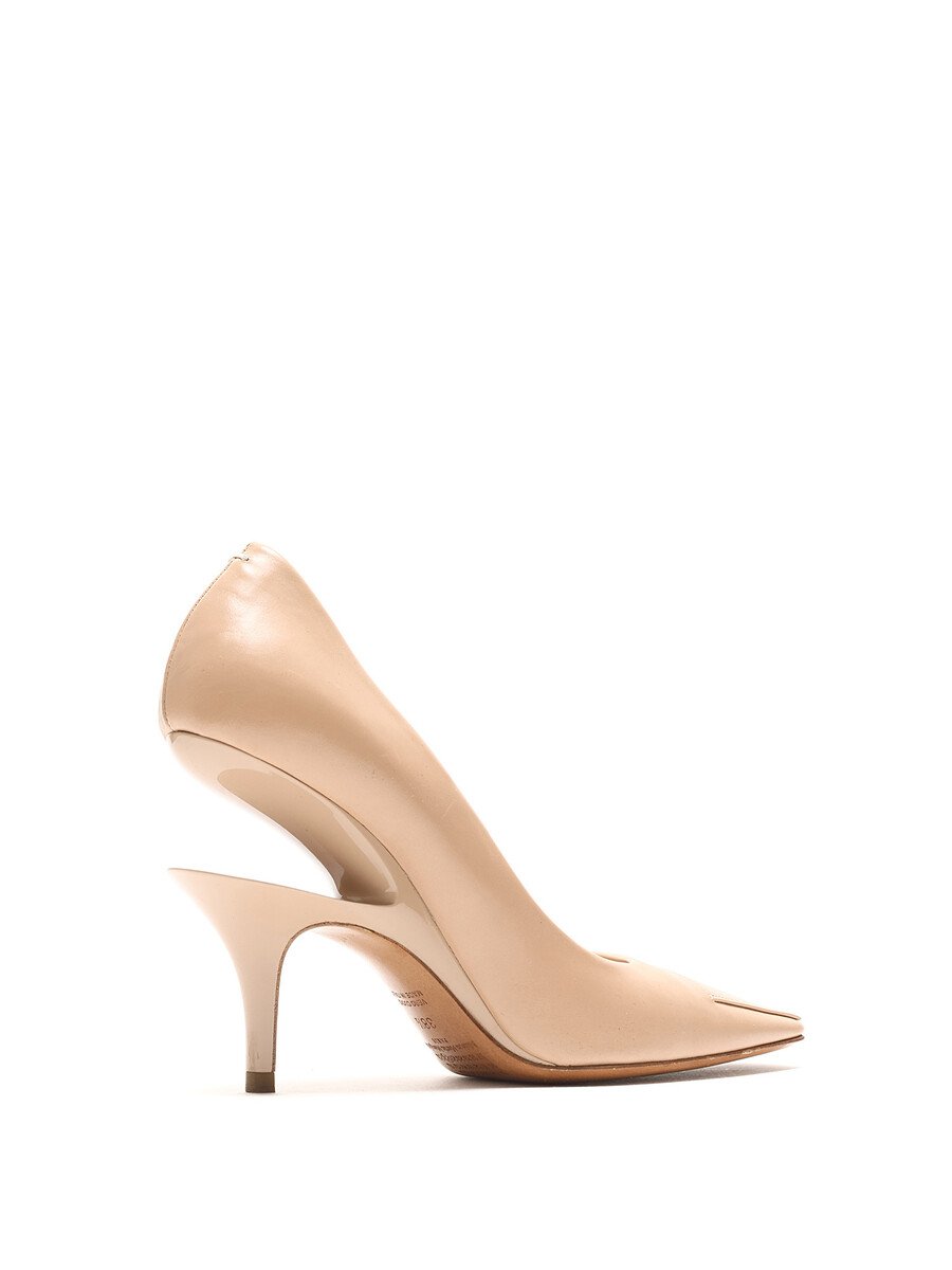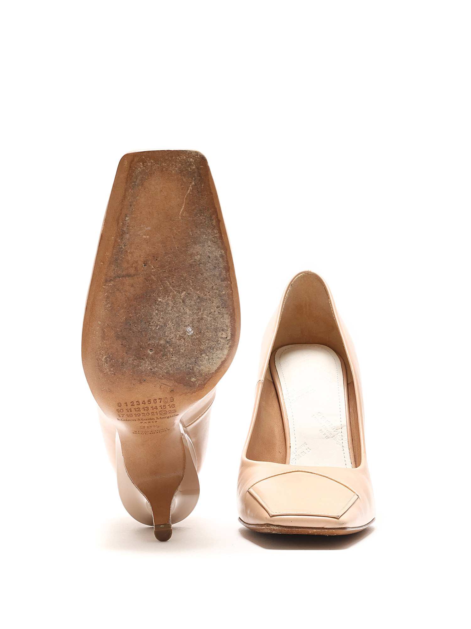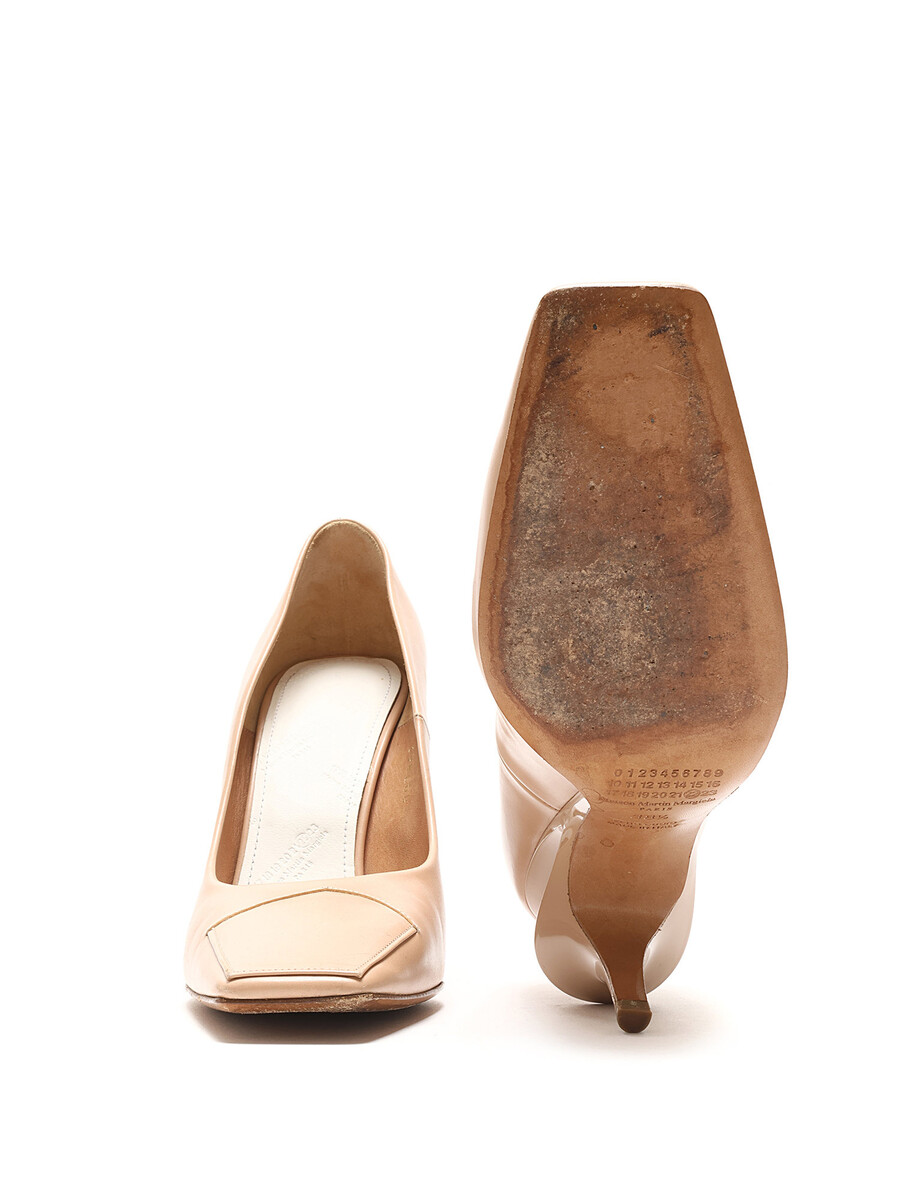 Escarpins en cuir beige avec un design classique. Bout carré. Semelle en cuir pour plus de confort et de durabilité.