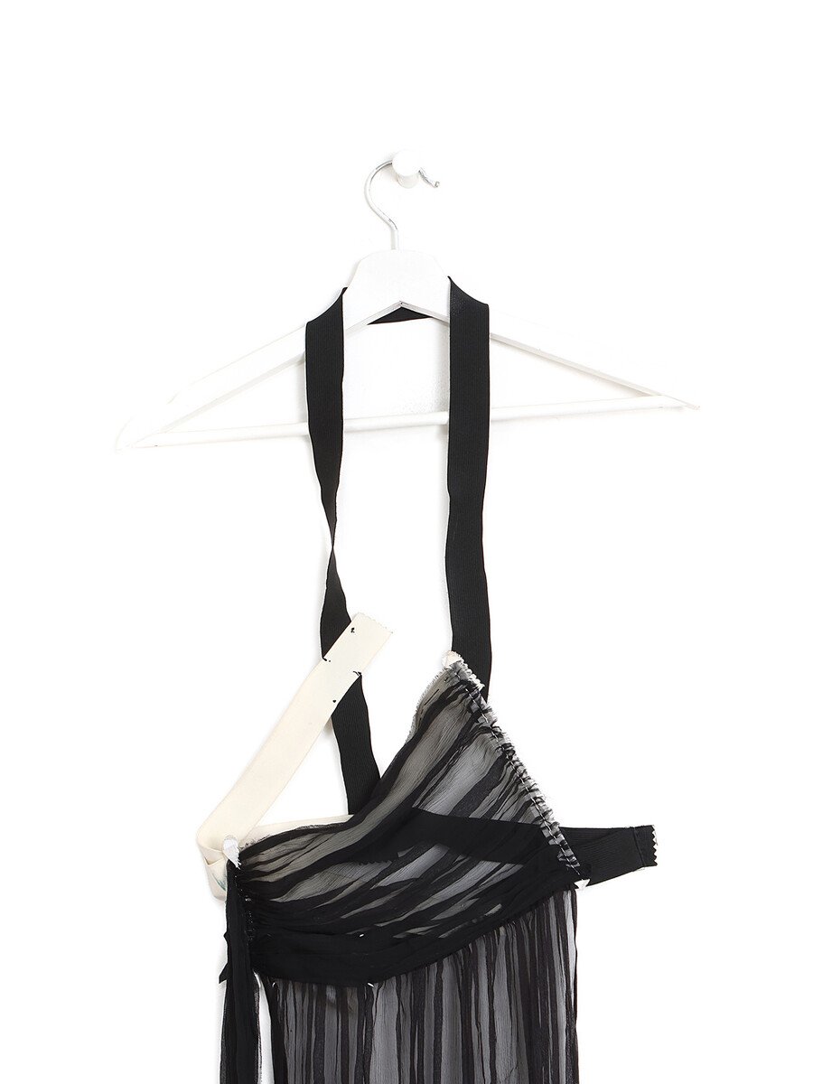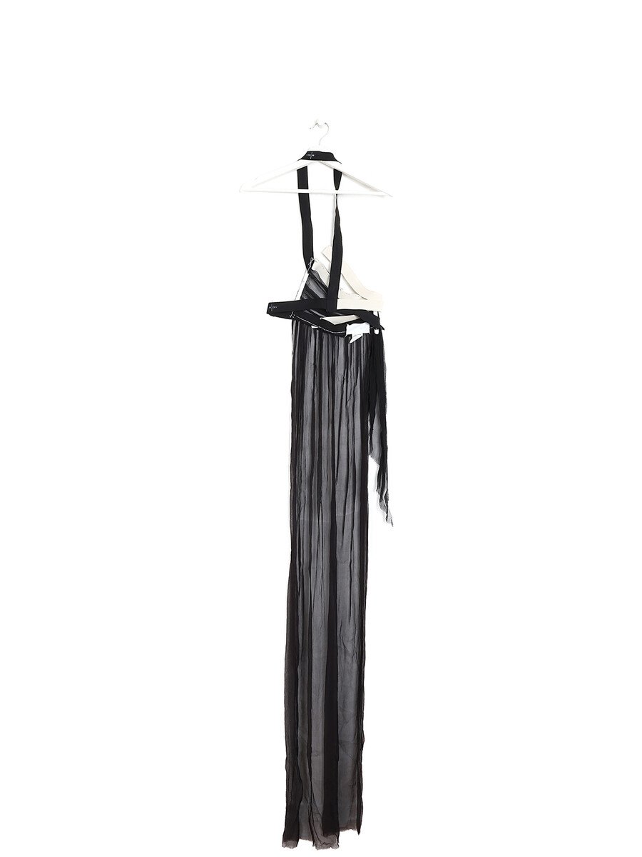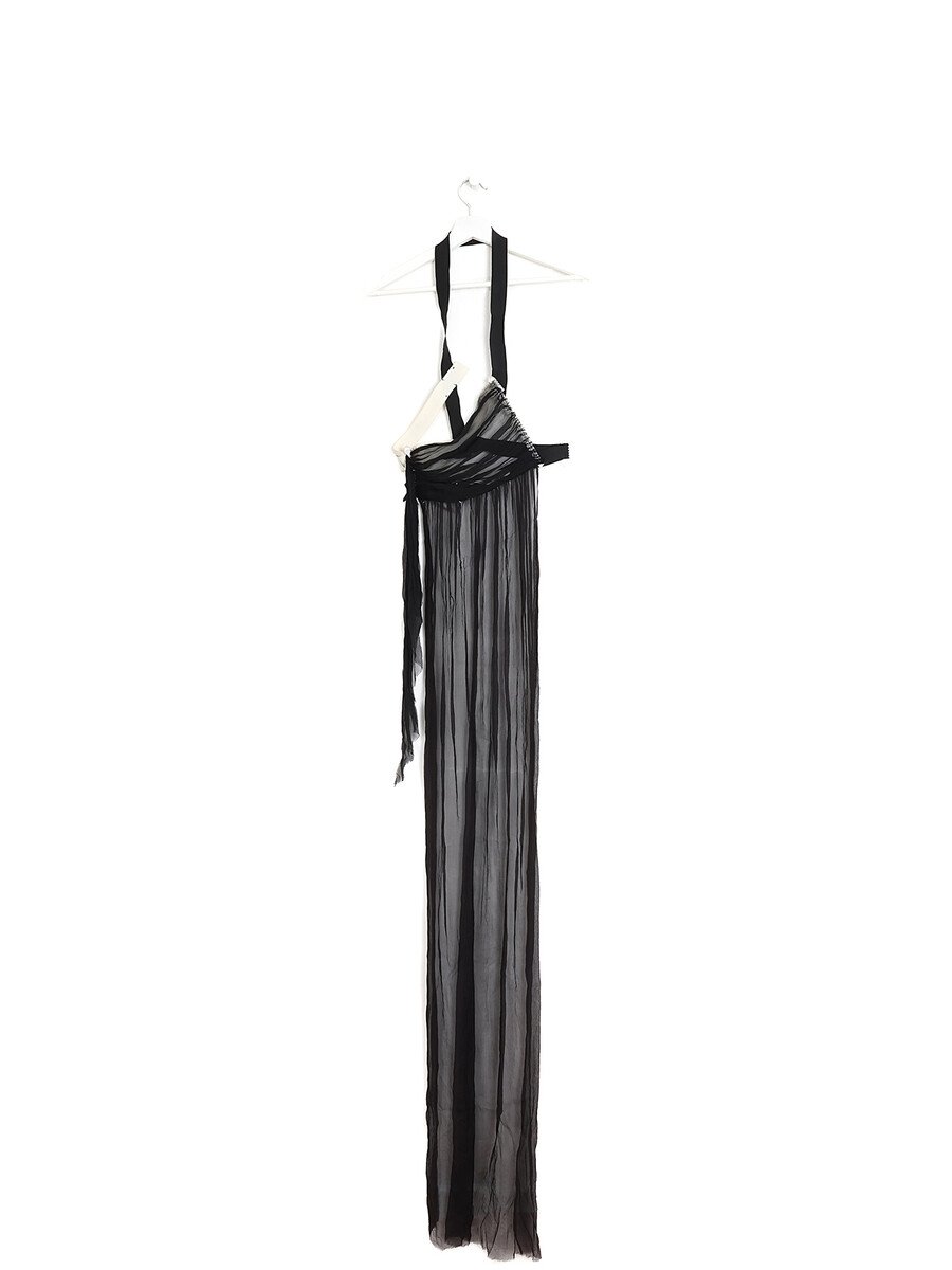 Par-dessus long en soie noire avec détail de harnais. Fermeture à agrafes. Pièce de la Collection Stockman de 1997.