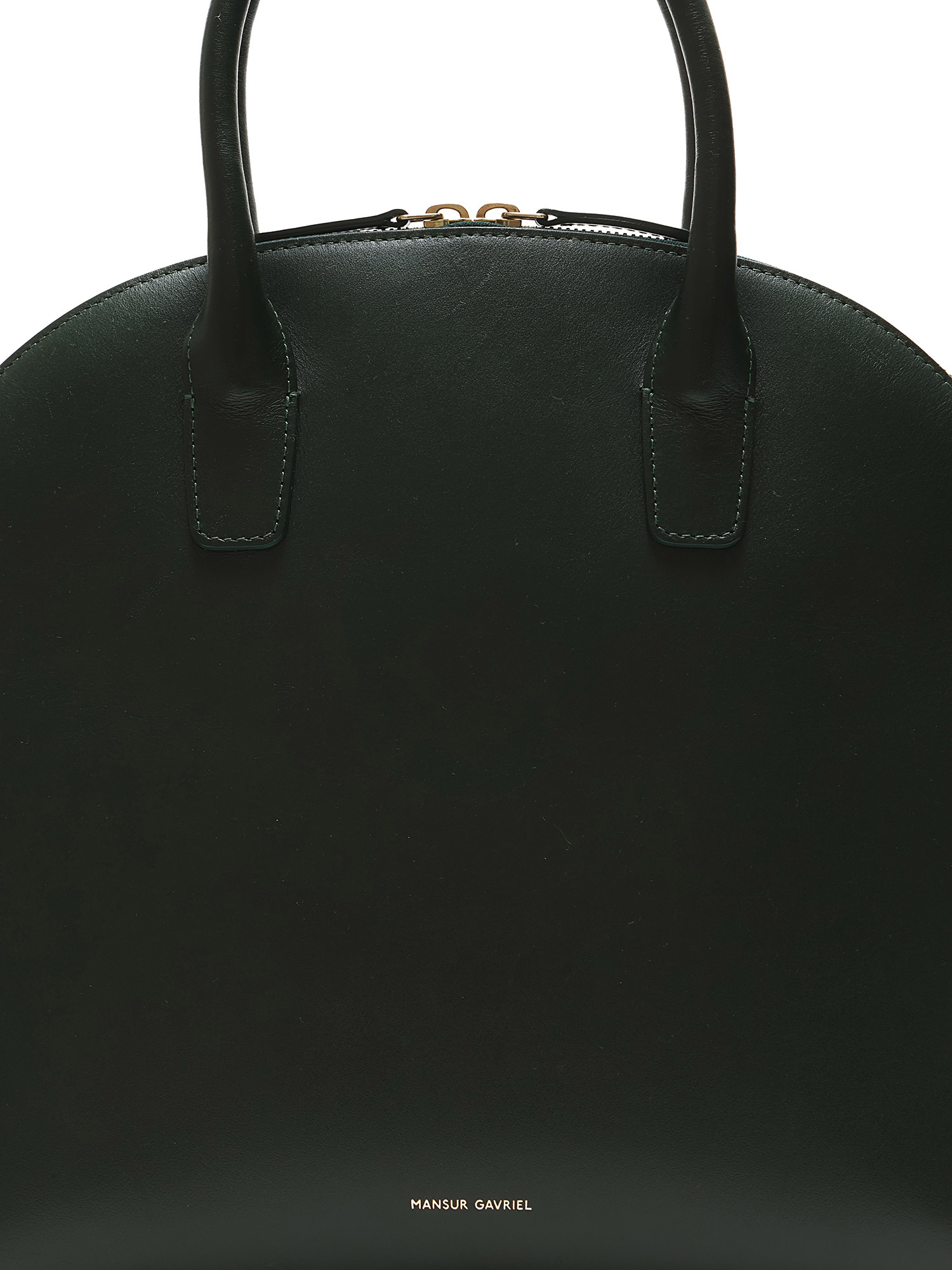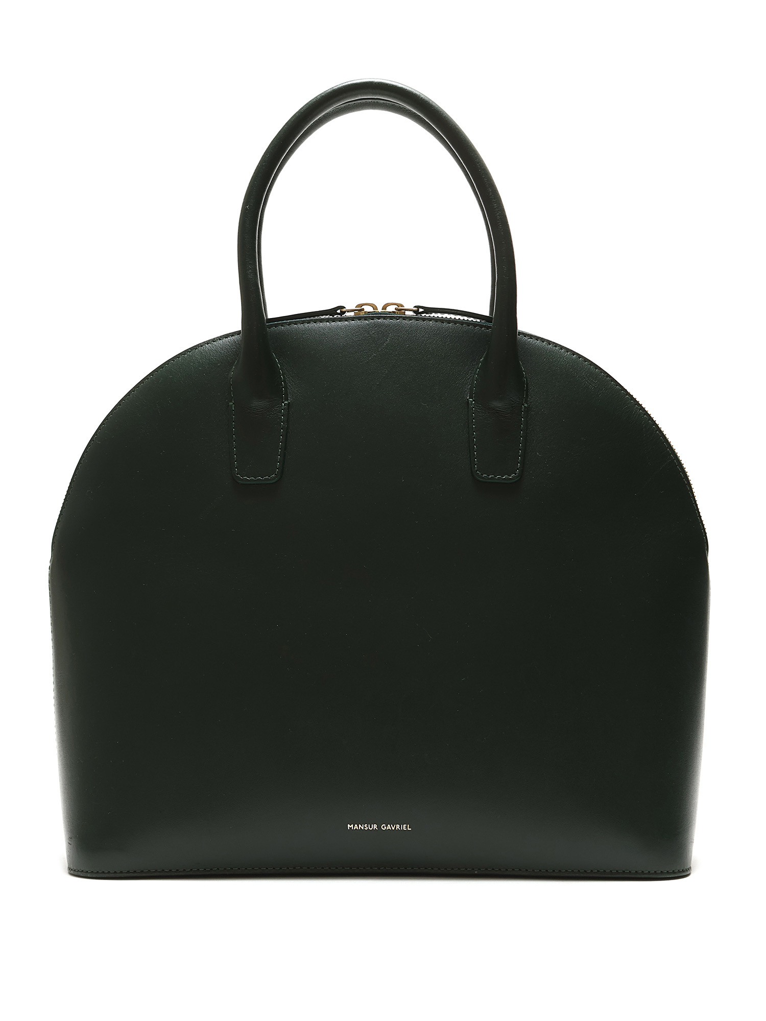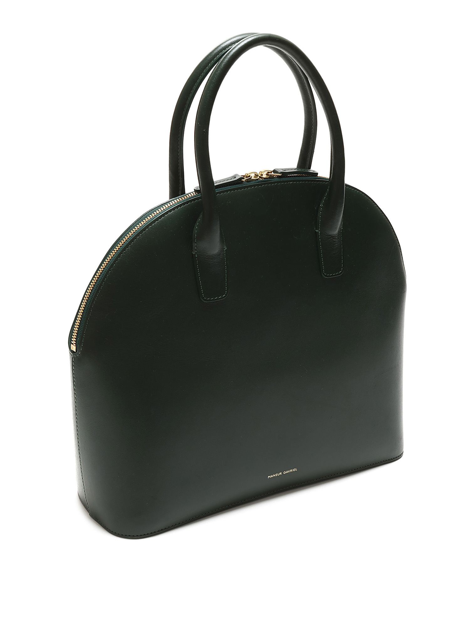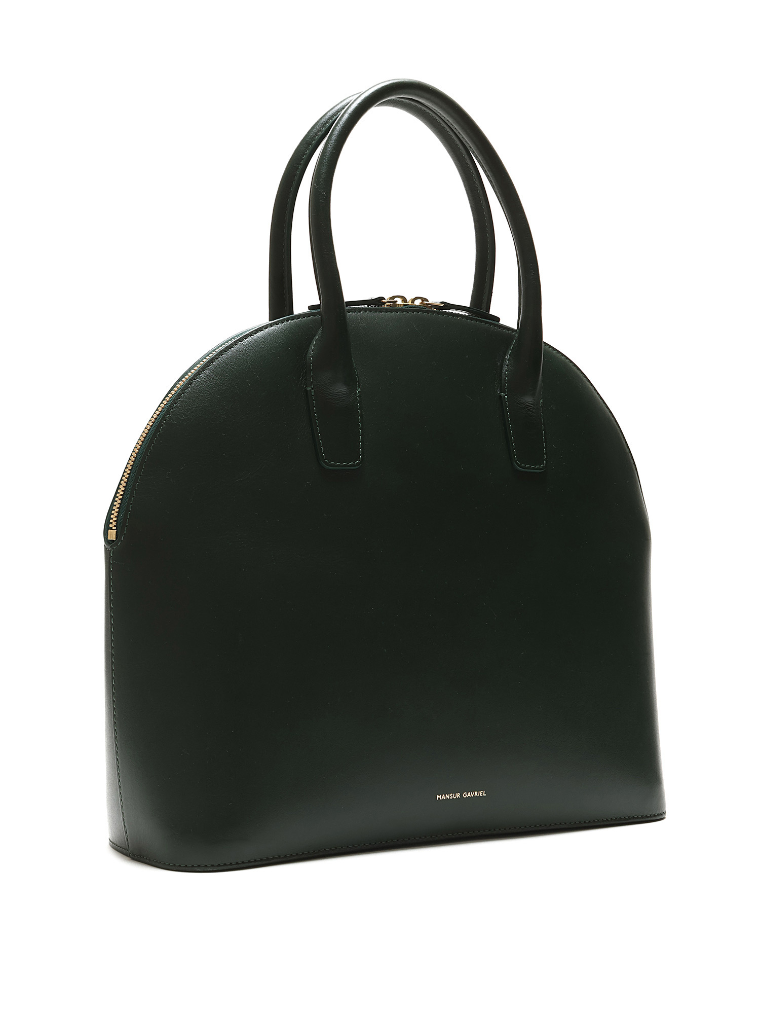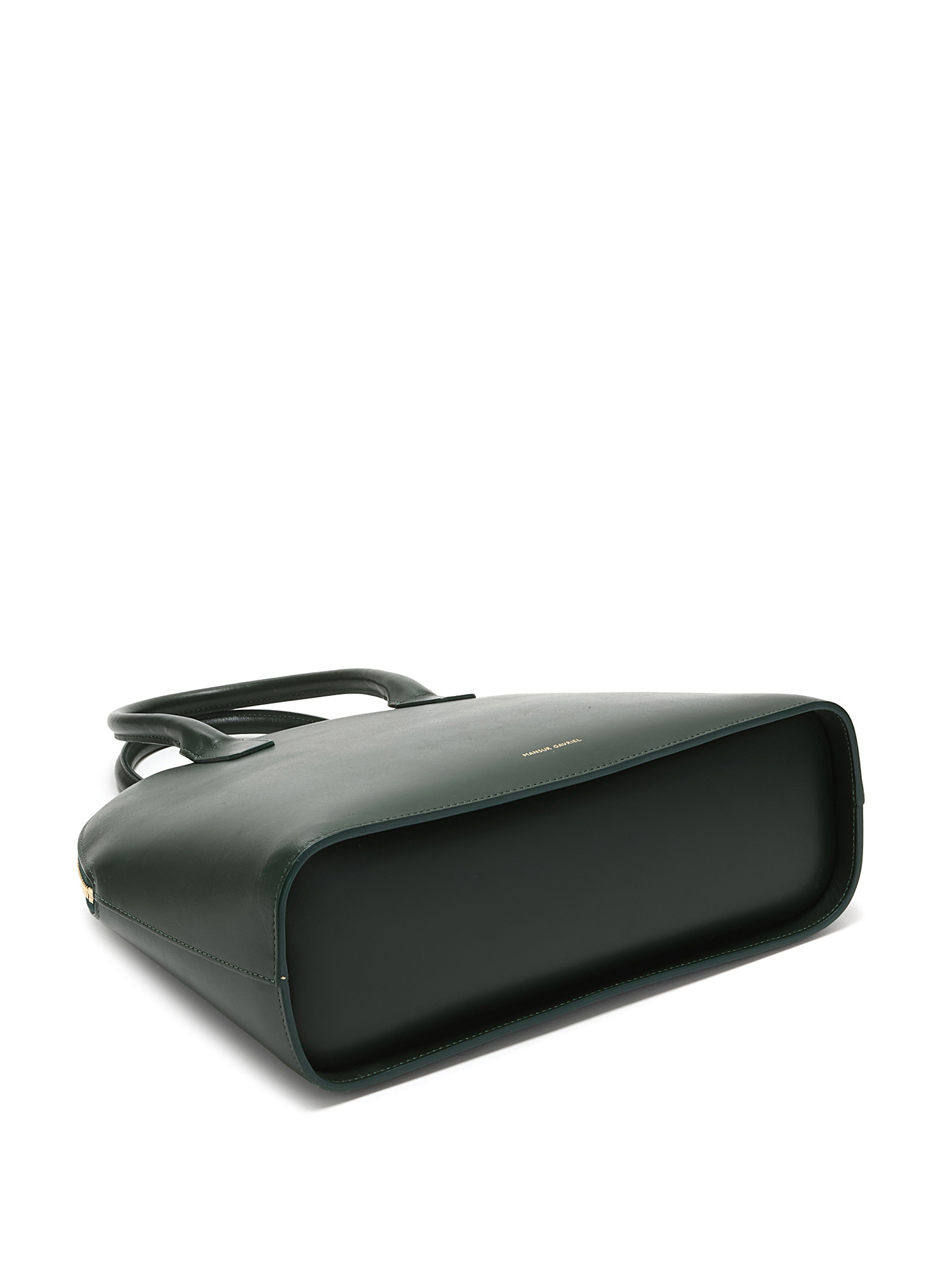 Sac en cuir à poignée supérieure de couleur vert foncé. Fermeture à glissière sur le dessus. Poignées en cuir roulé. Quincaillerie dorée. Avec dust bag.