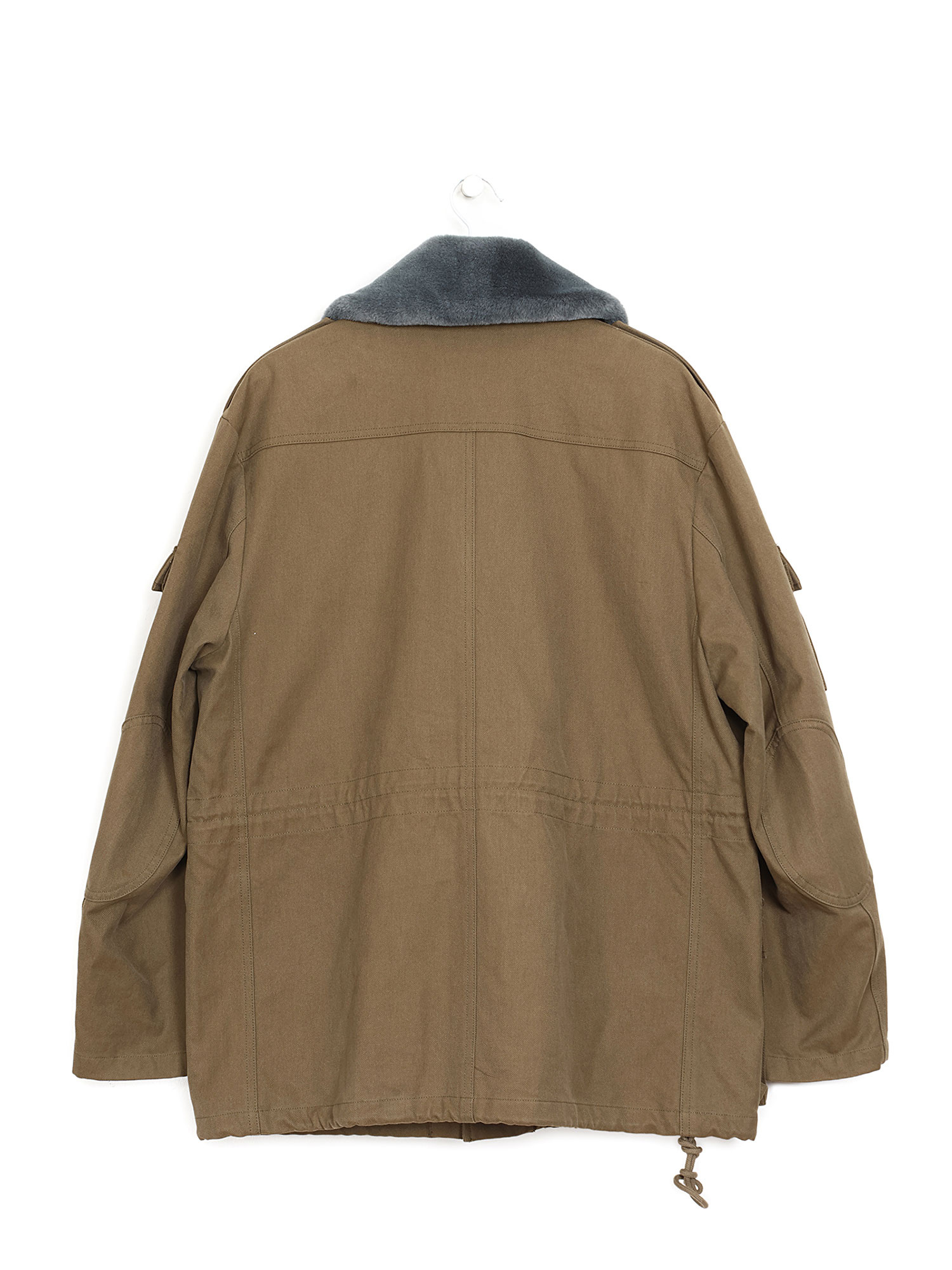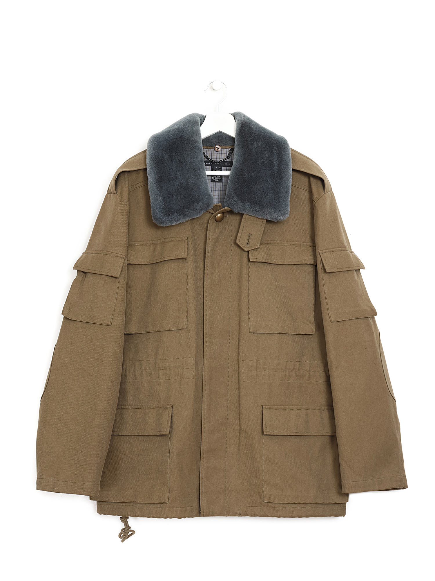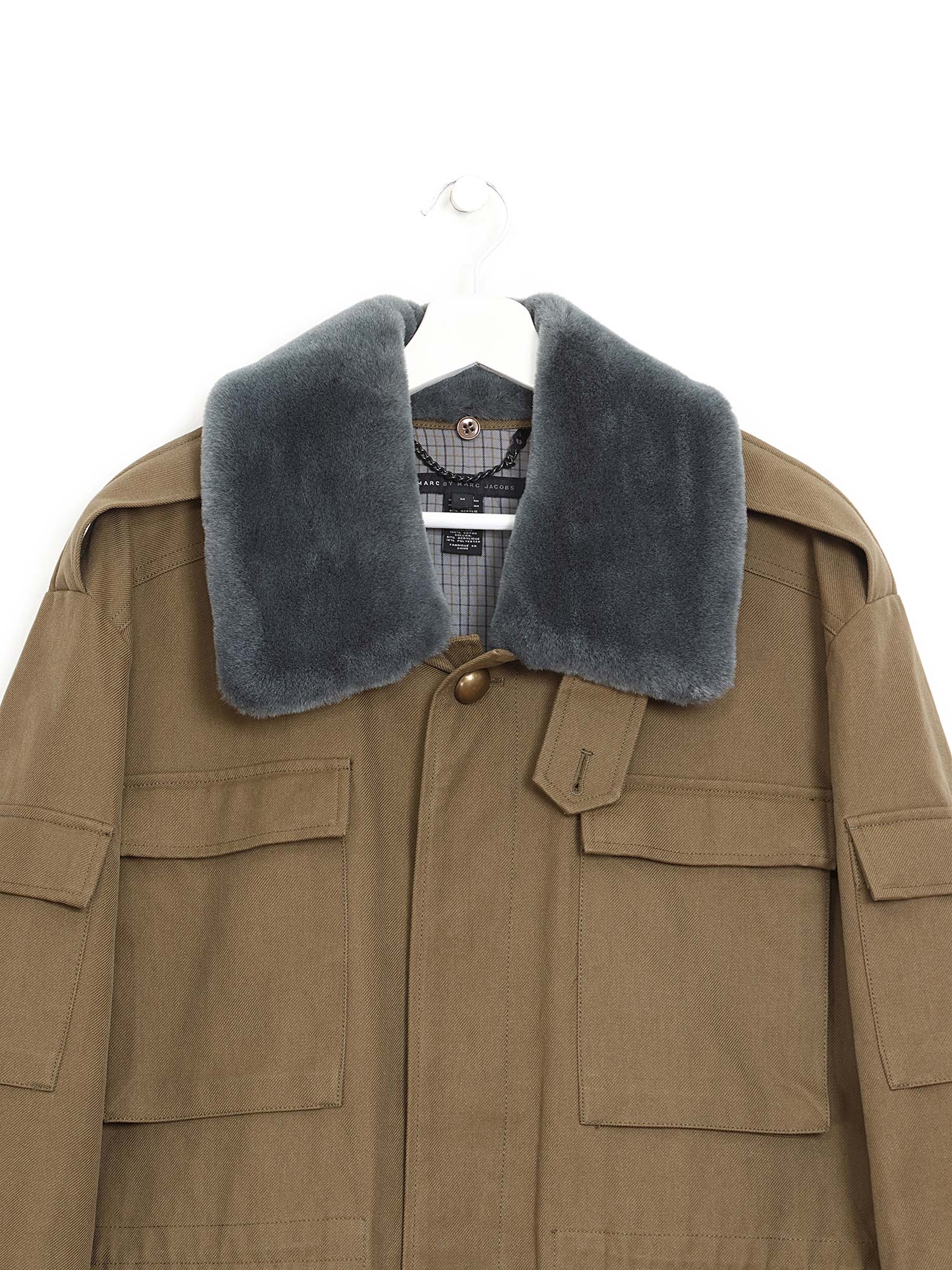 Veste en coton avec grand col en fausse fourrure. Plusieurs poches plaquées à l'avant.